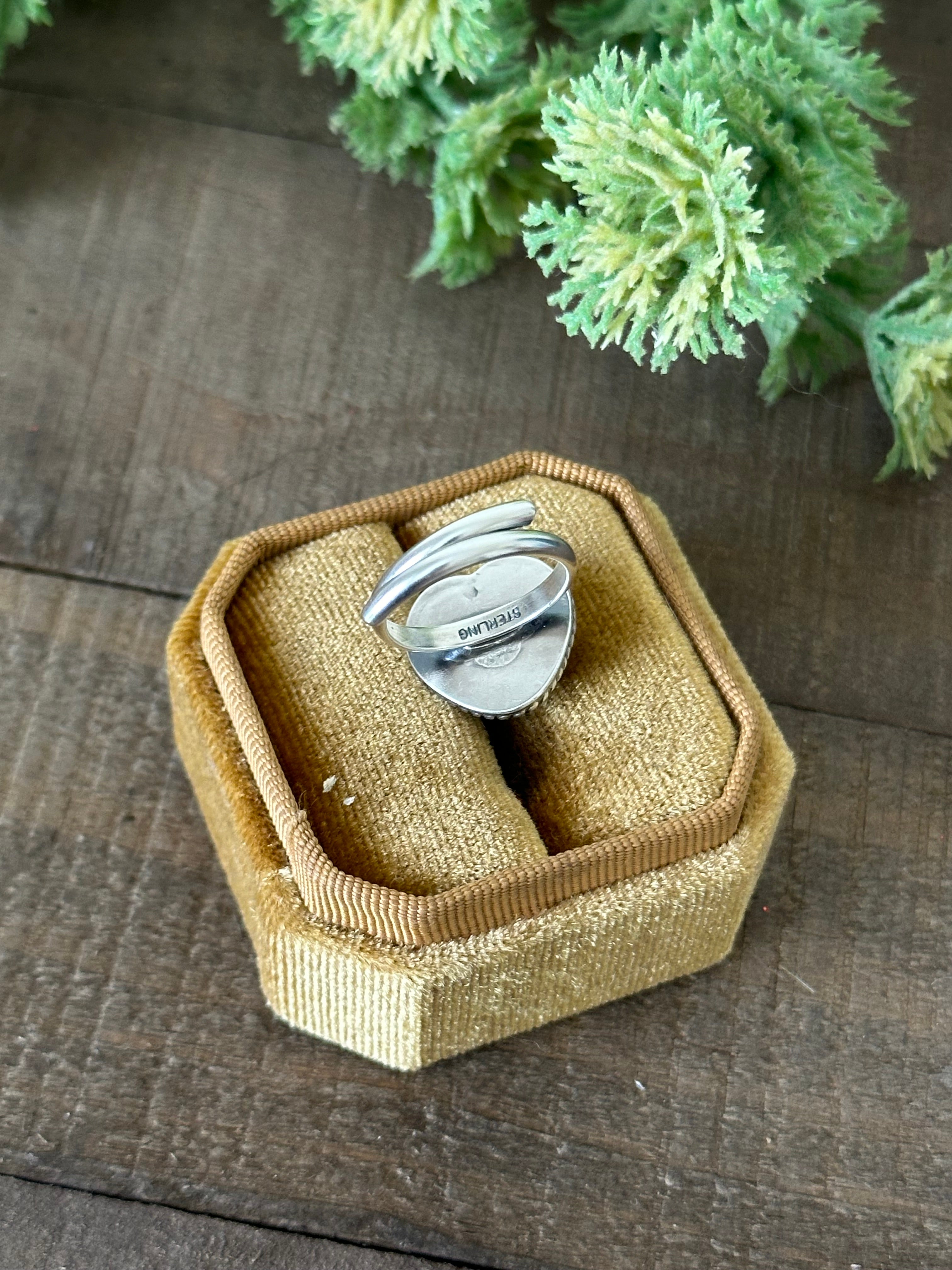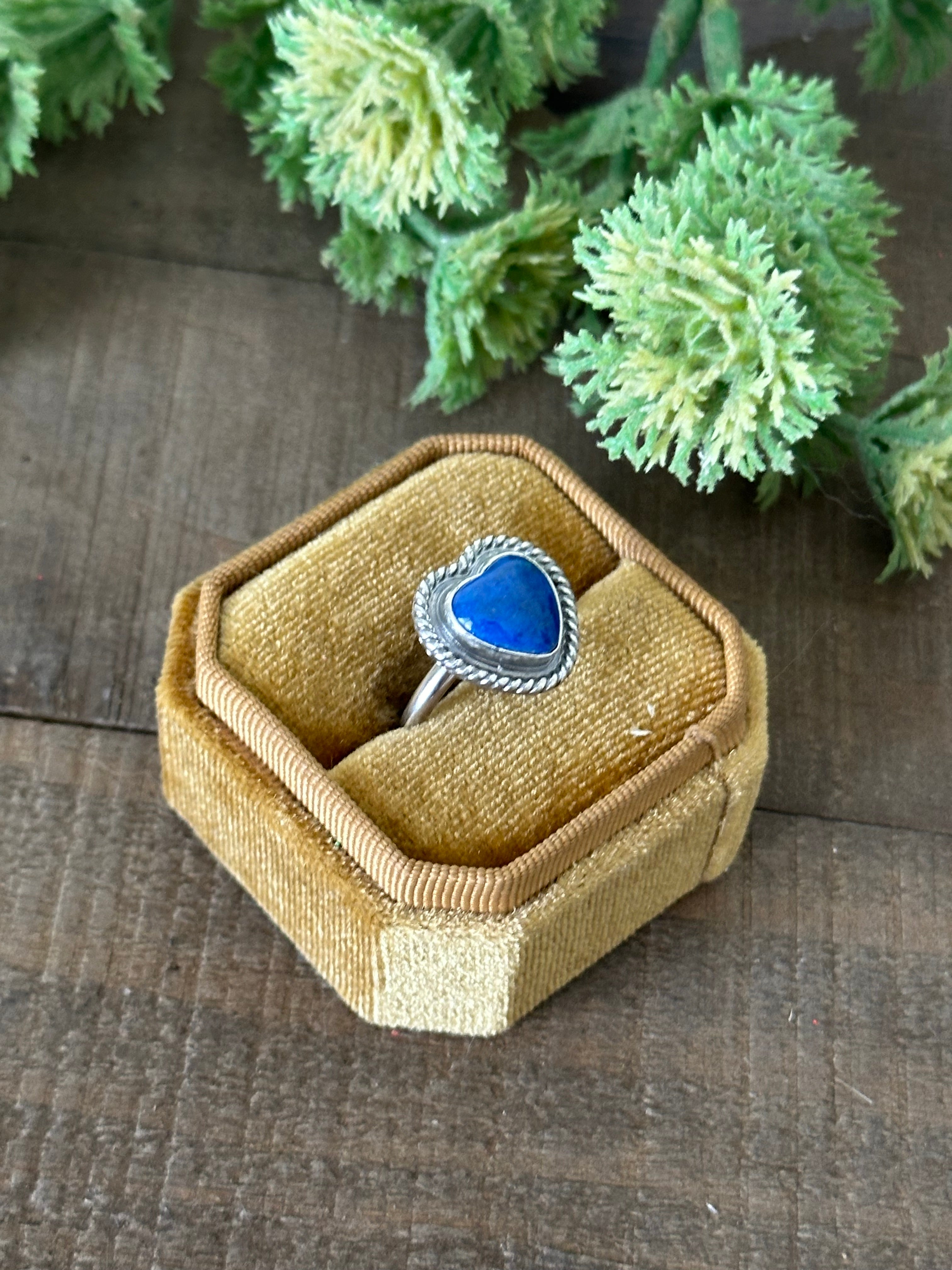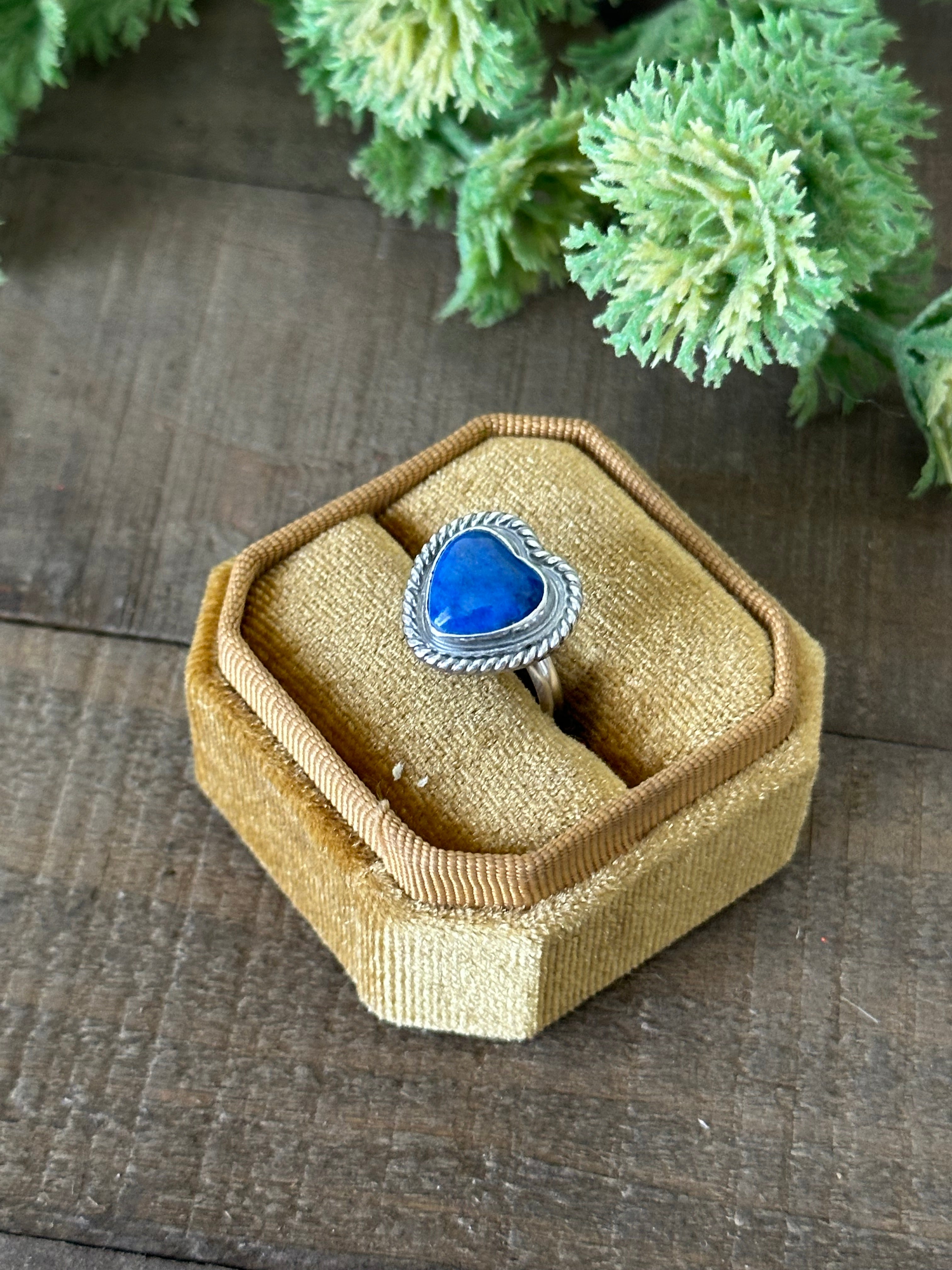 Navajo Made Lapis & Sterling Silver Heart Adjustable Ring