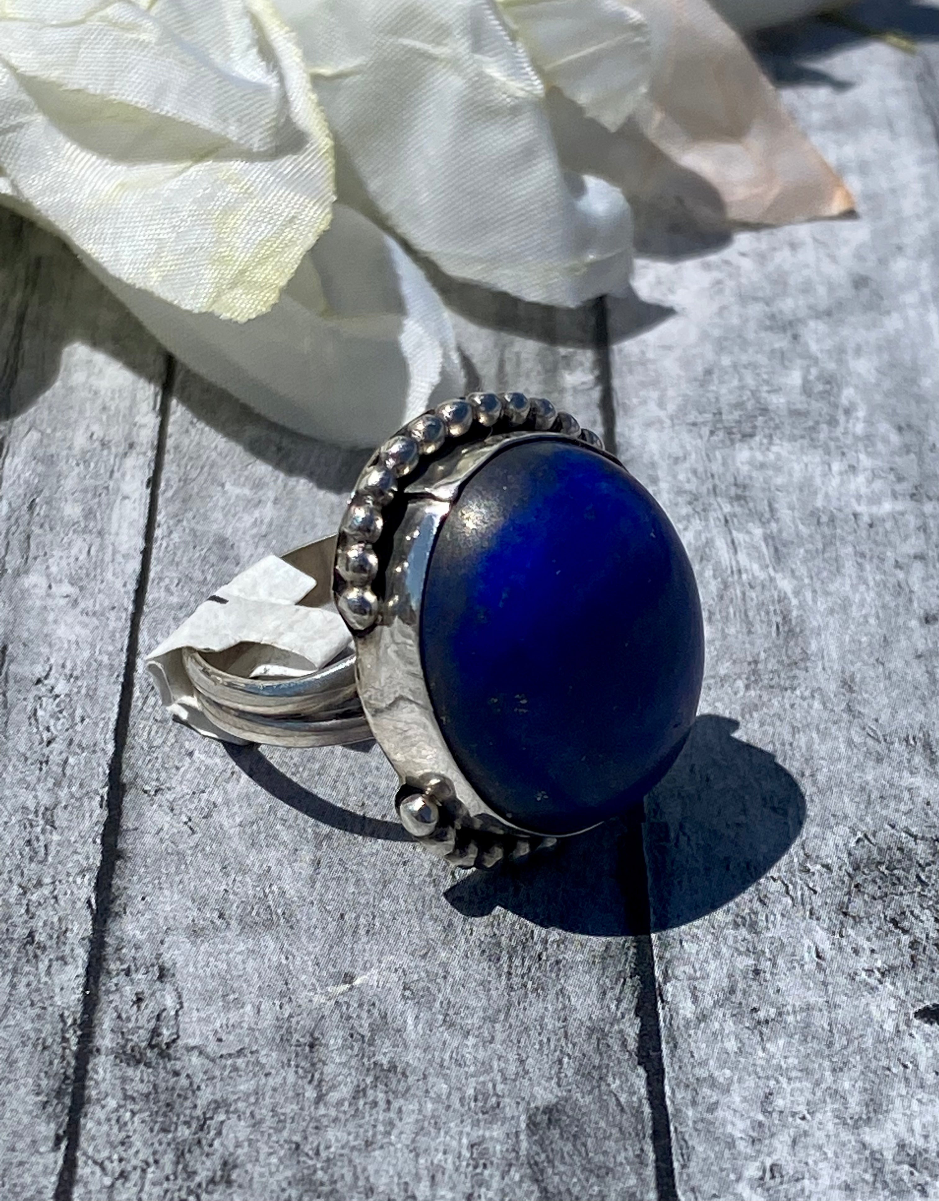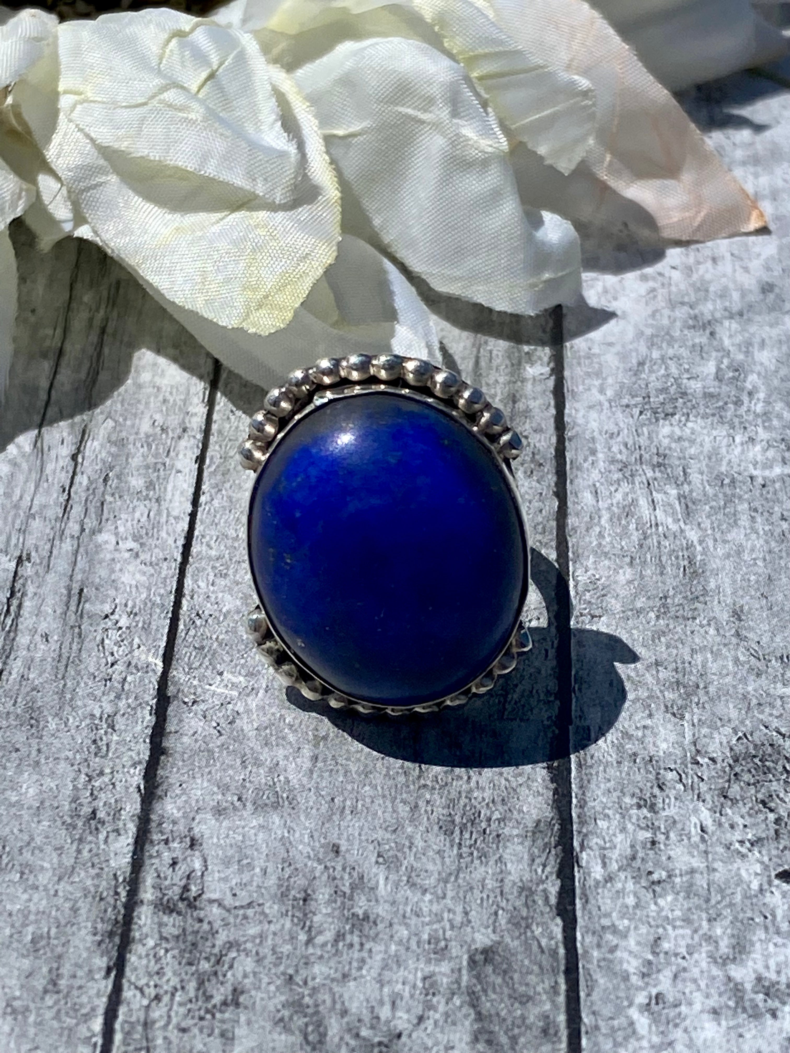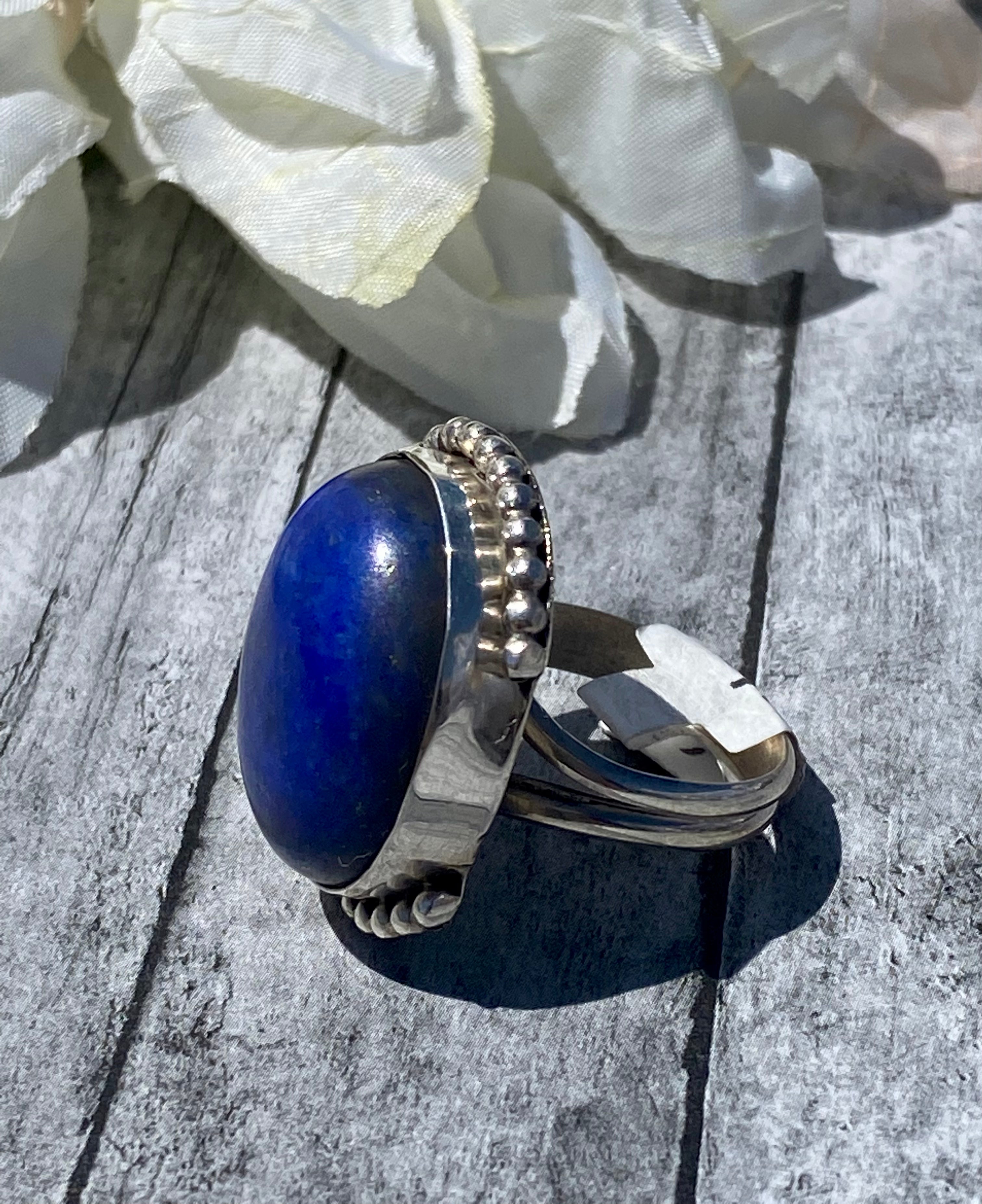 Navajo Made Lapis & Sterling Silver Ring Size 7