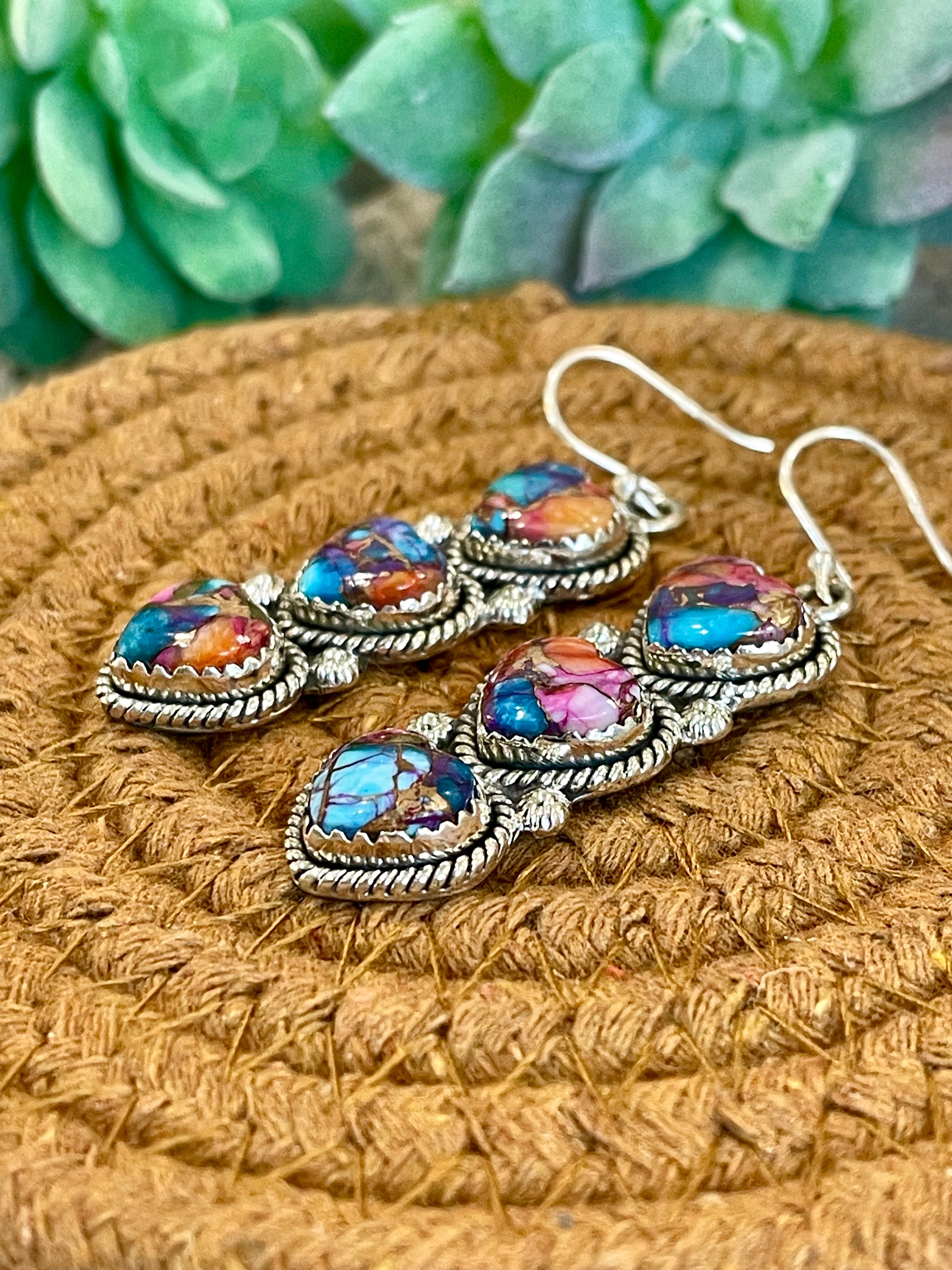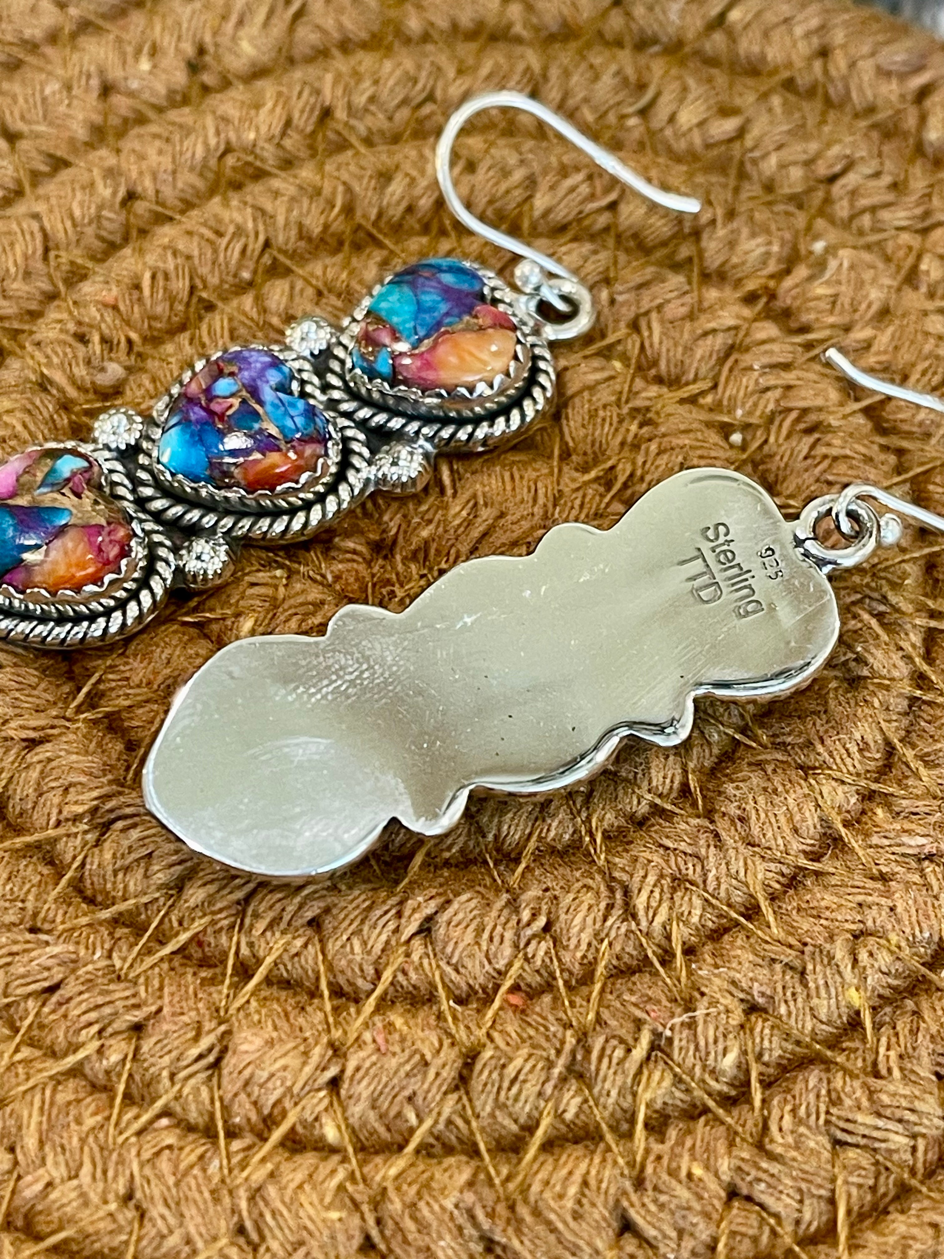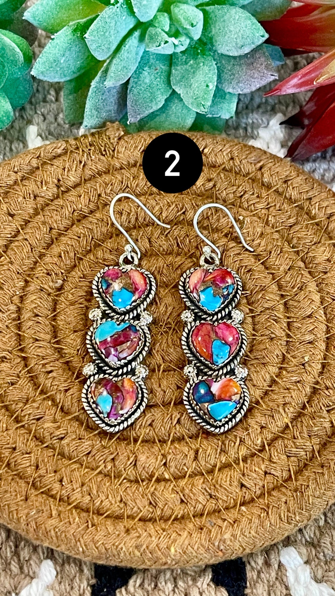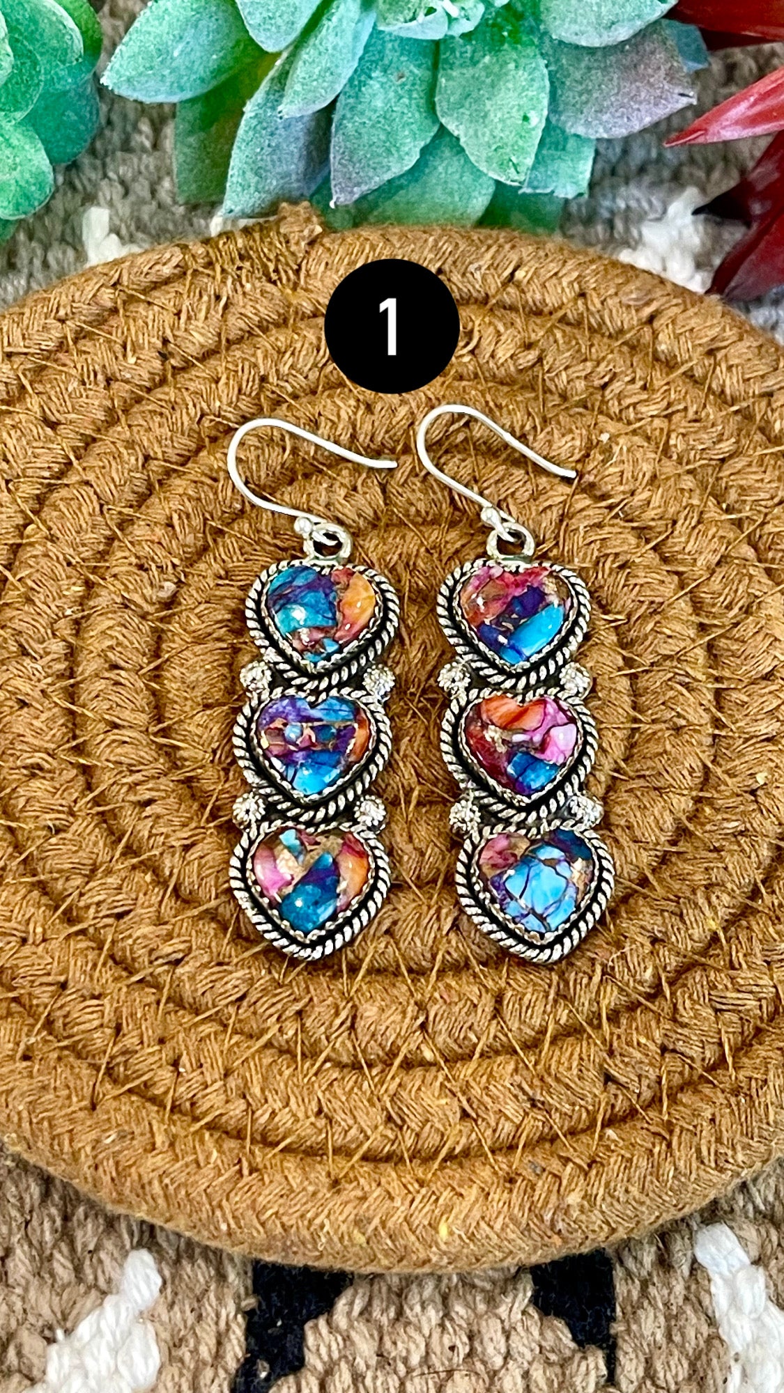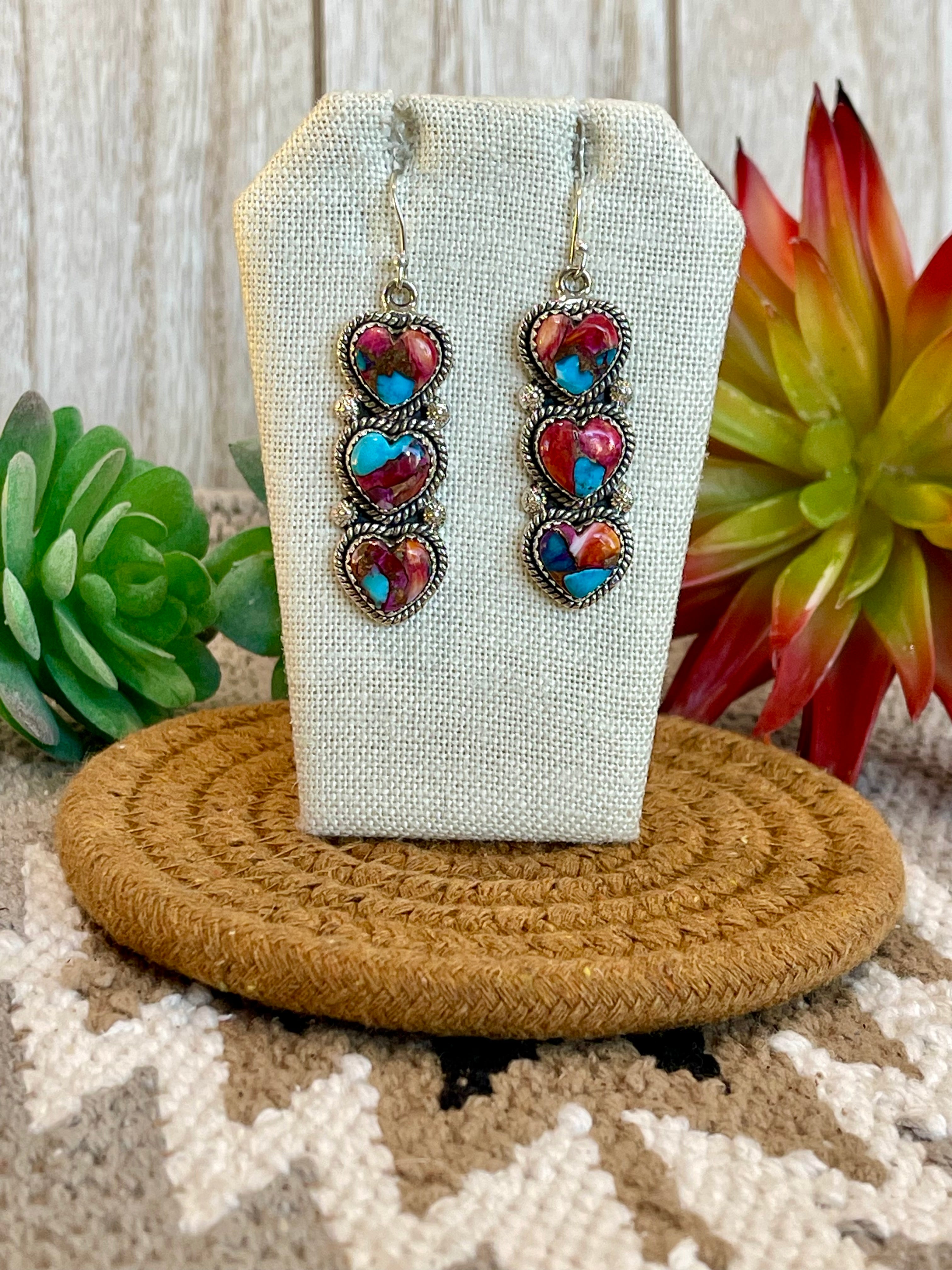 Southwest Handmade Pink Mohave & Sterling Silver Post Dangle Heart Earrings