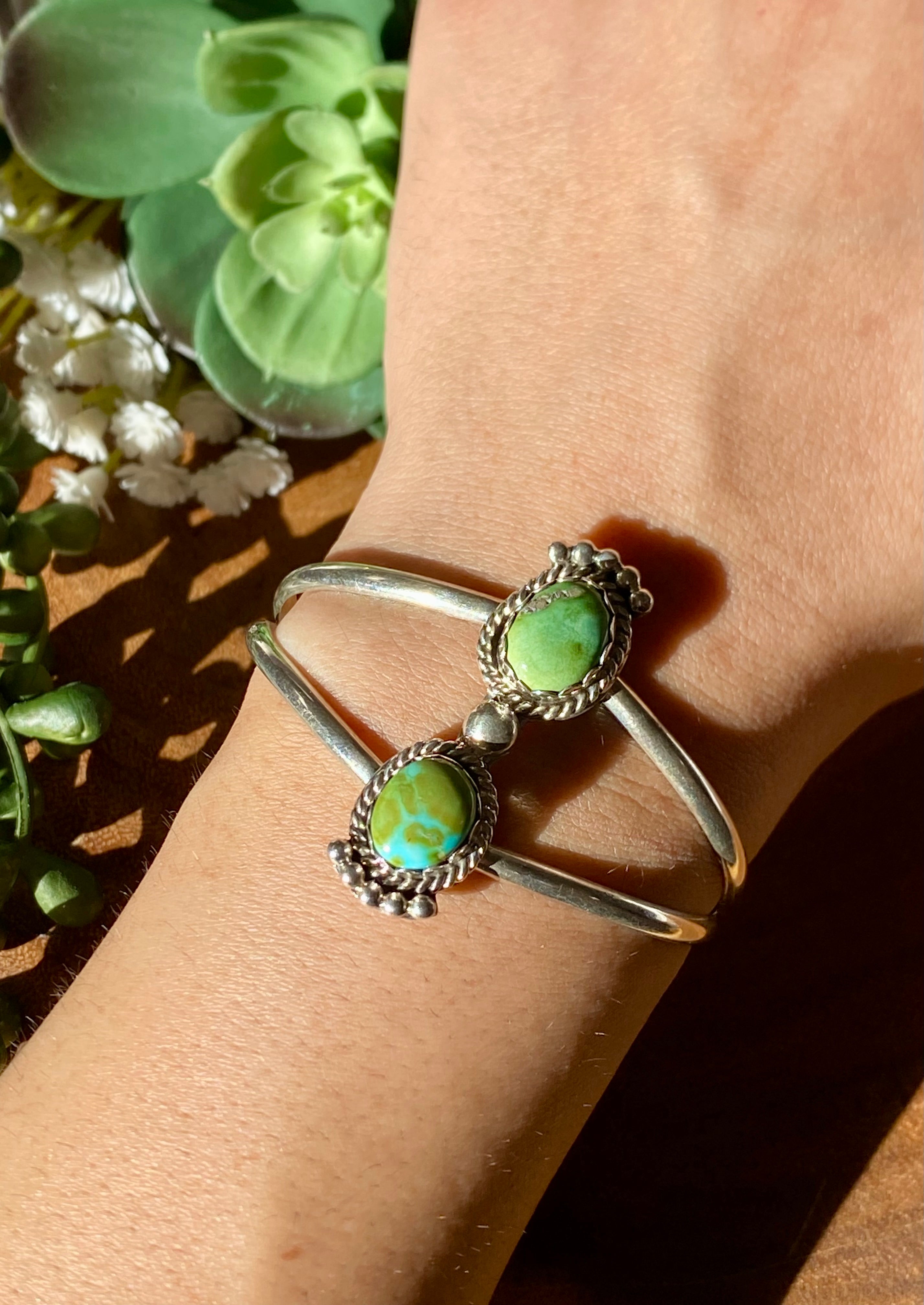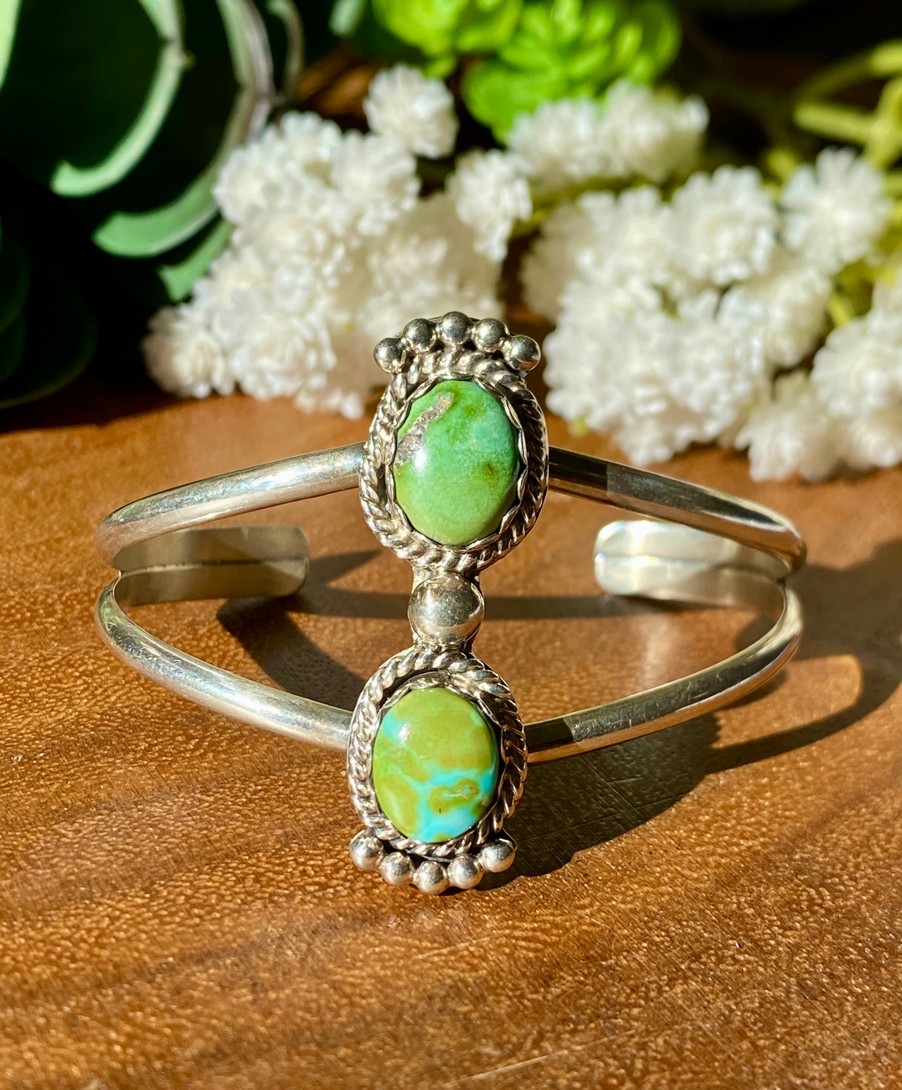 Navajo Made Sonoran Mountain Turquoise & Sterling Silver Cuff Bracelet