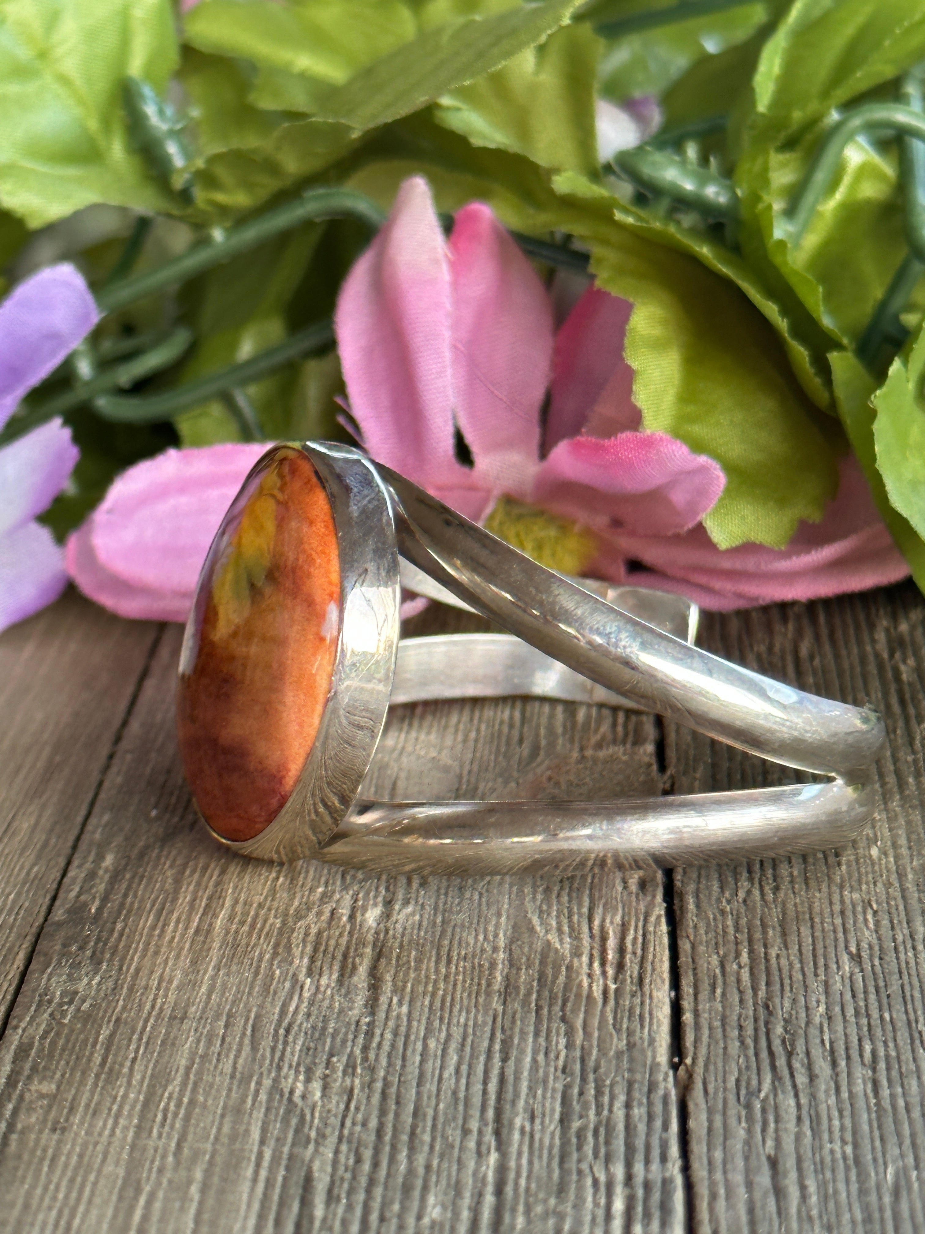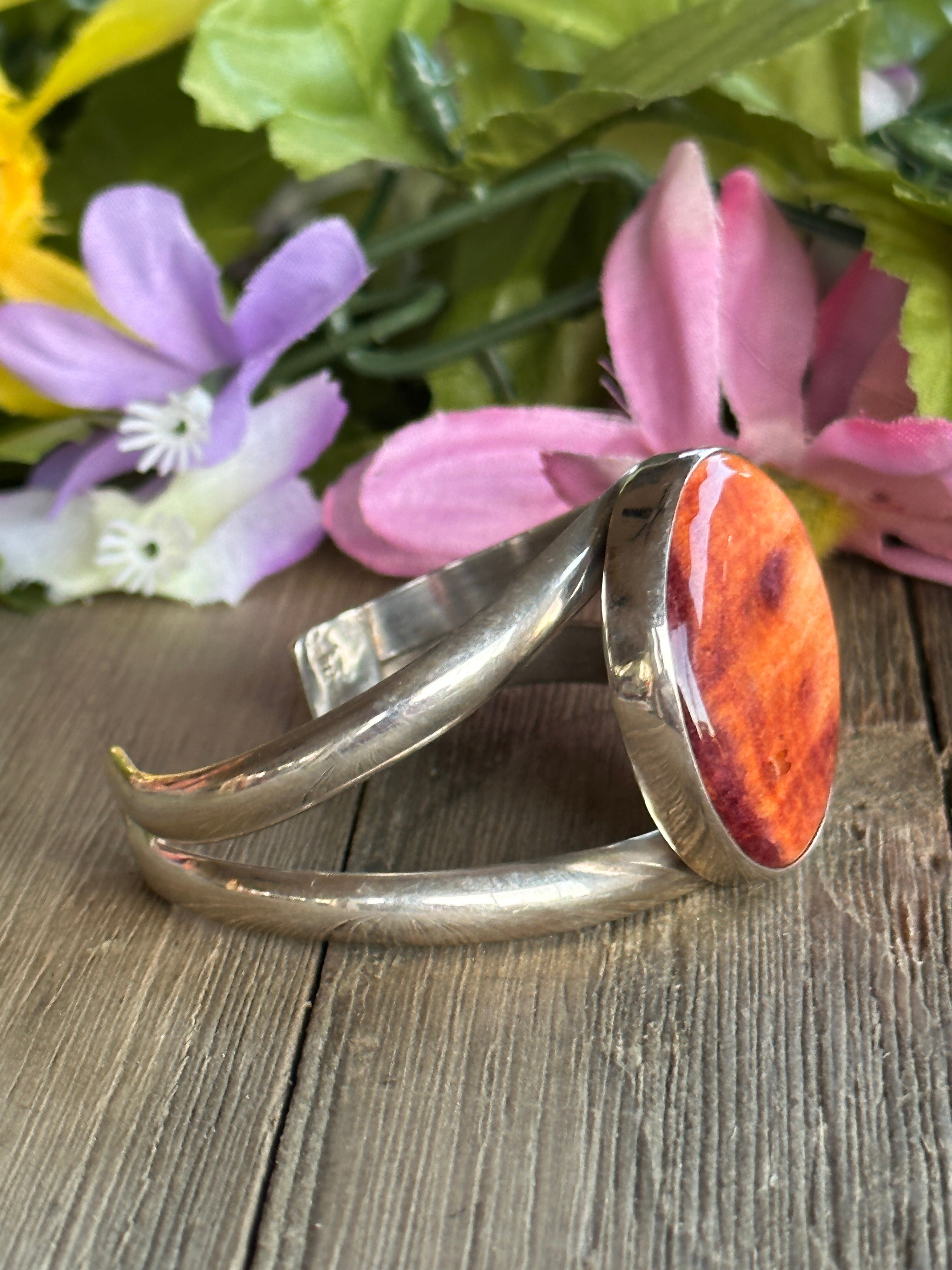 Navajo Made Spiny Oyster and Sterling Silver Cuff Bracelet