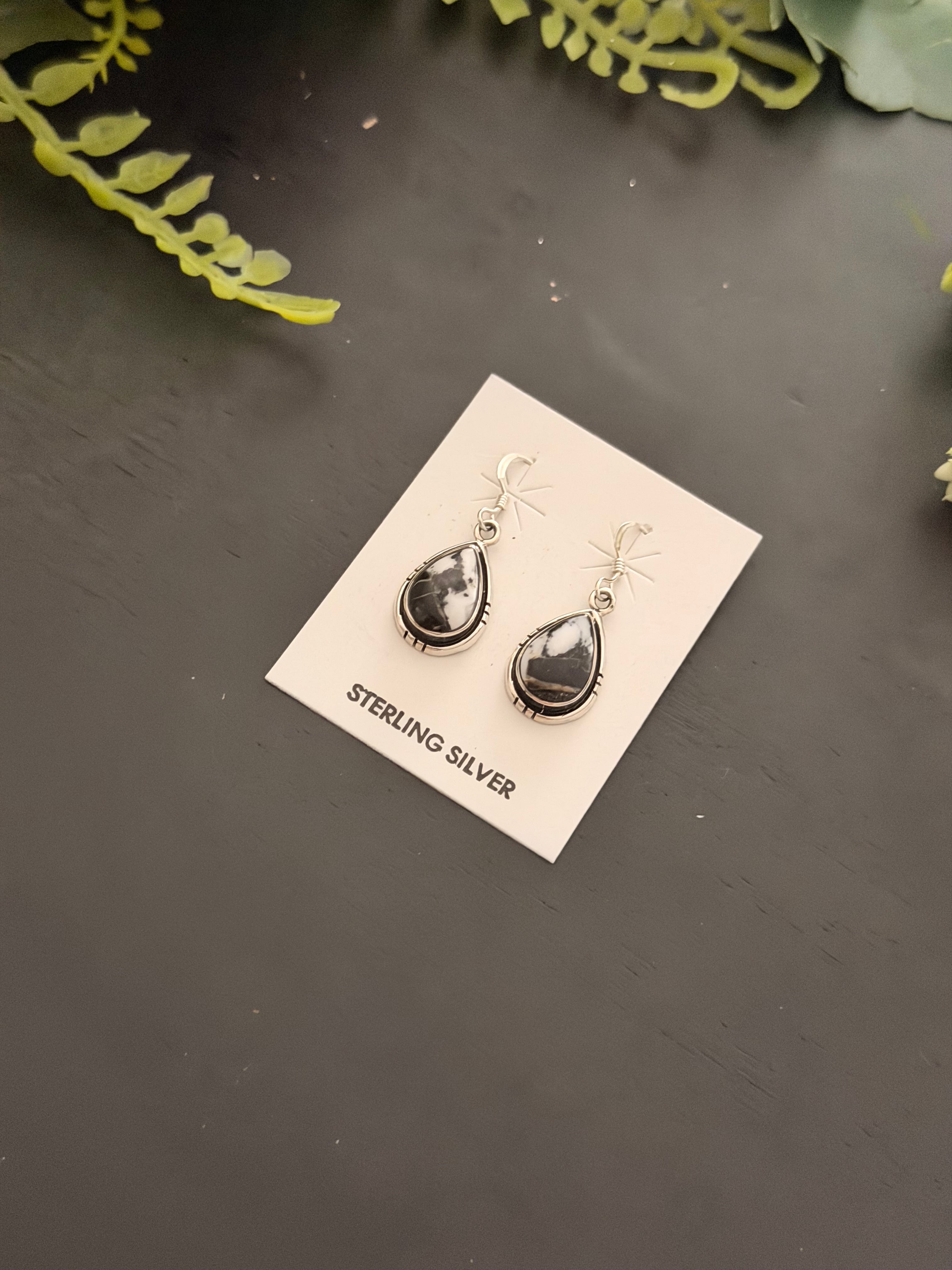 Navajo Made White Buffalo & Sterling Silver Dangle Earrings