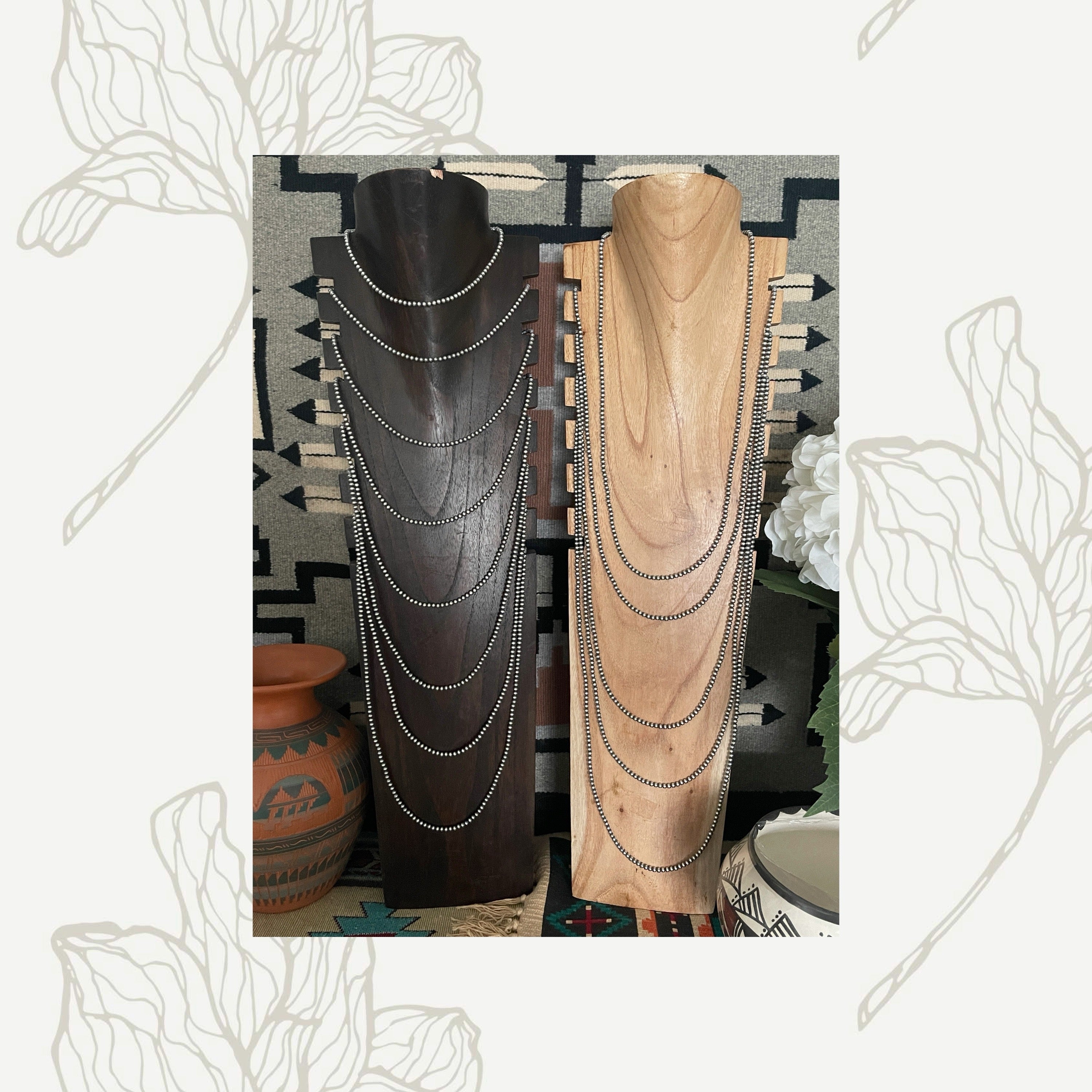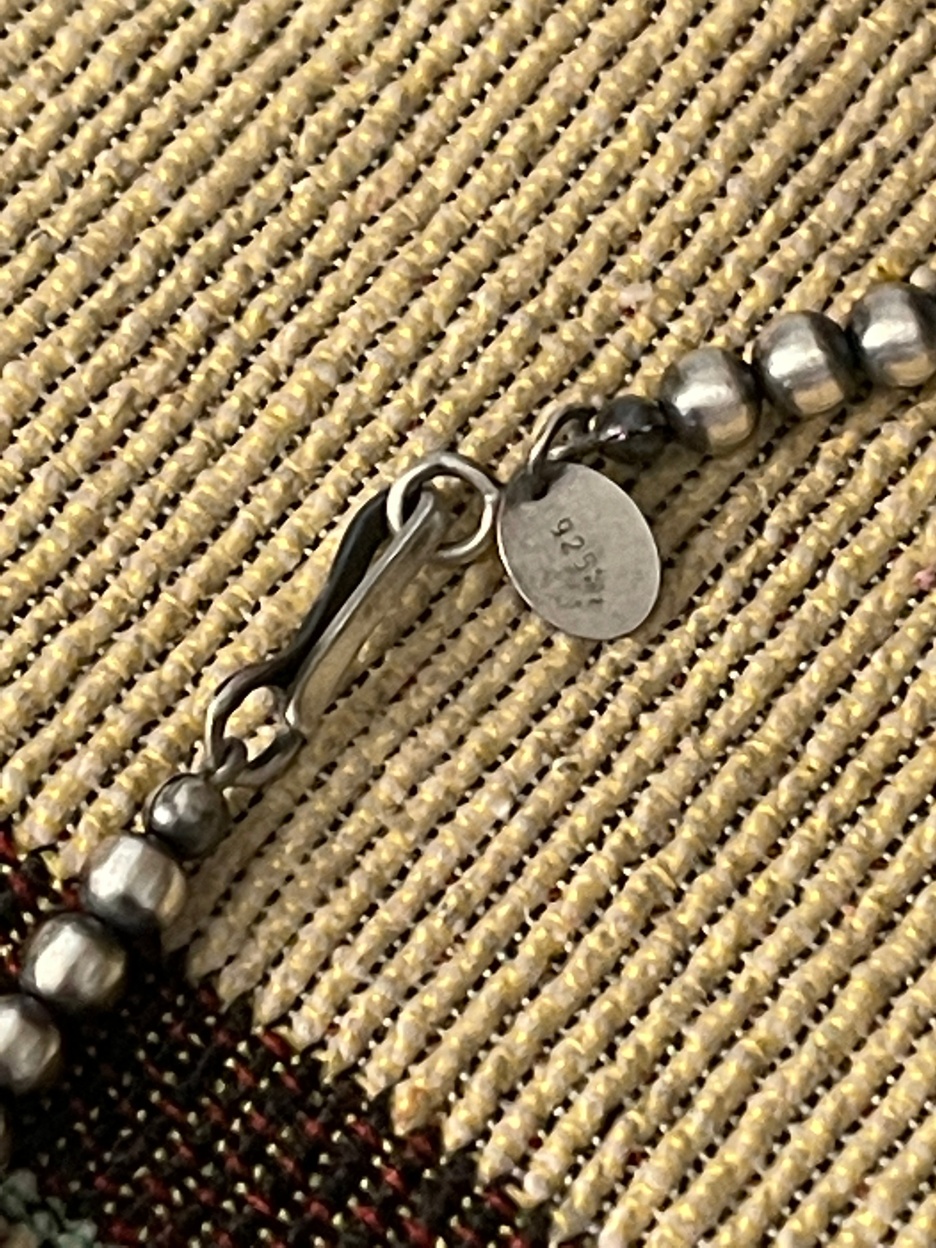Navajo Sterling Silver 4 mm 34 inch Pearl Necklace. Stamped sterling silver.