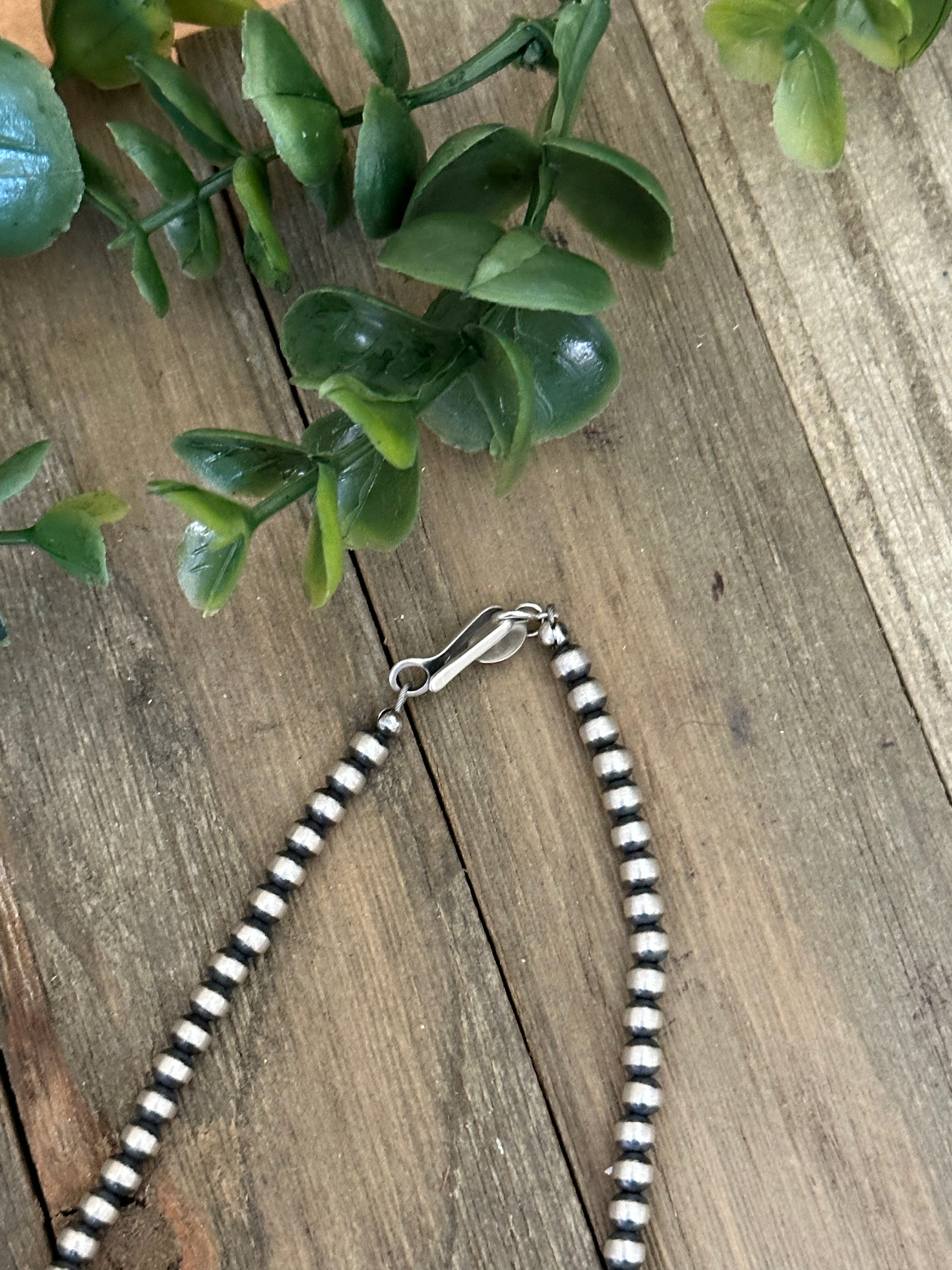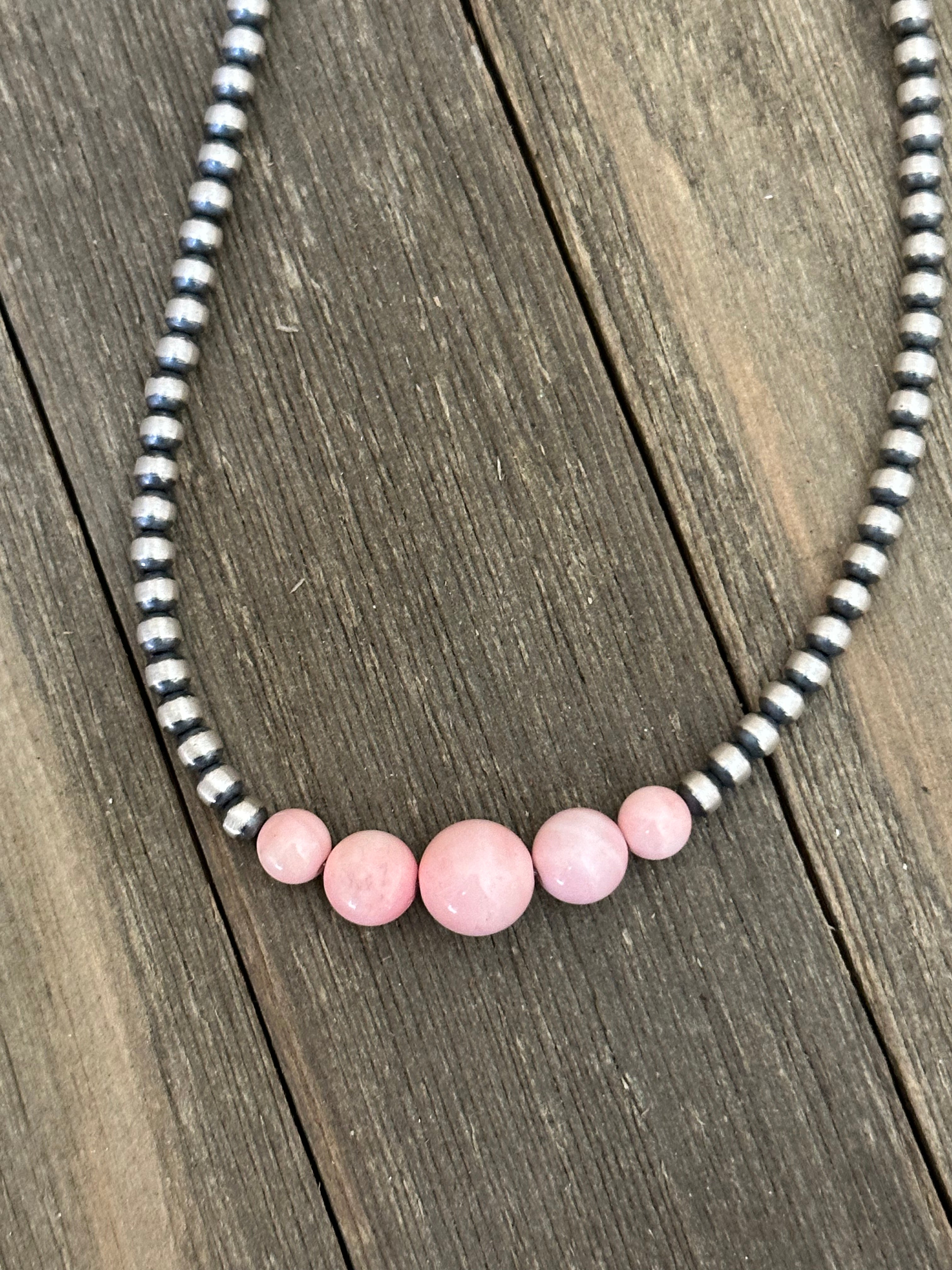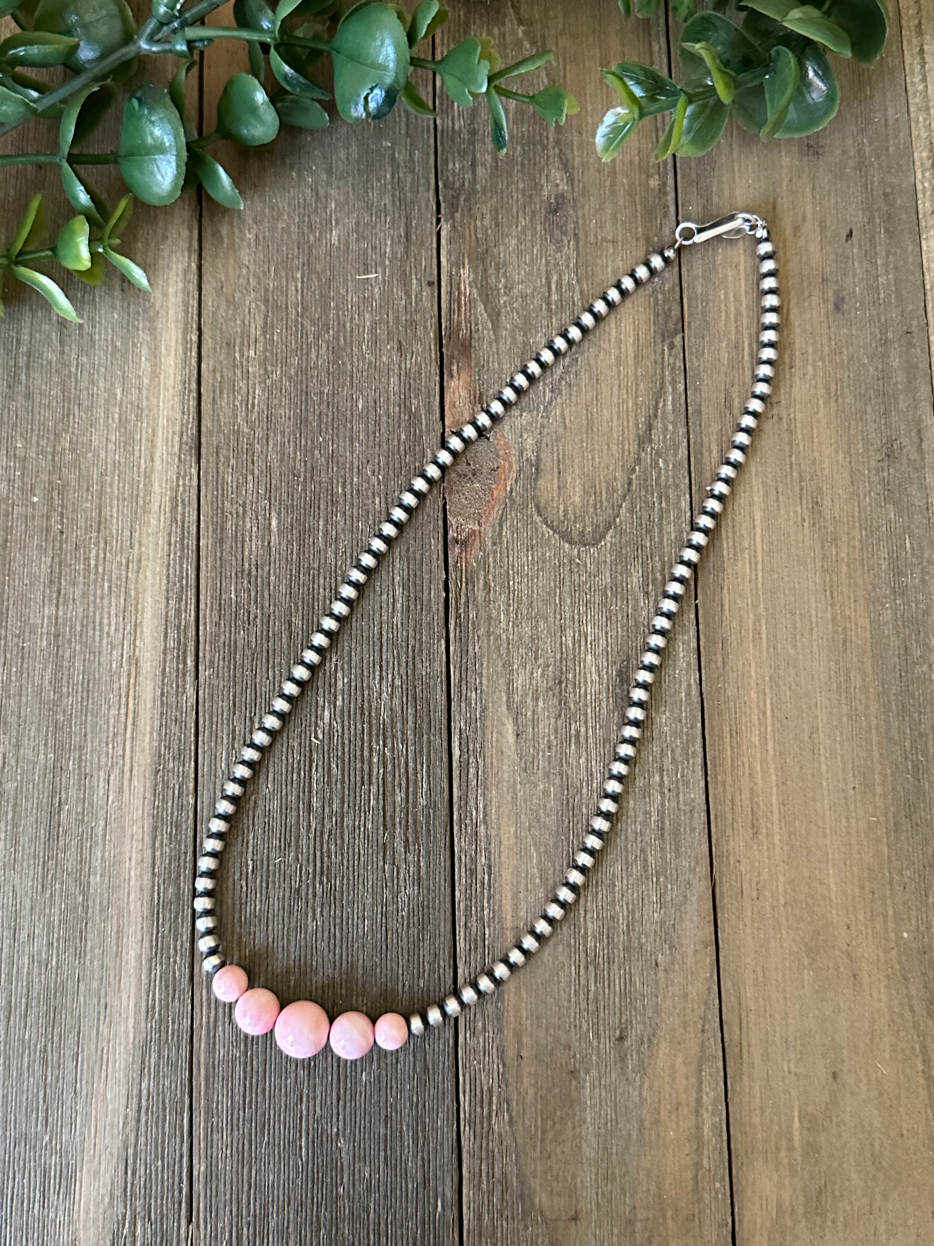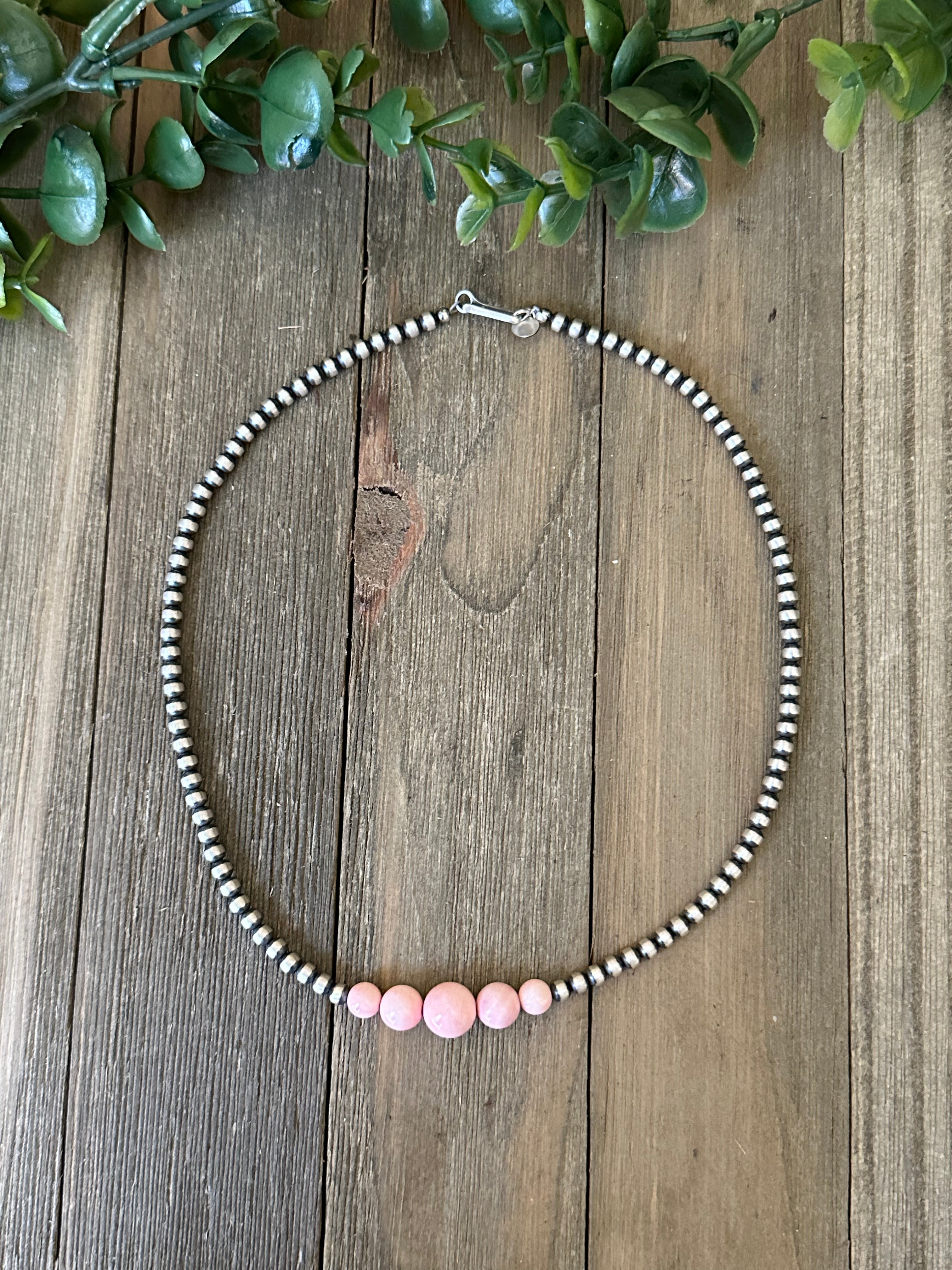 Navajo Strung Pink Conch & Sterling Silver 4 MM Pearls Beaded Necklace
