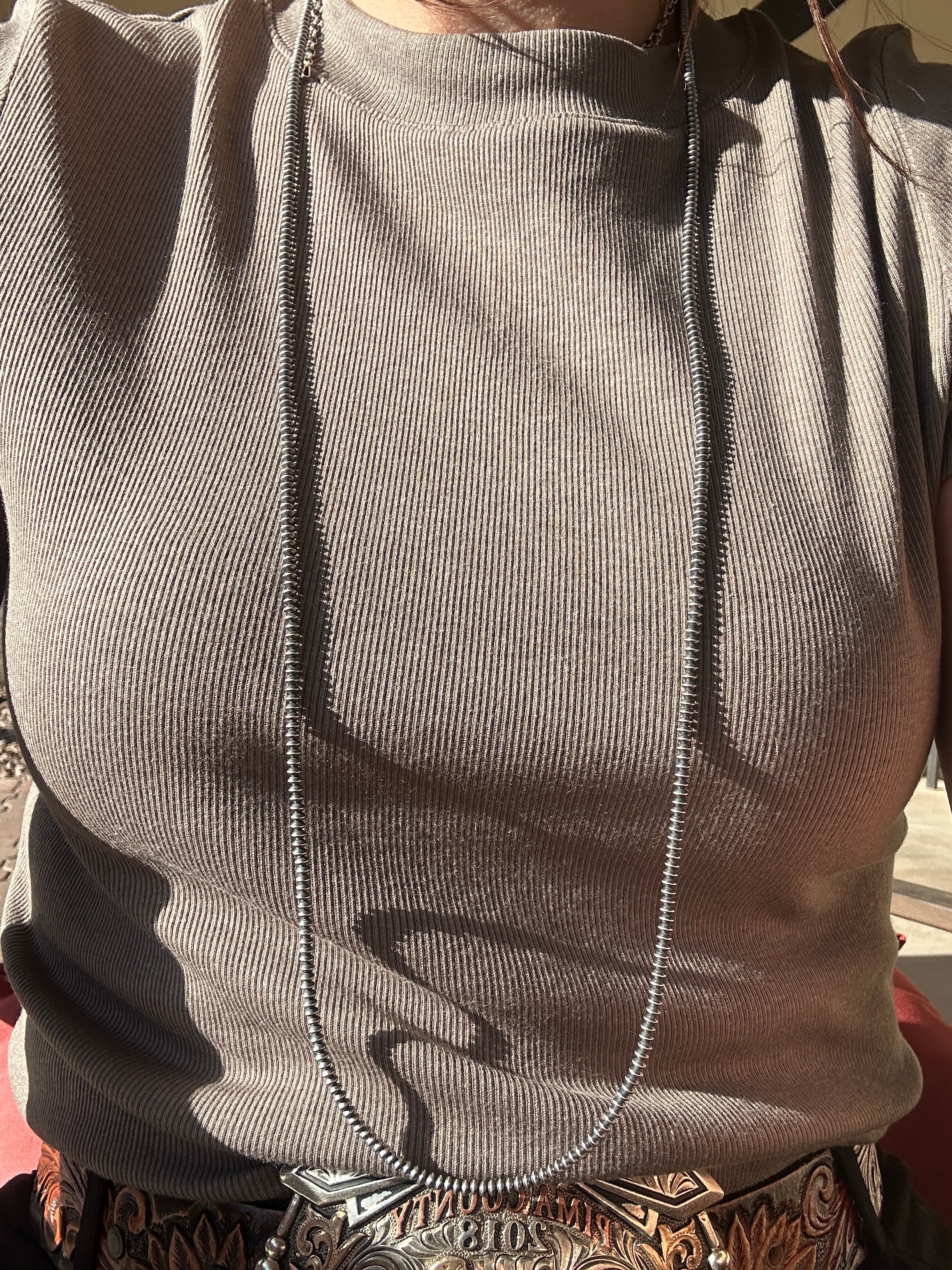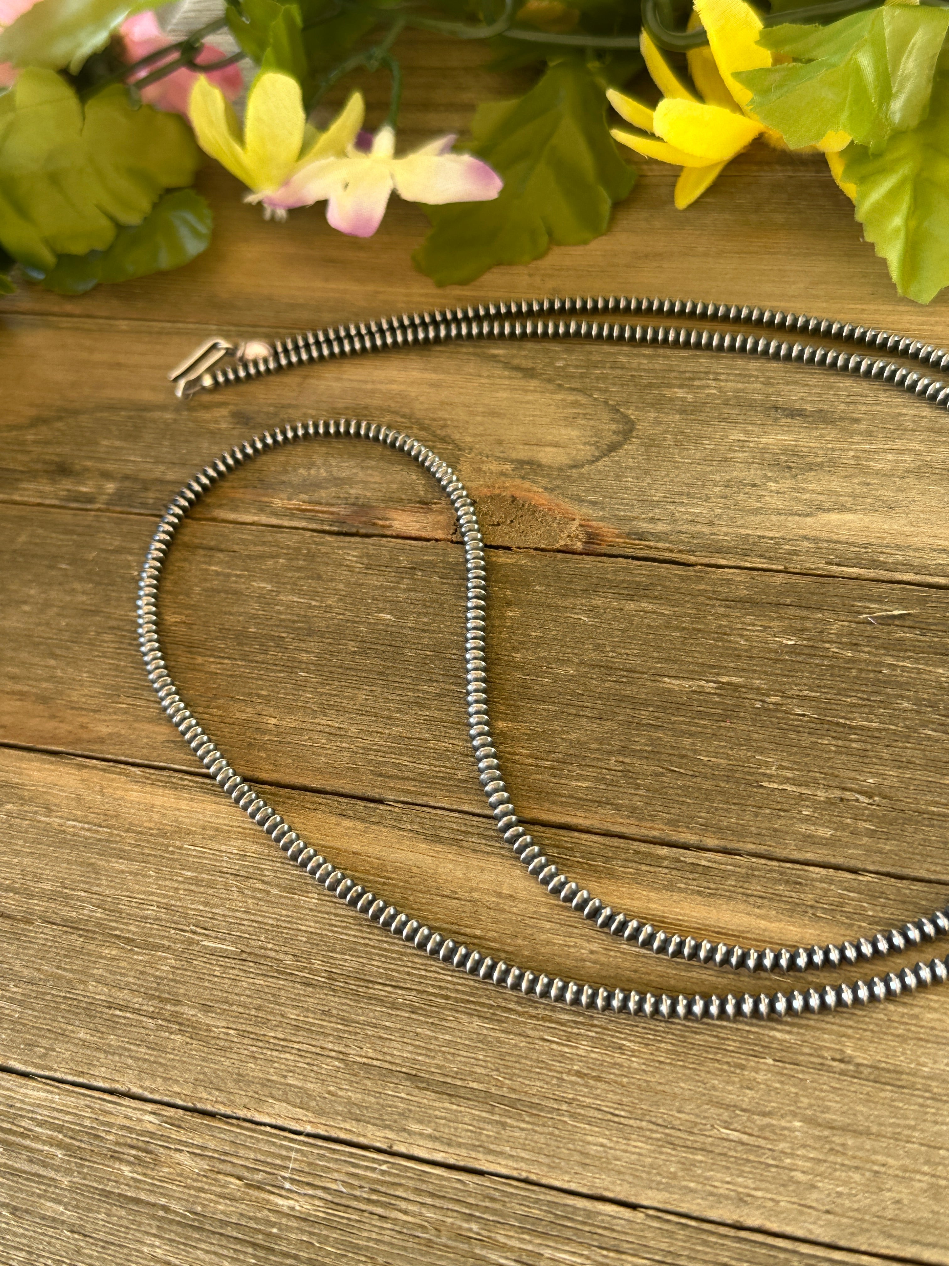 Navajo Strung Sterling Silver 3 MM Saucer Pearl Necklace.