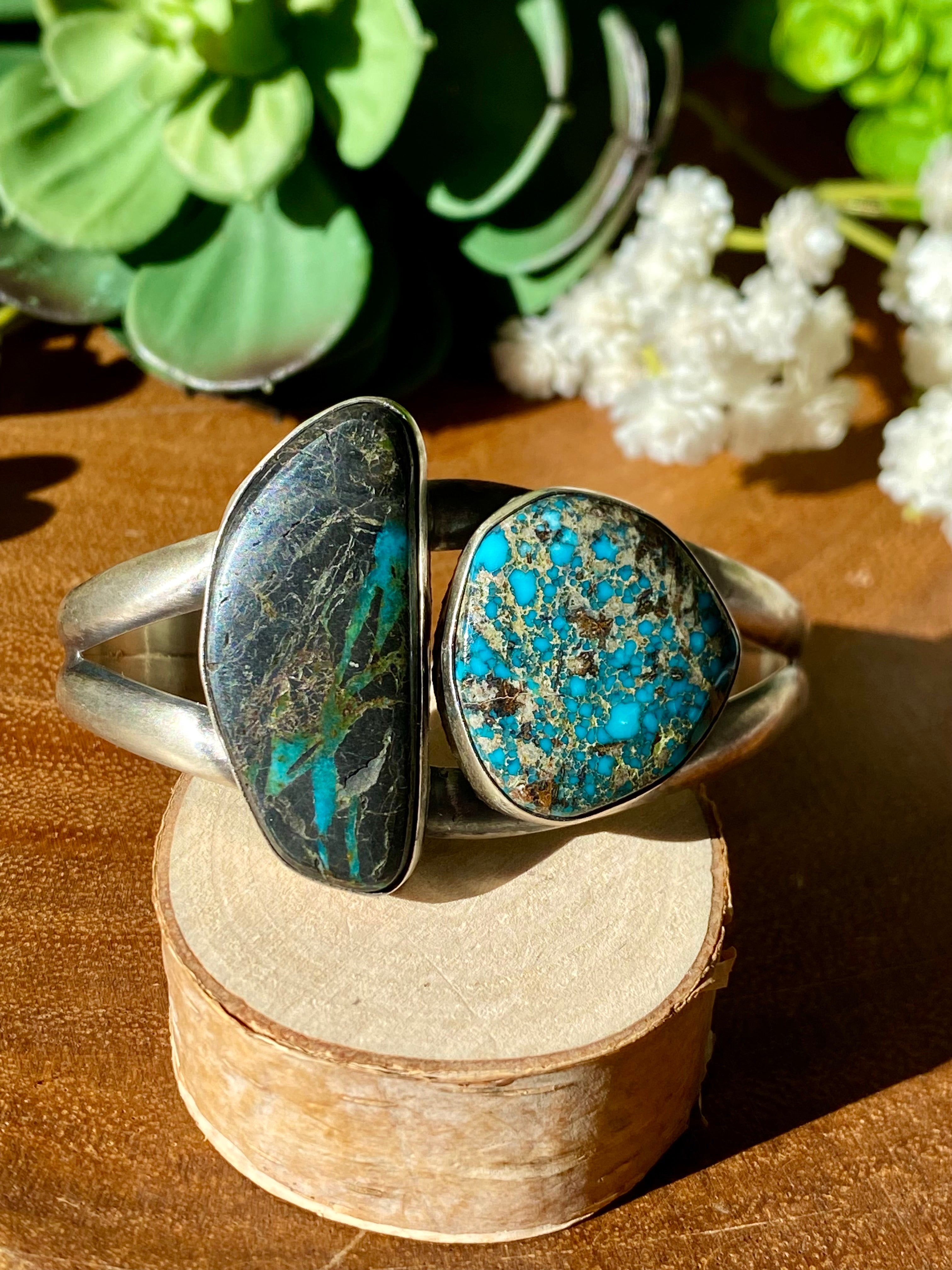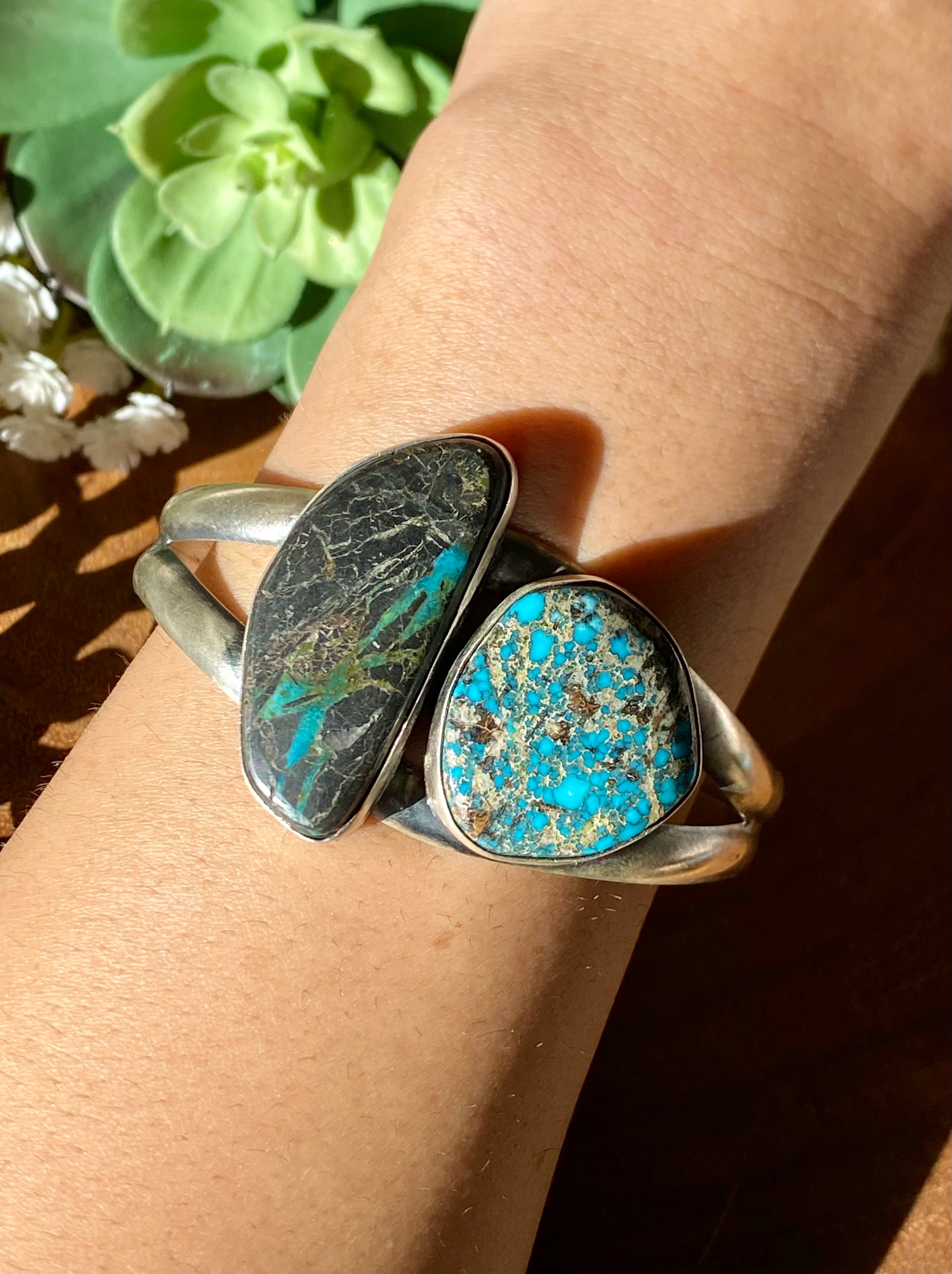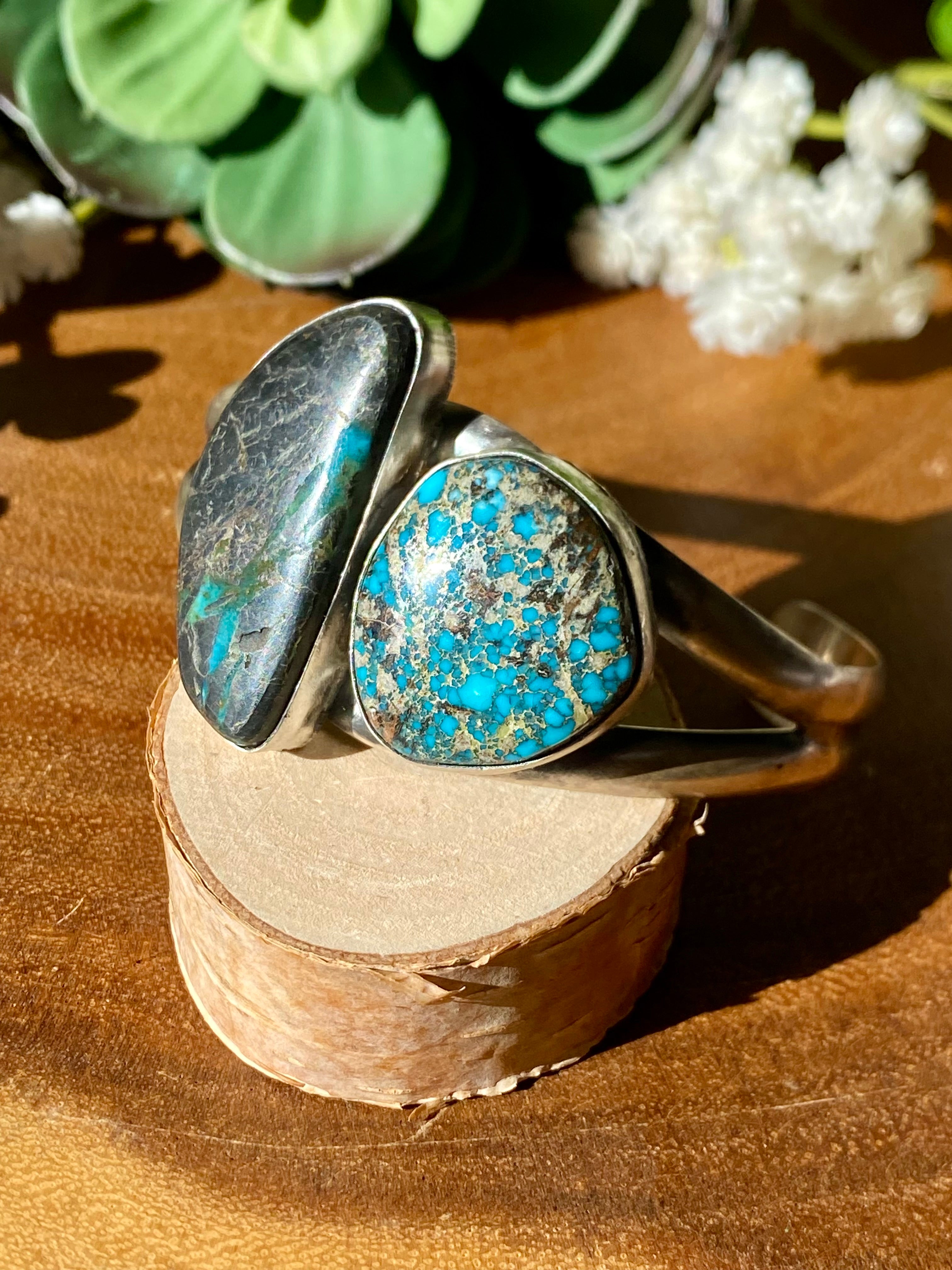 Paul Livingston Mixed Turquoise & Sterling Silver Cuff Bracelet