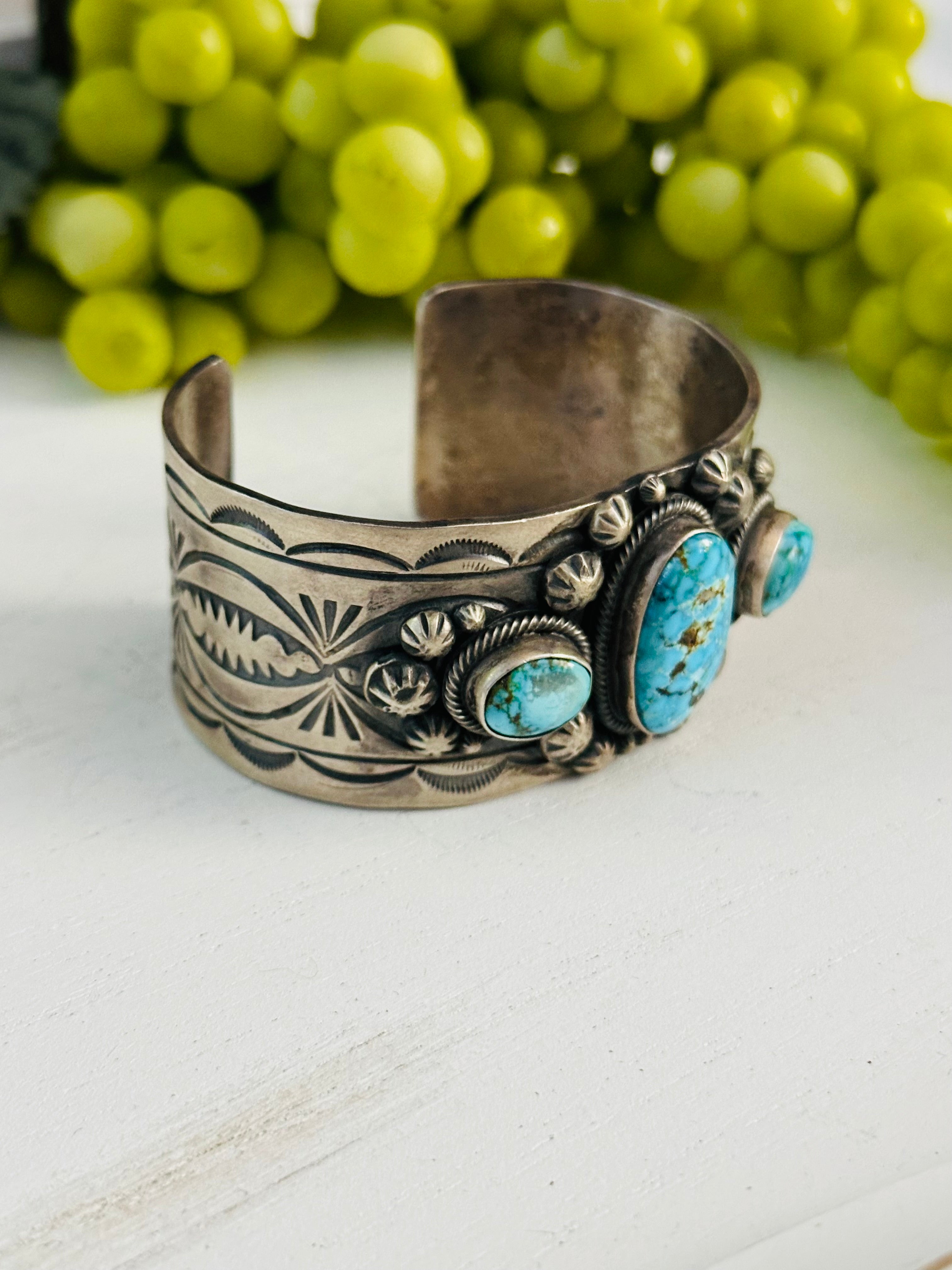 Shelia Tso Birds Eye Kingman Turquoise & Sterling Silver Cuff Bracelet