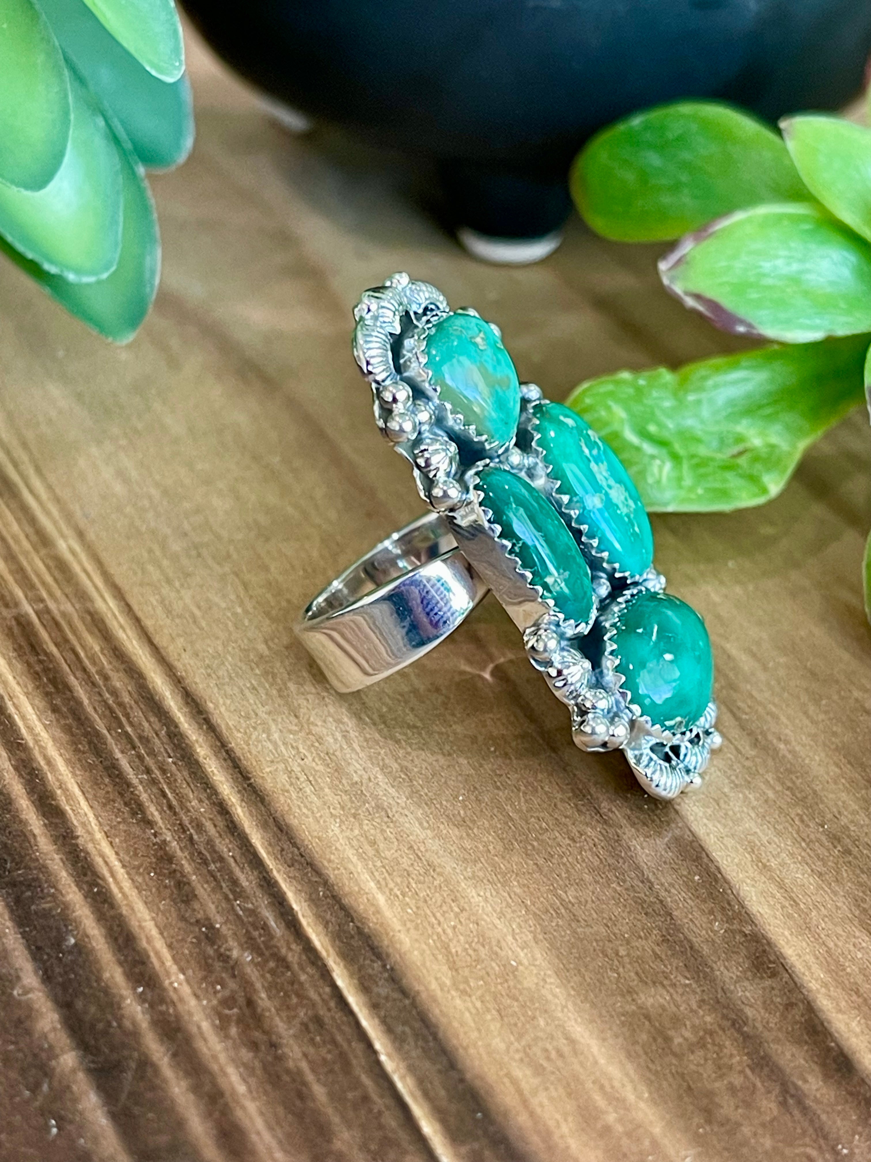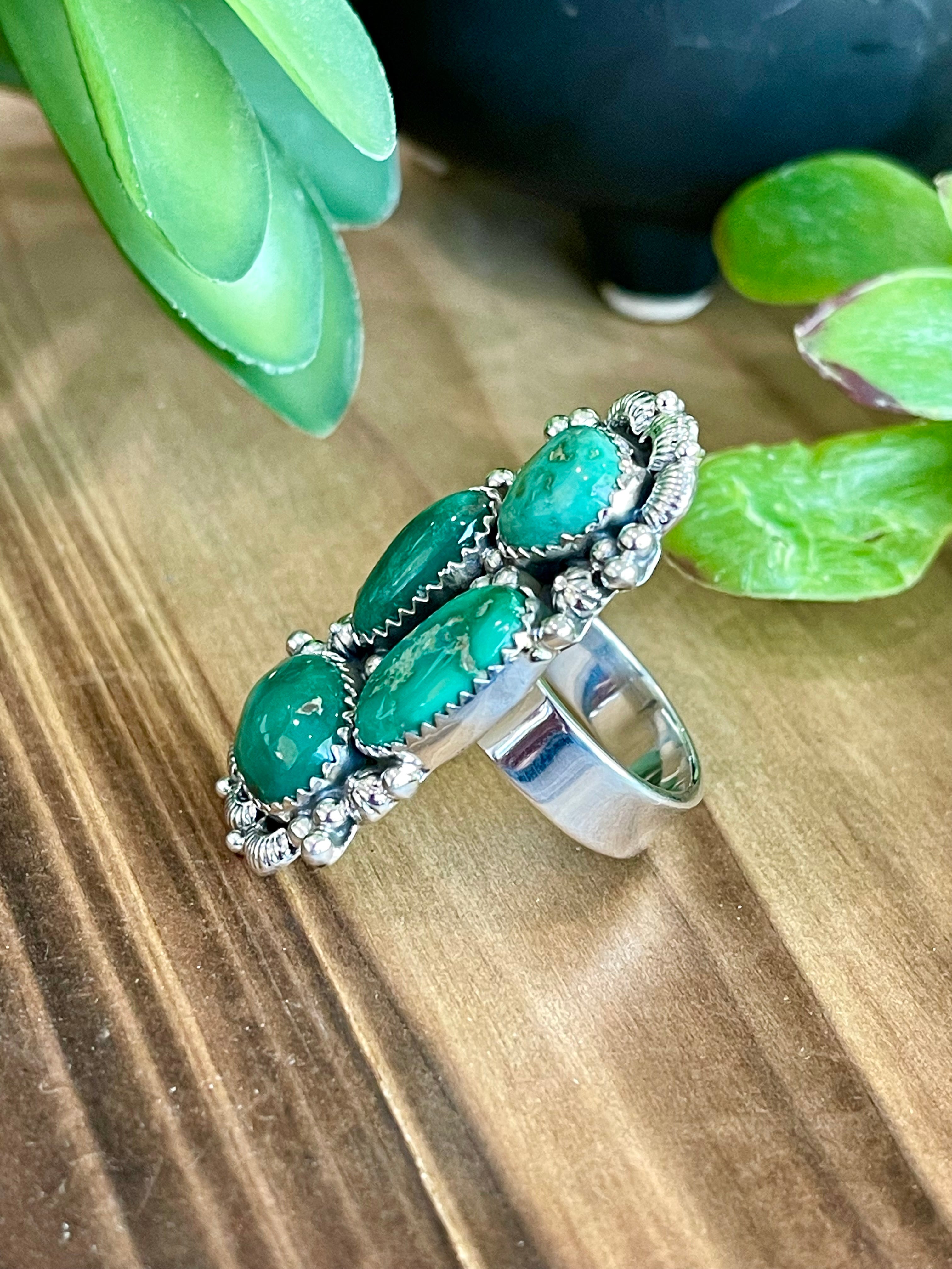Southwest Handmade Emerald Valley Turquoise & Sterling Silver Adjustable Cluster Ring