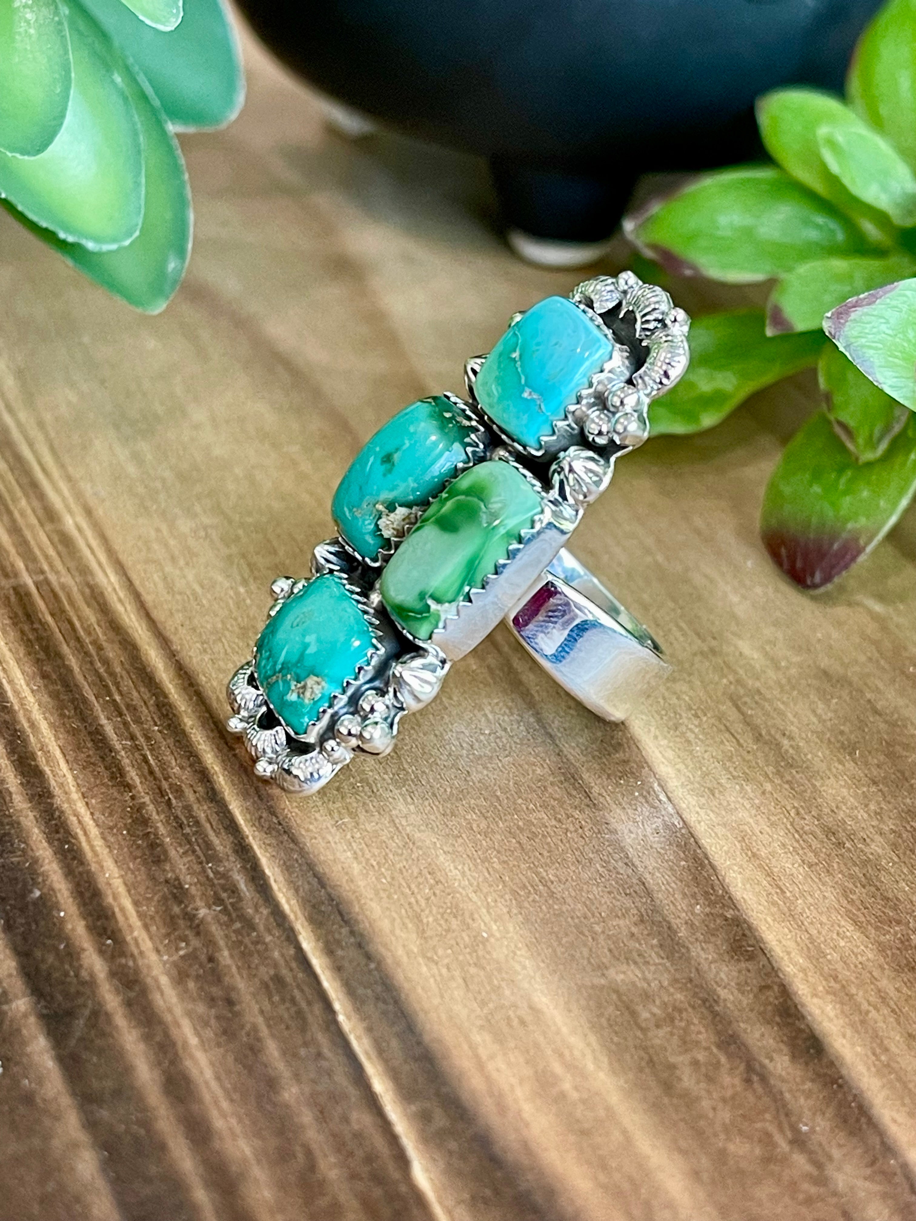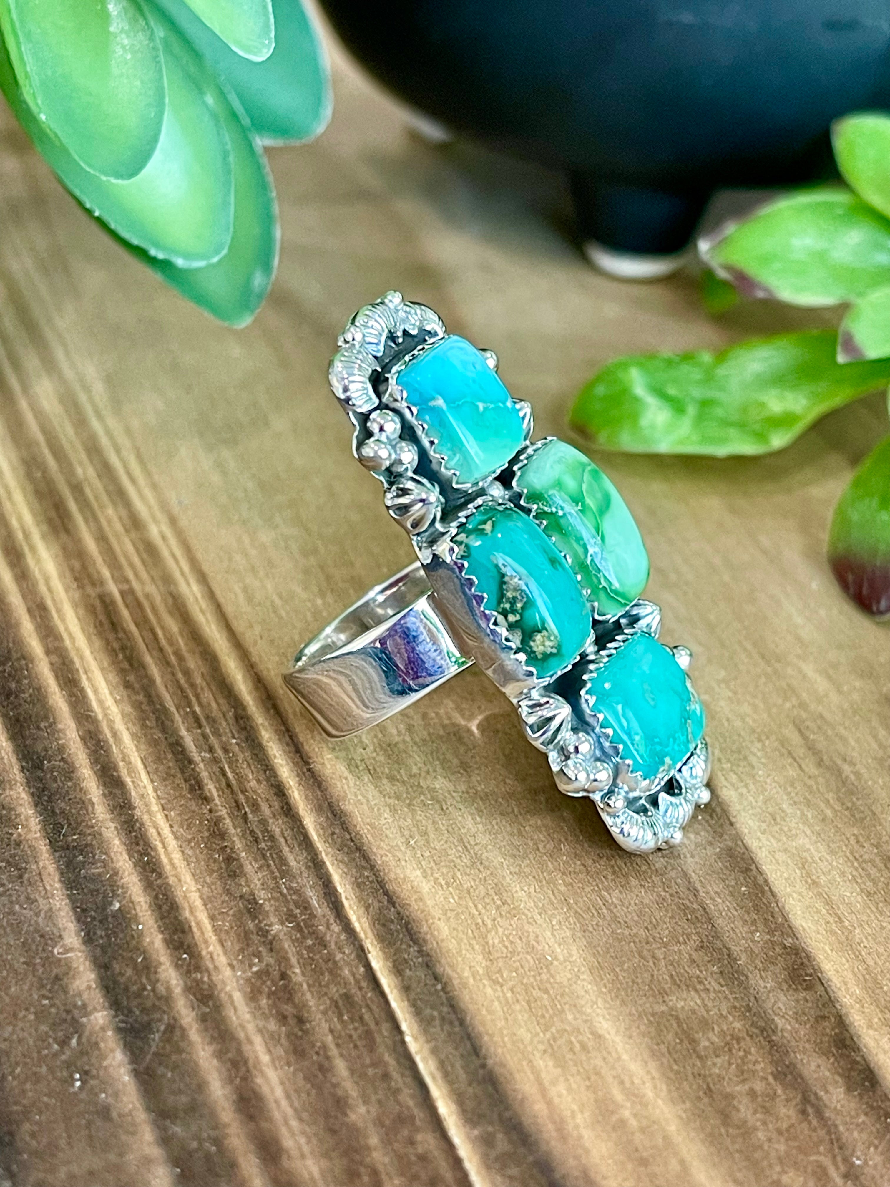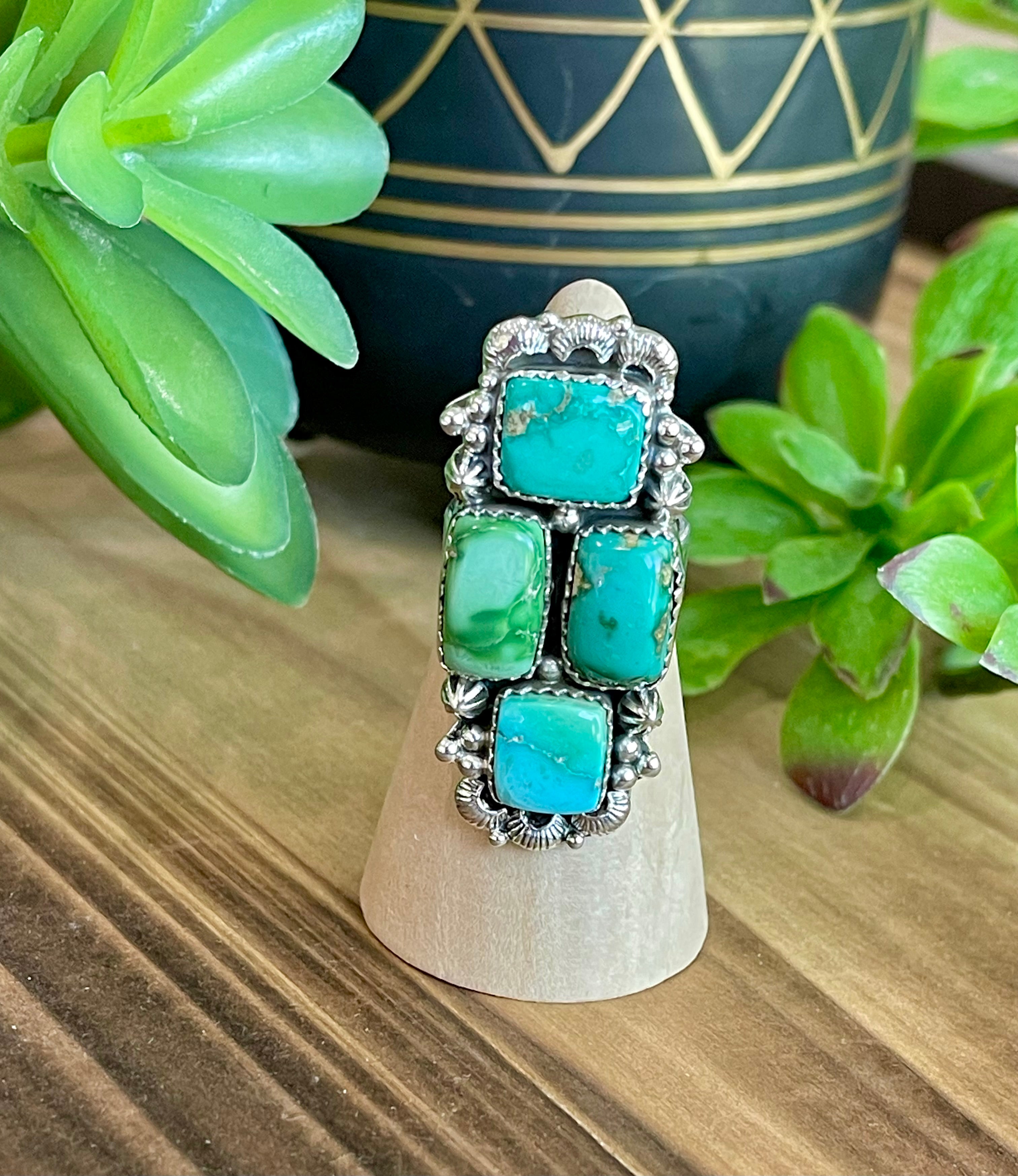 Southwest Handmade Emerald Valley Turquoise & Sterling Silver Adjustable Cluster Ring