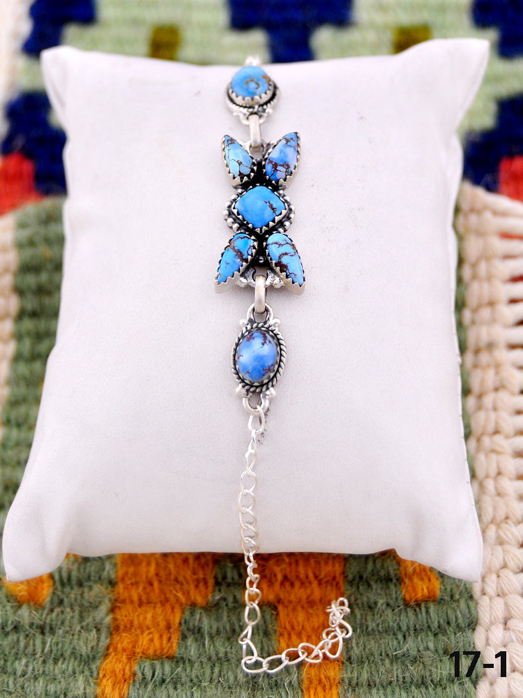 Southwest Handmade Golden Hills Turquoise & Sterling Silver Bracelet. The Bracelet measures 4 4/8-8 inches long and 5/8 inches wide along with a chain that measures 6 inches long.