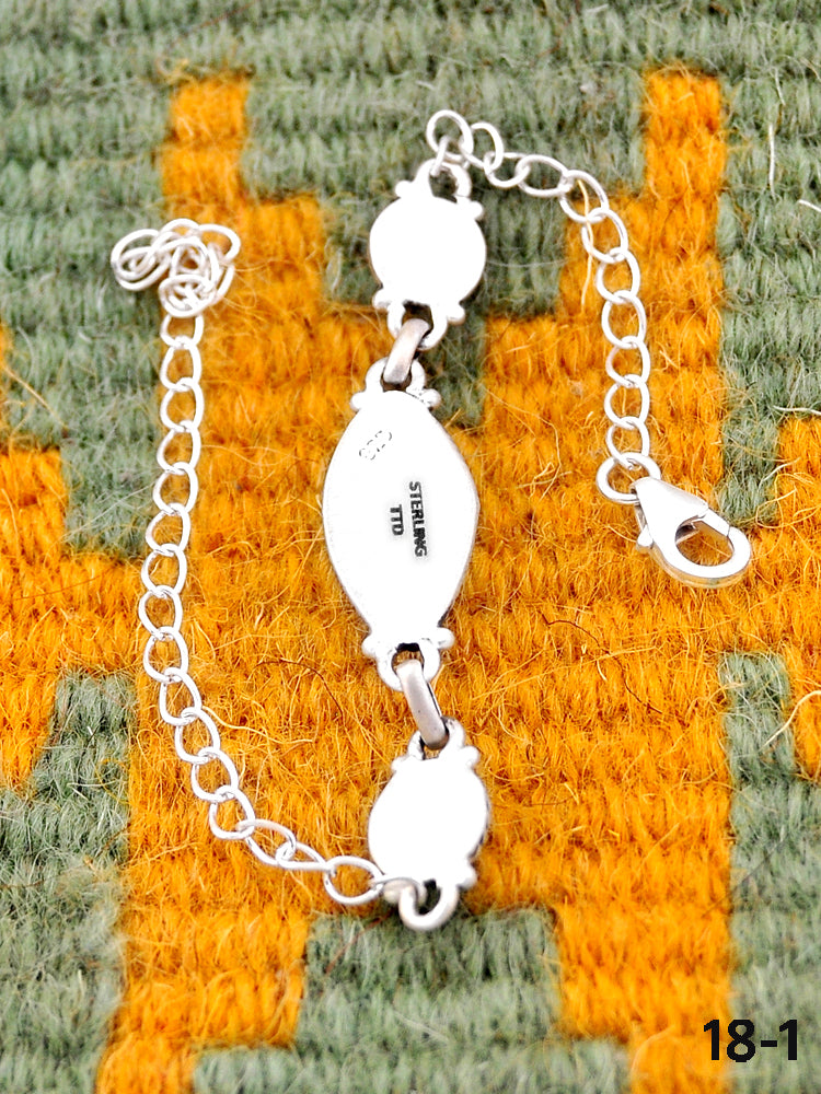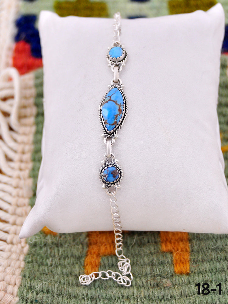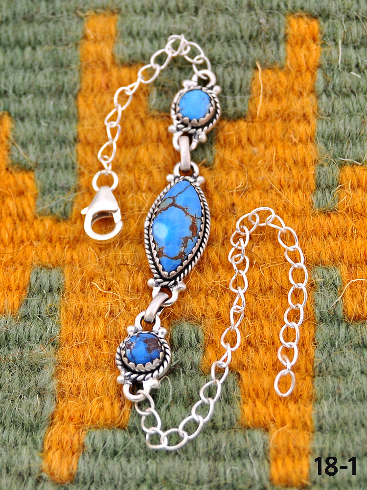 Southwest Handmade Golden Hills Turquoise & Sterling Silver Bracelet. The Bracelet measures 4-8 inches long and 5/8 inches wide along with a chain that measures 6 inches long.