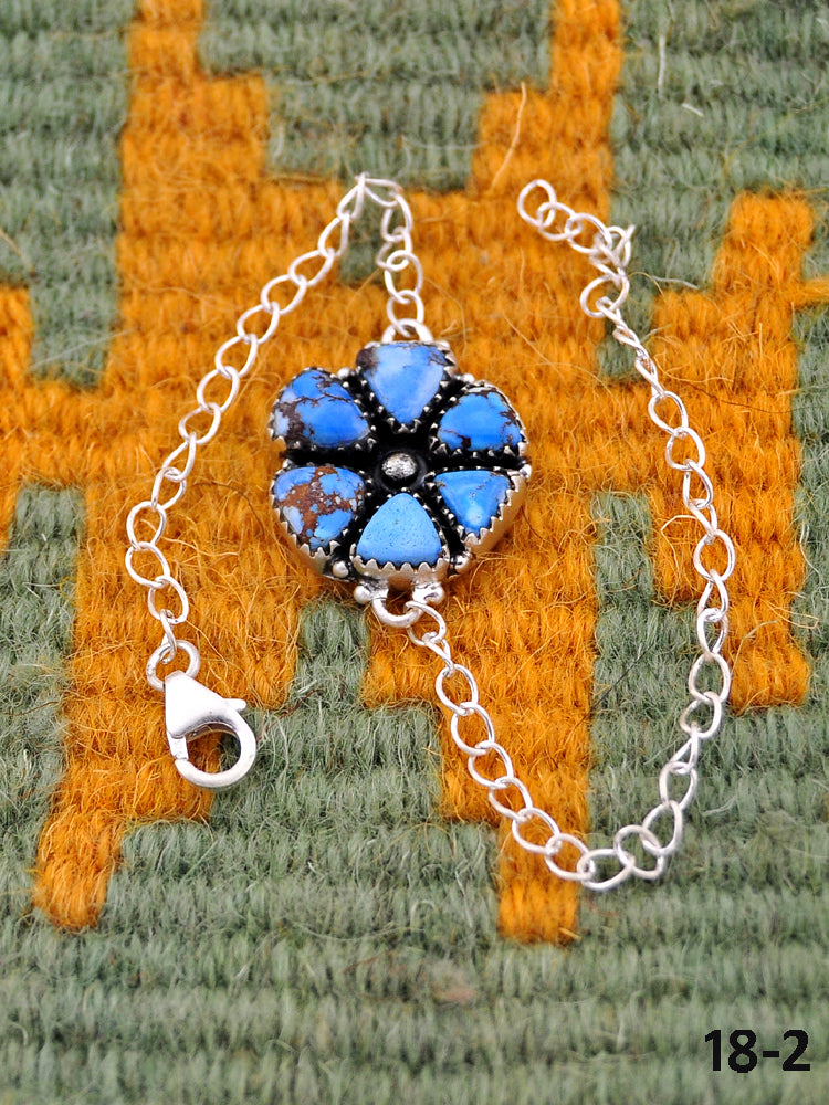 Southwest Handmade Golden Hills Turquoise & Sterling Silver Bracelet. The Bracelet measures 4-8 inches long and 7/8 inches wide along with a chain that measures 7 inches long.