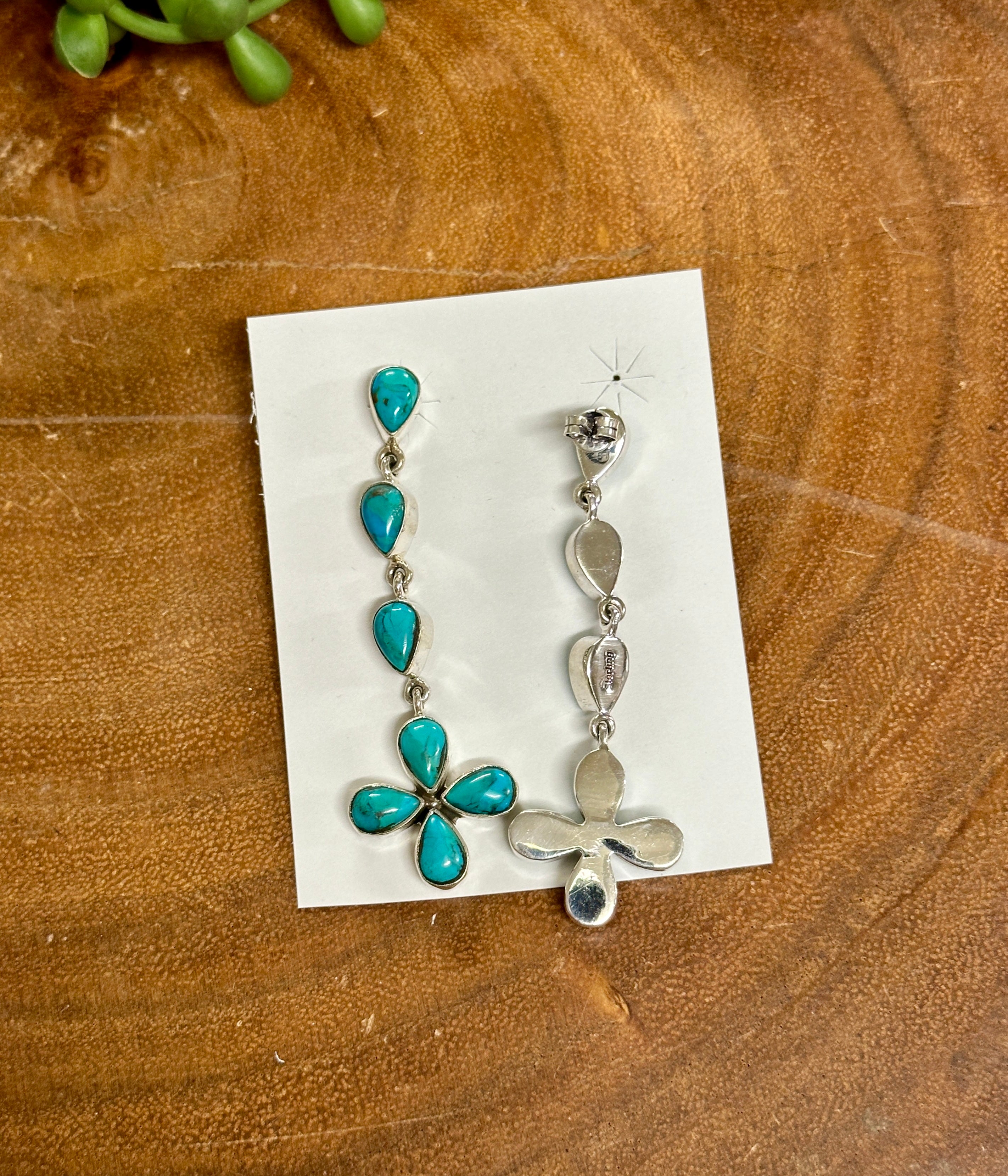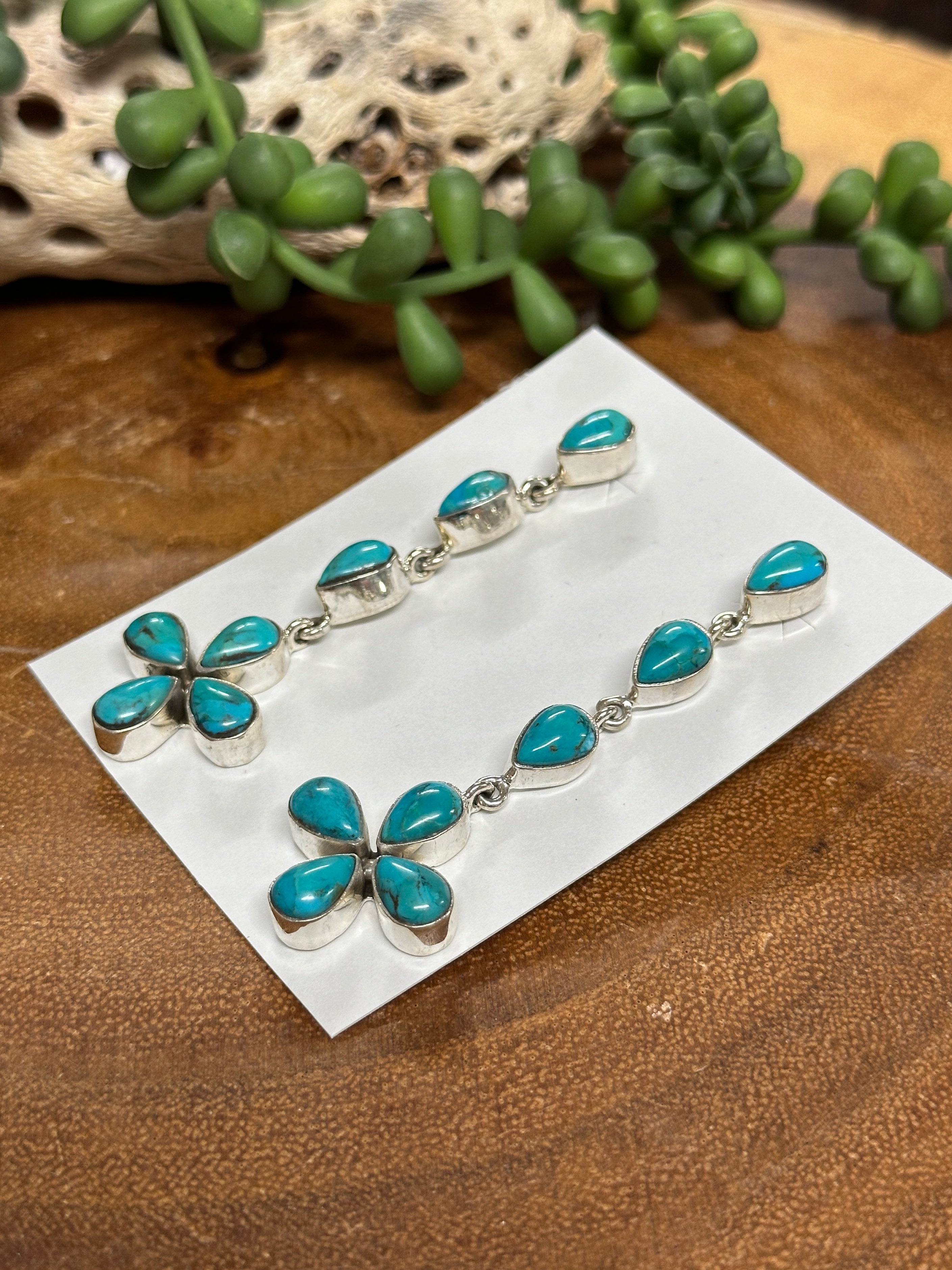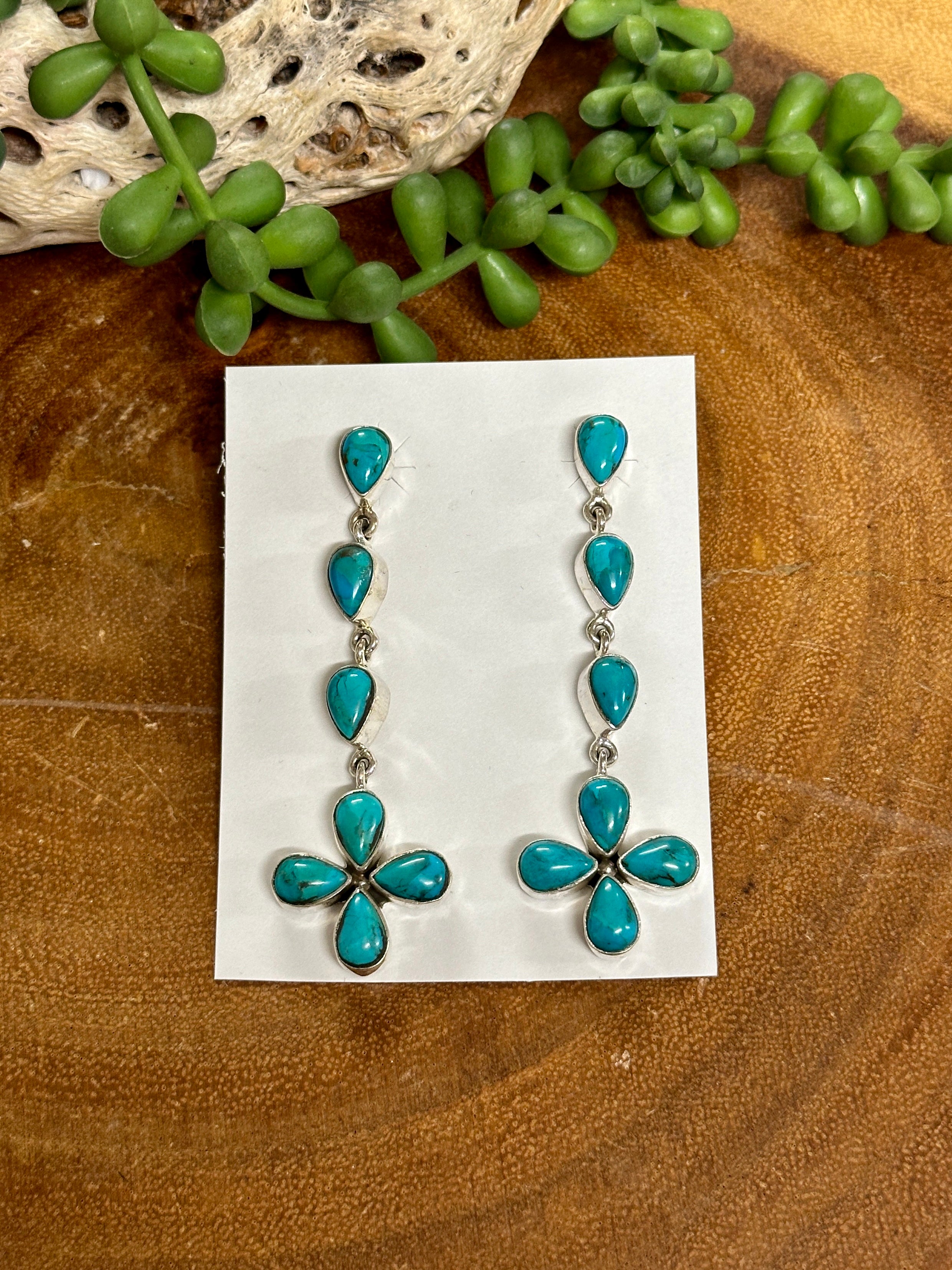 Southwest Handmade Kingman Turquoise & Sterling Silver Post Dangle Earrings