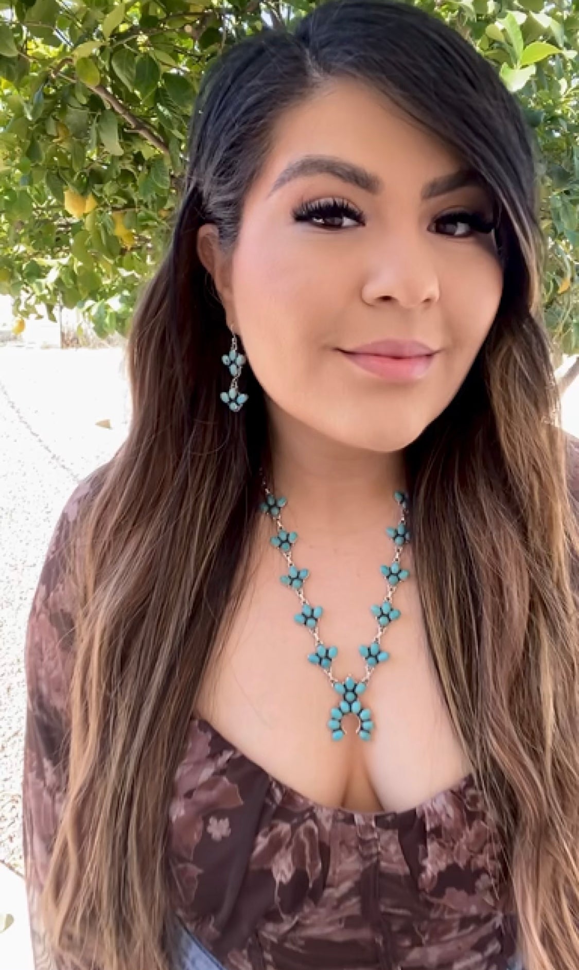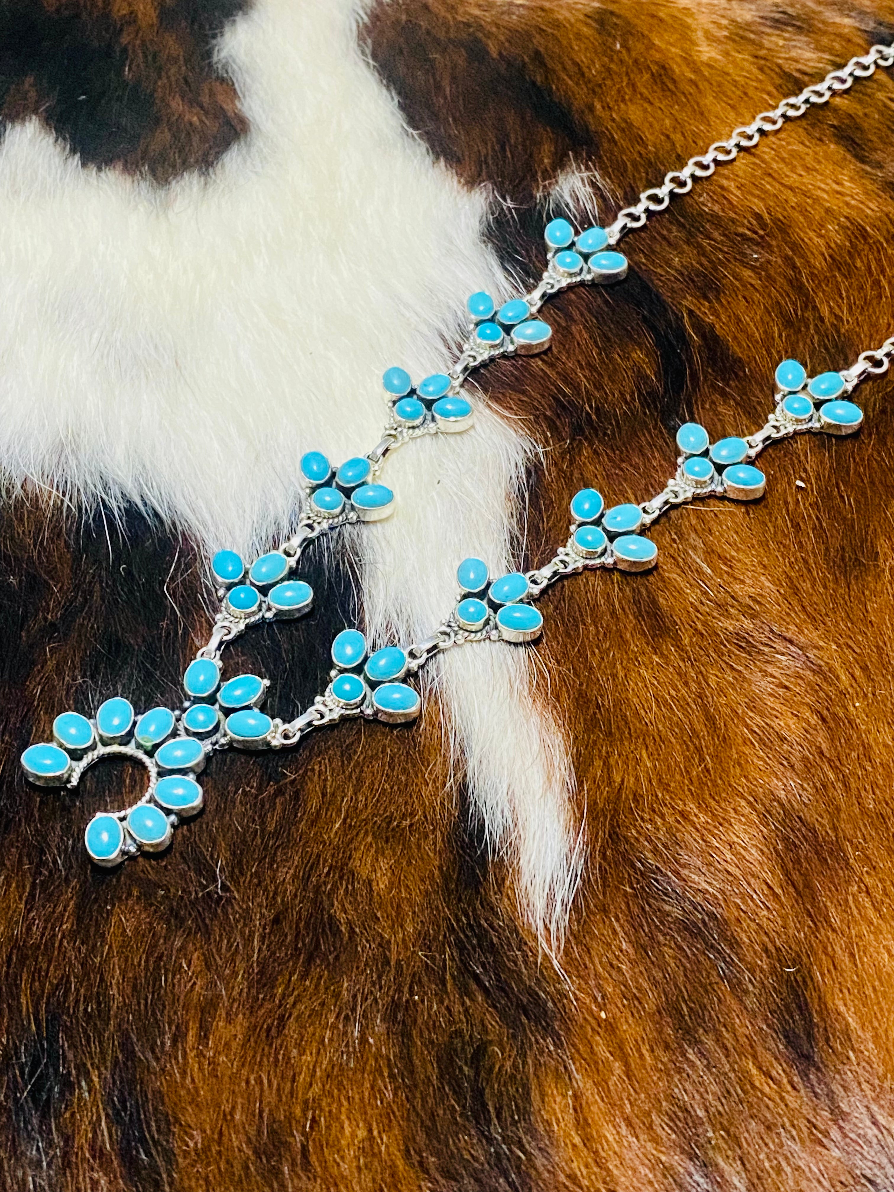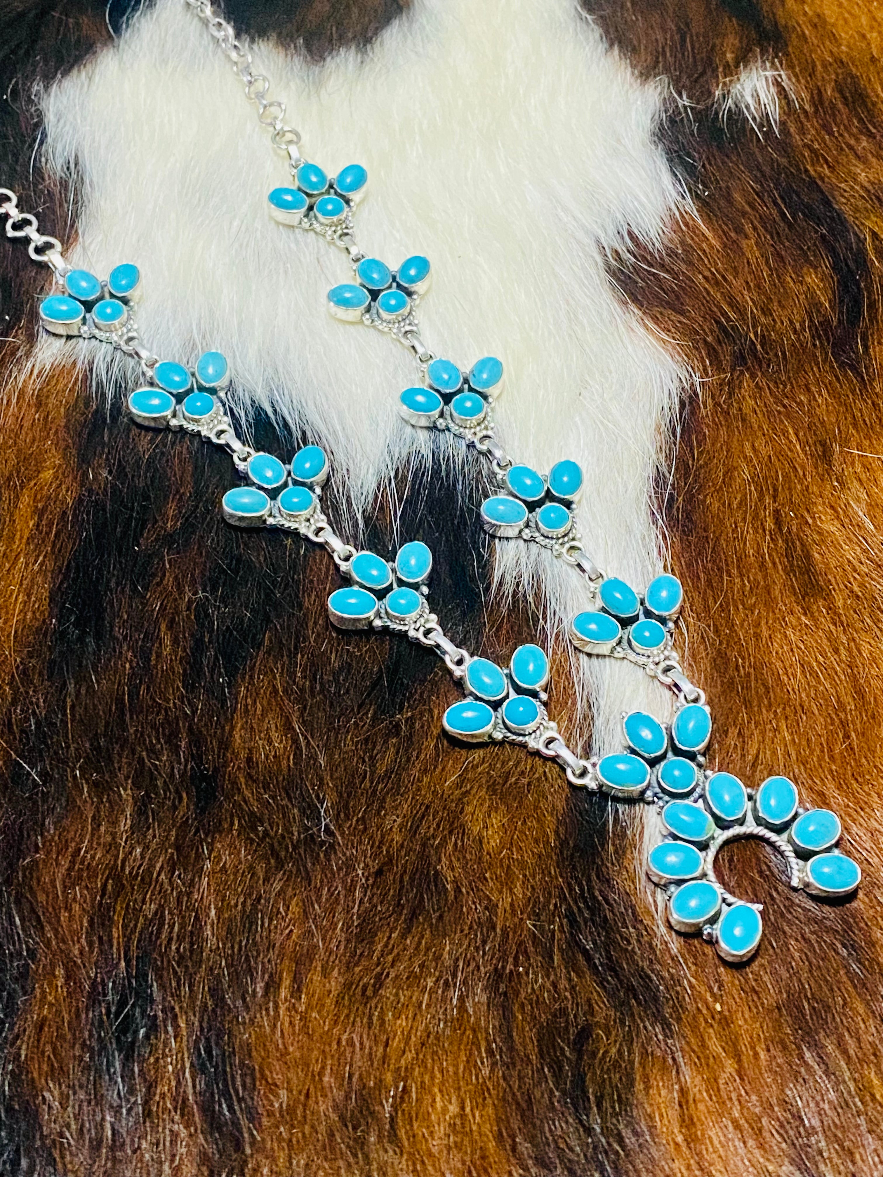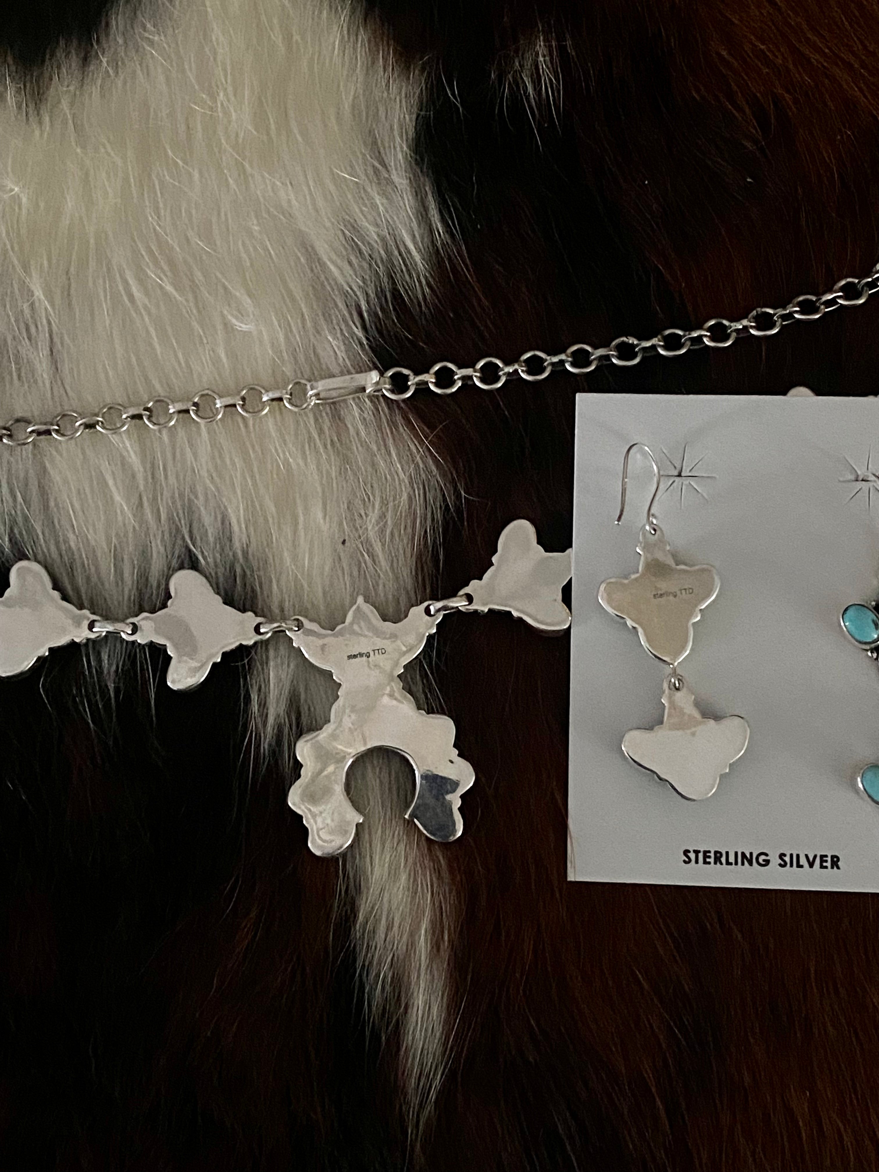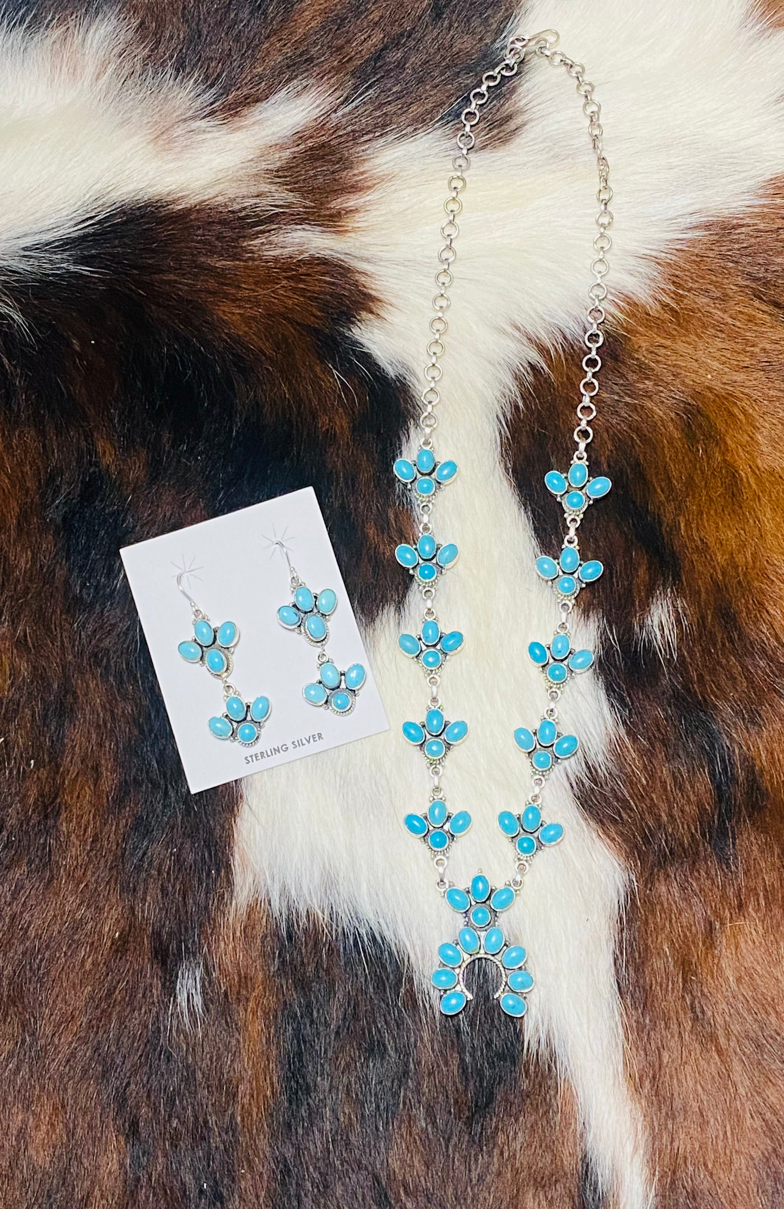 Southwest Handmade Kingman Turquoise & Sterling Silver Squash Necklace Set