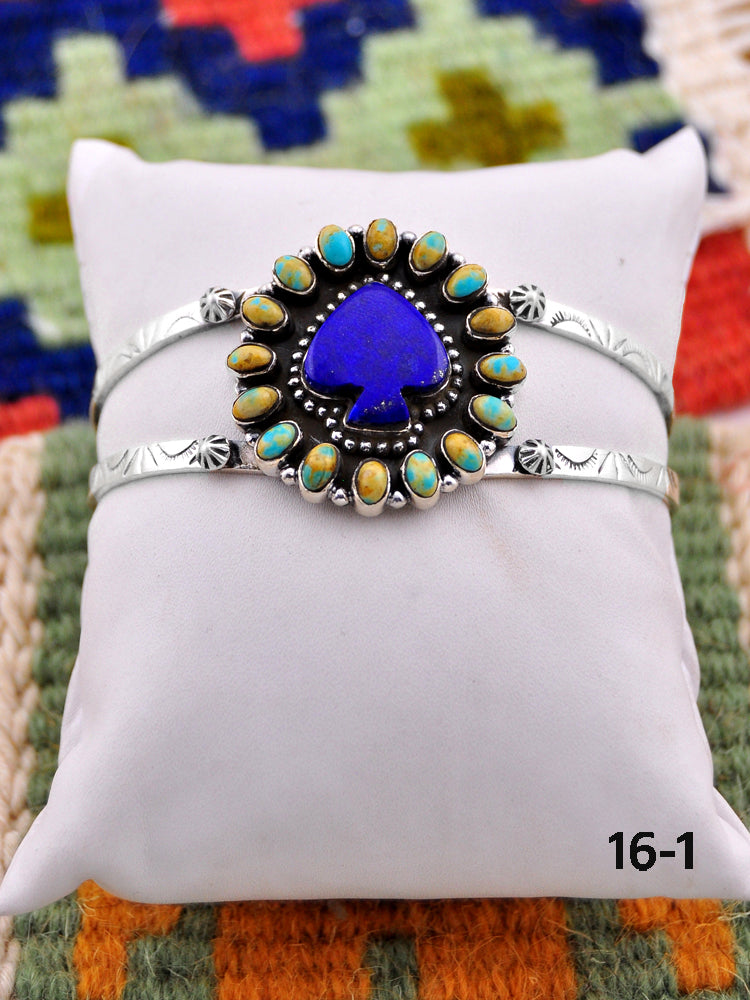 Southwest Handmade Kingman turquoise with lapis luzuli & Sterling Silver Cuff Bracelet