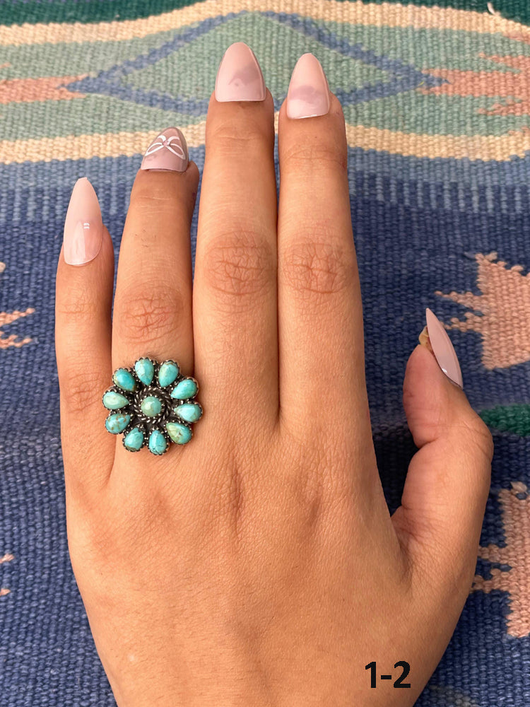 Southwest Handmade Kingman Turquoise & Sterling Silver Adjustable Cluster Ring