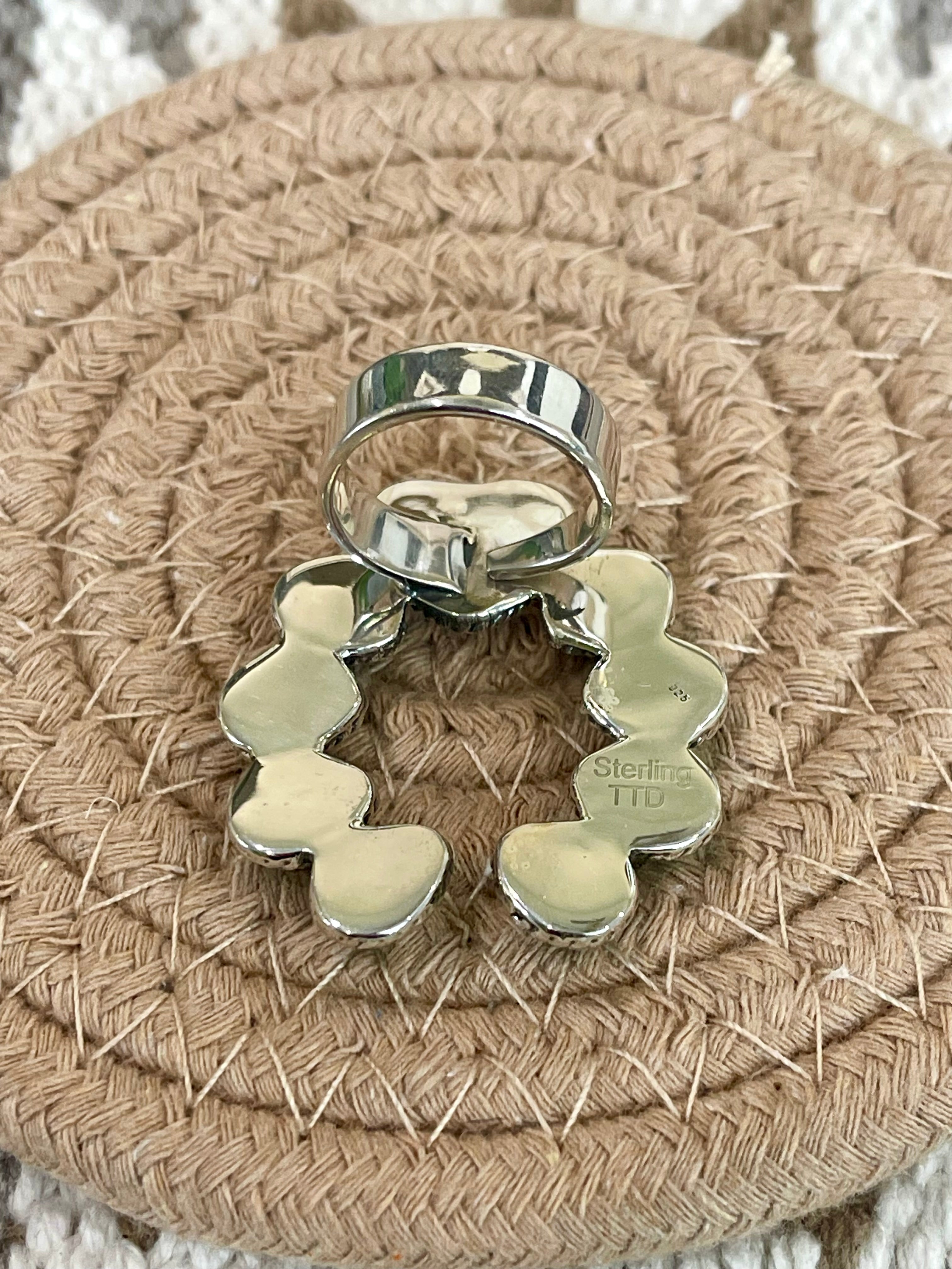 Beautiful naja ring. Southwest Handmade Multi Stone & Sterling Silver Adjustable Cluster Naja Ring. It measures 1 1/2 inches long and 1 3/8 inches wide. Signed by the artist and stamped sterling silver.