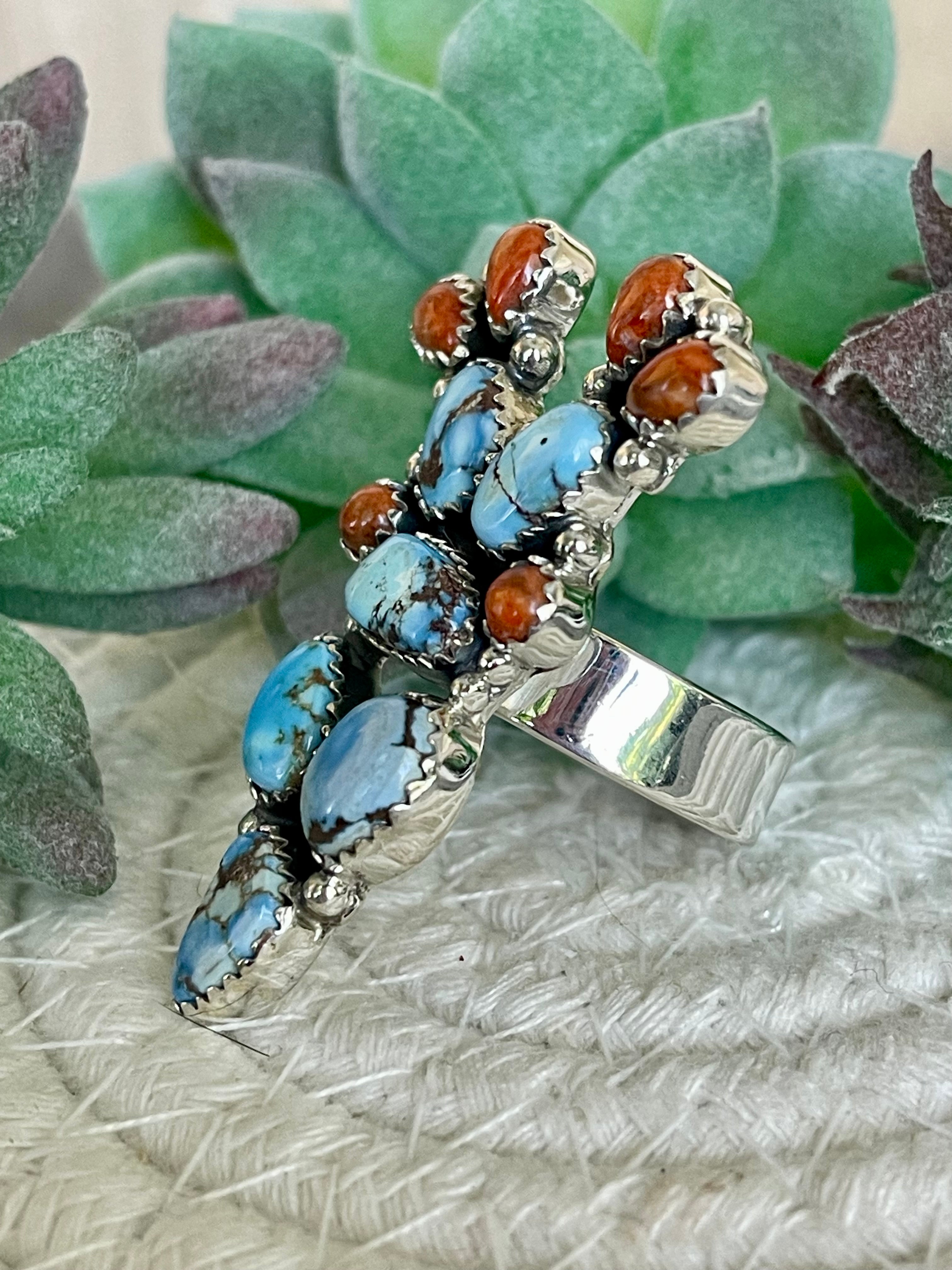 Beautiful rings. Southwest Handmade Multi Stone & Sterling Silver Adjustable Cluster Ring. Signed by the artist and stamped sterling silver.