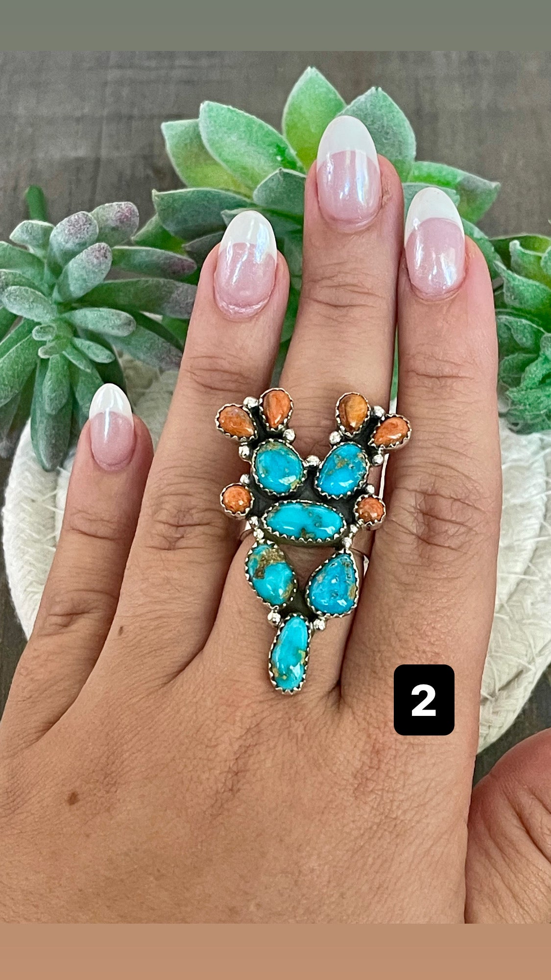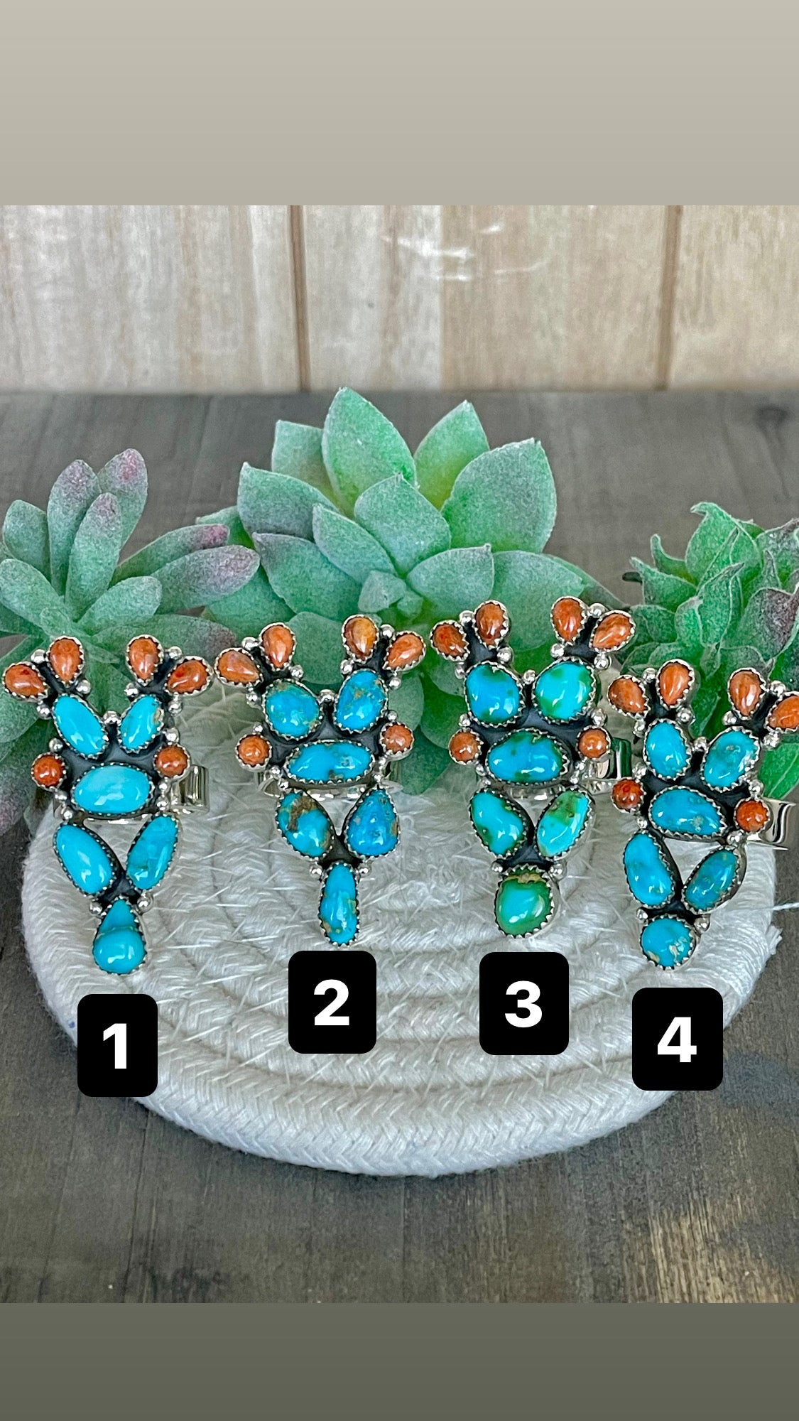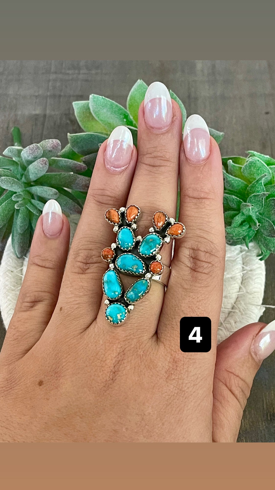 Beautiful rings. Southwest Handmade Multi Stone & Sterling Silver Adjustable Cluster Ring. Signed by the artist and stamped sterling silver.