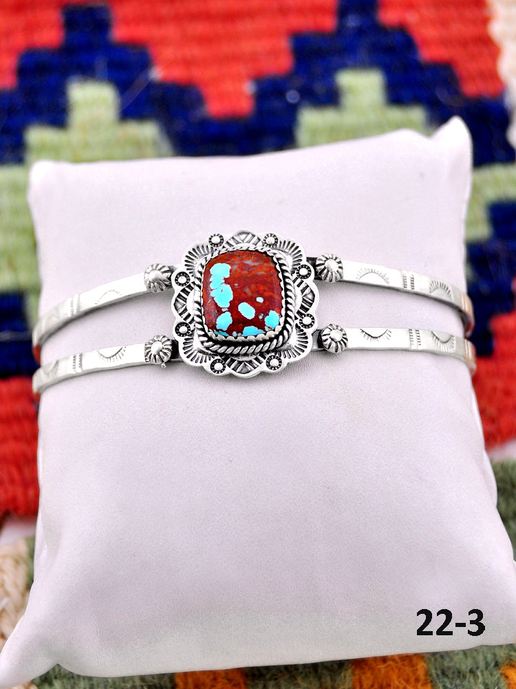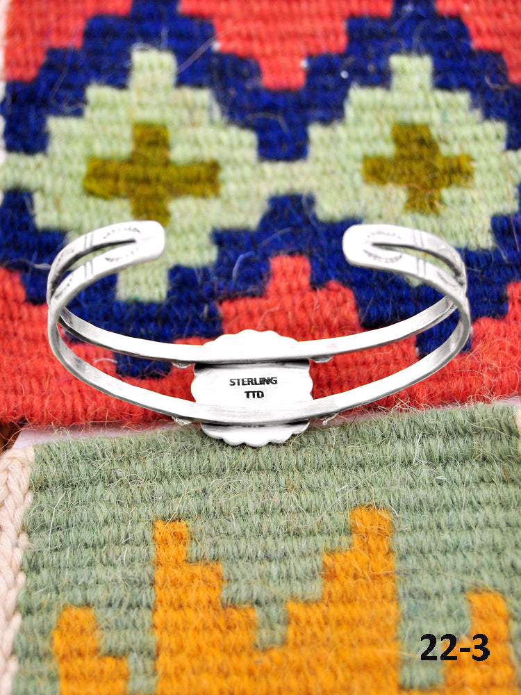 Southwest Handmade No.8 Turquoise & Sterling Silver Bangle Bracelet. It measures 7/8 of an inch wide with an inside circumference of 5 1/2 inches and a gap of 1 inches. Signed by the artist and stamped sterling silver.