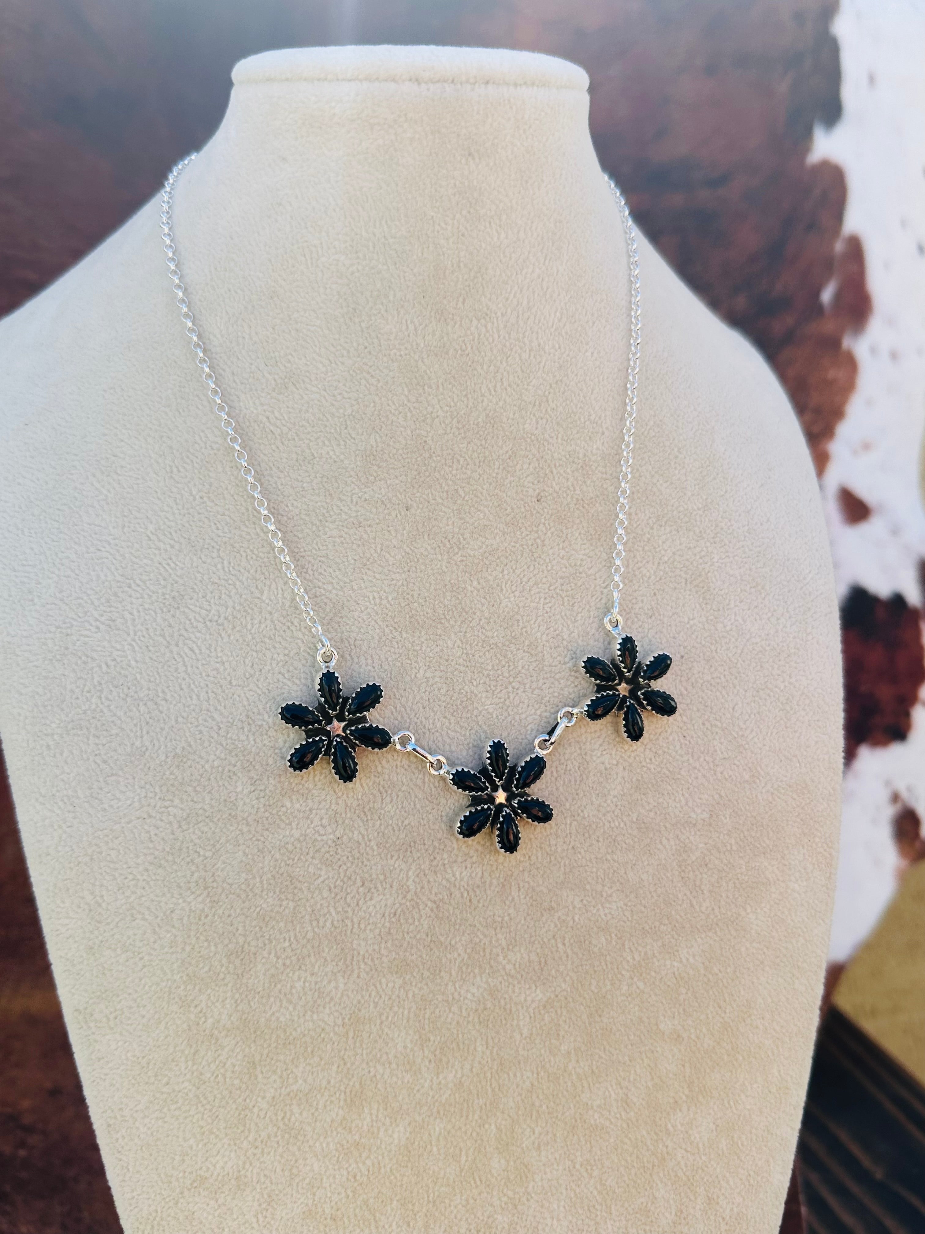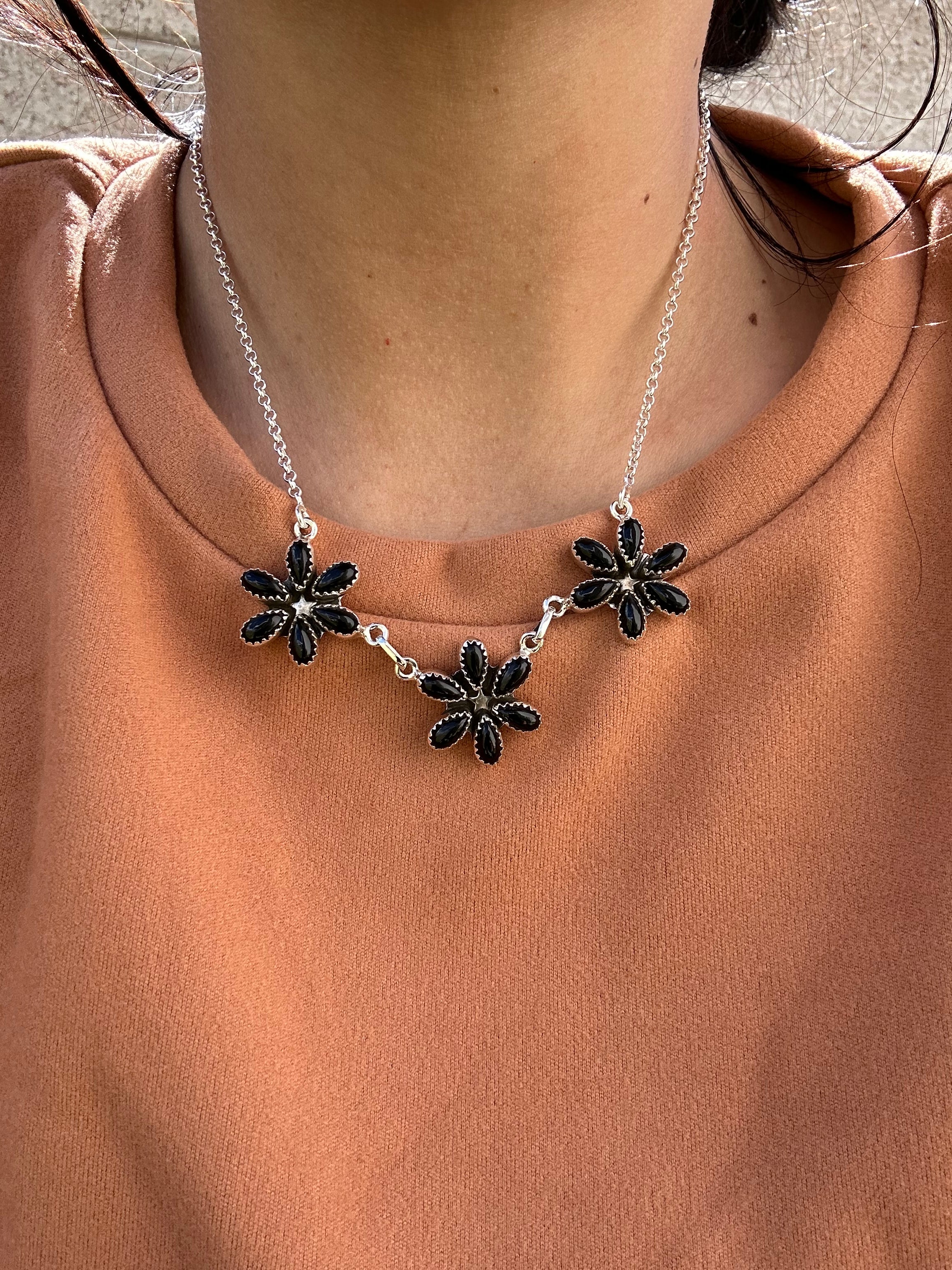 Southwest Handmade Onyx & Sterling Silver Cluster Necklace