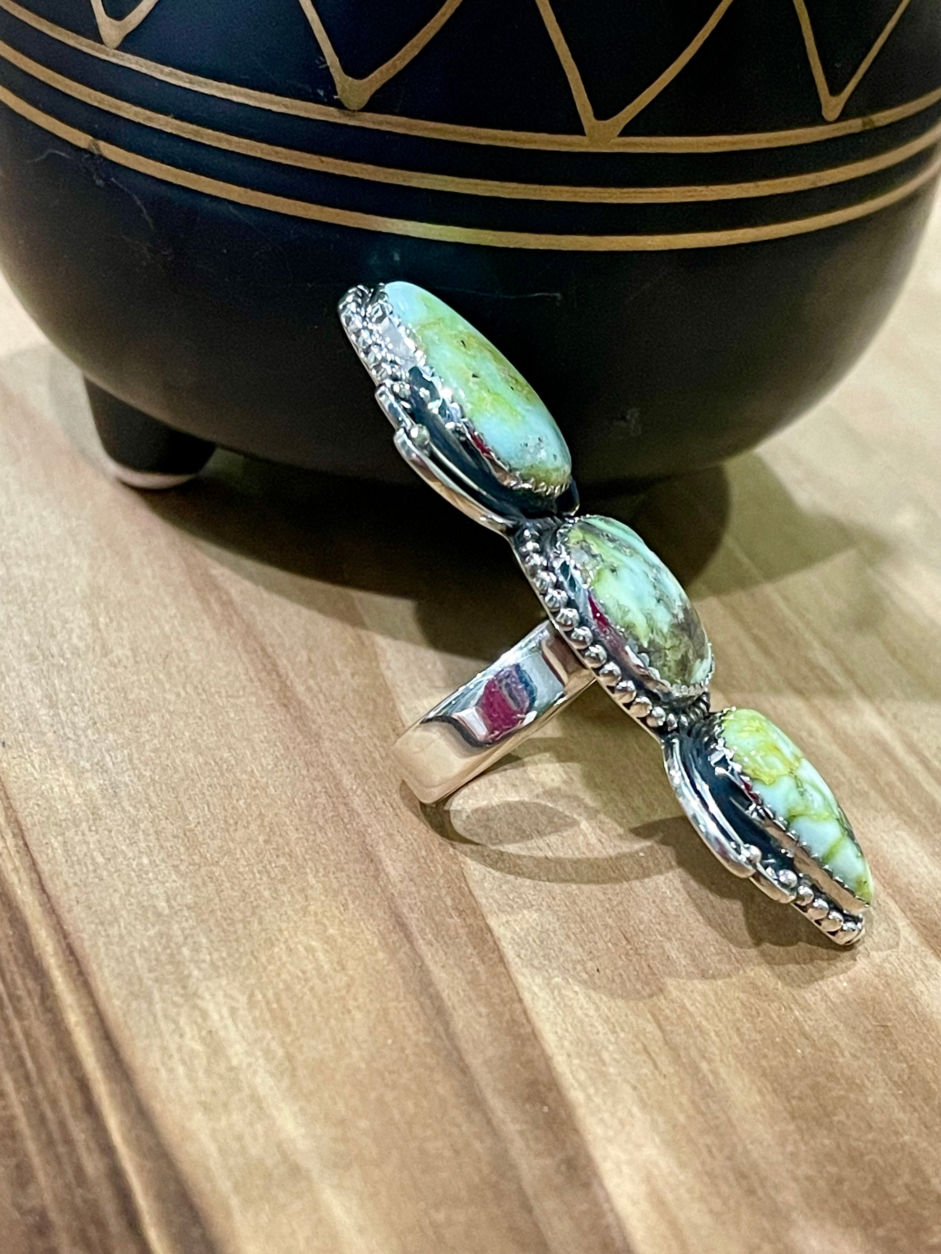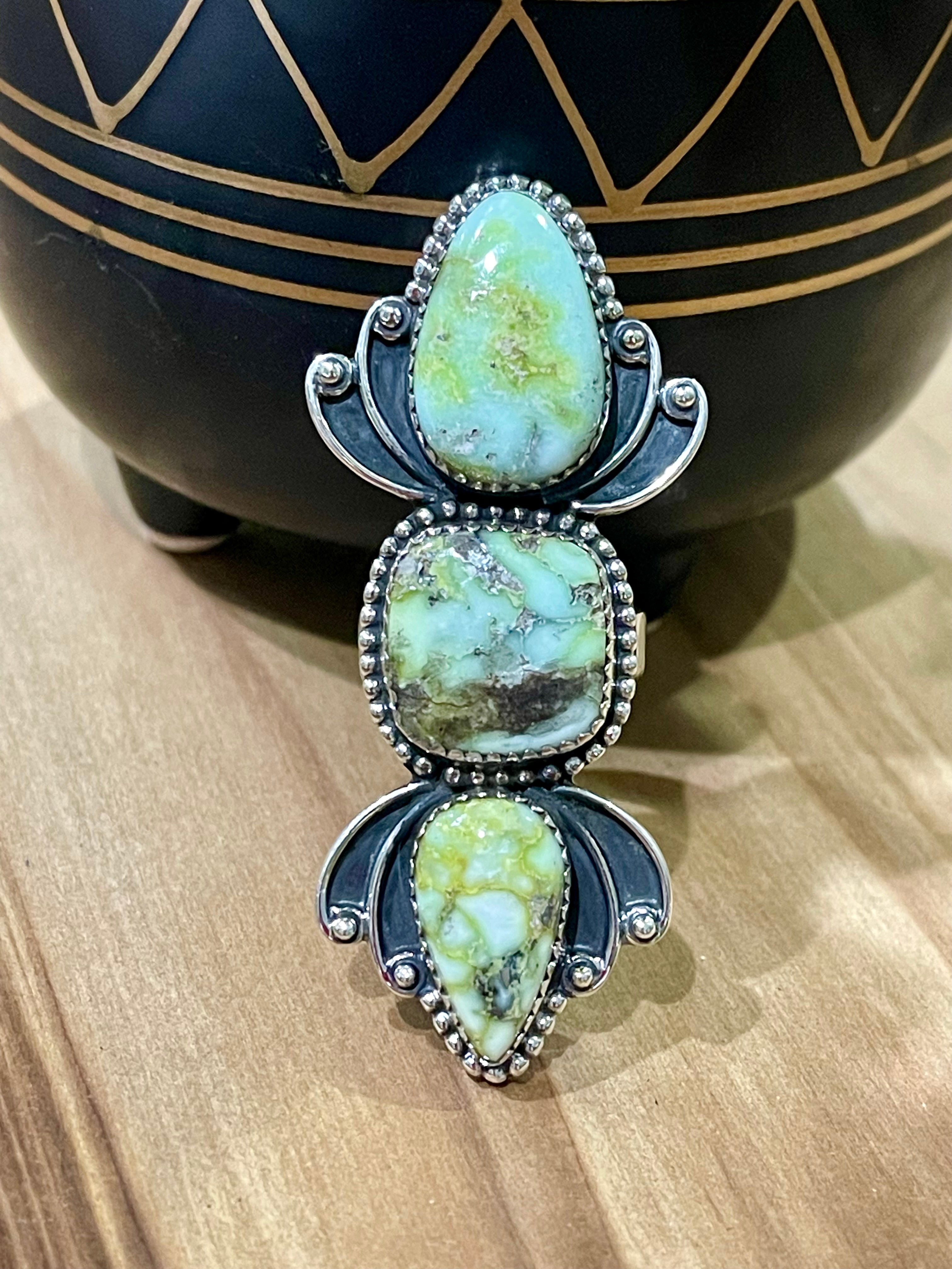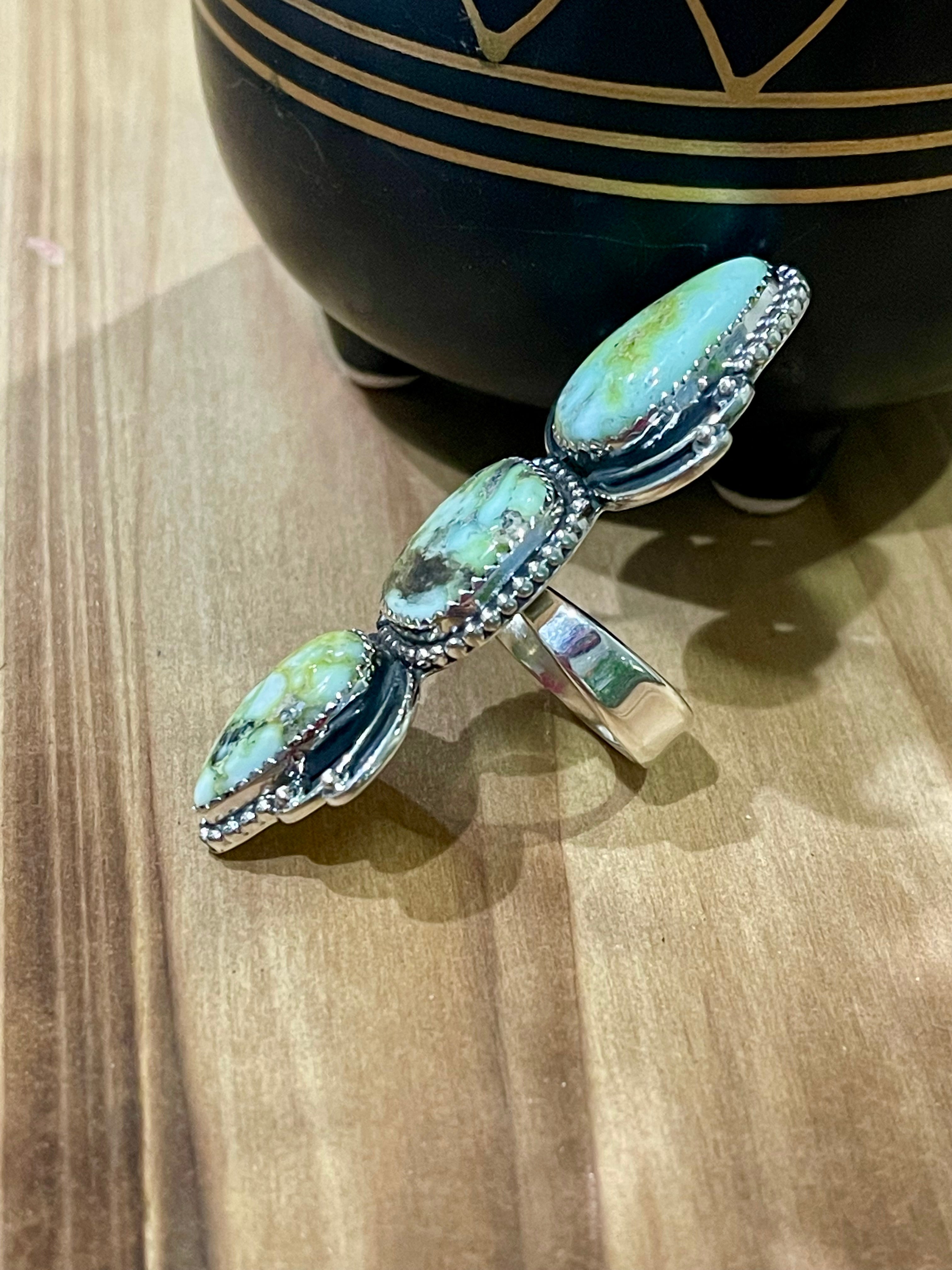 Southwest Handmade Palomino Variscite & Sterling Silver Adjustable 3 Stone Ring