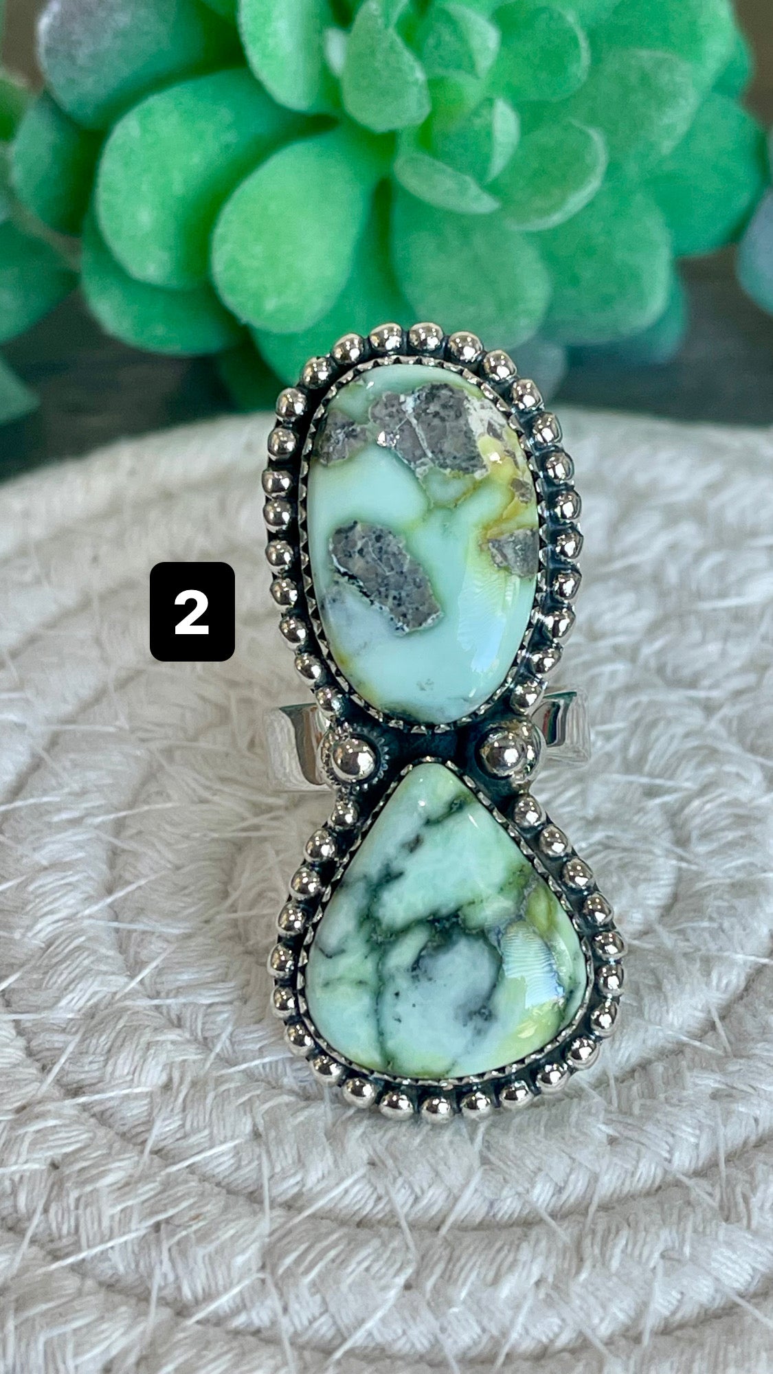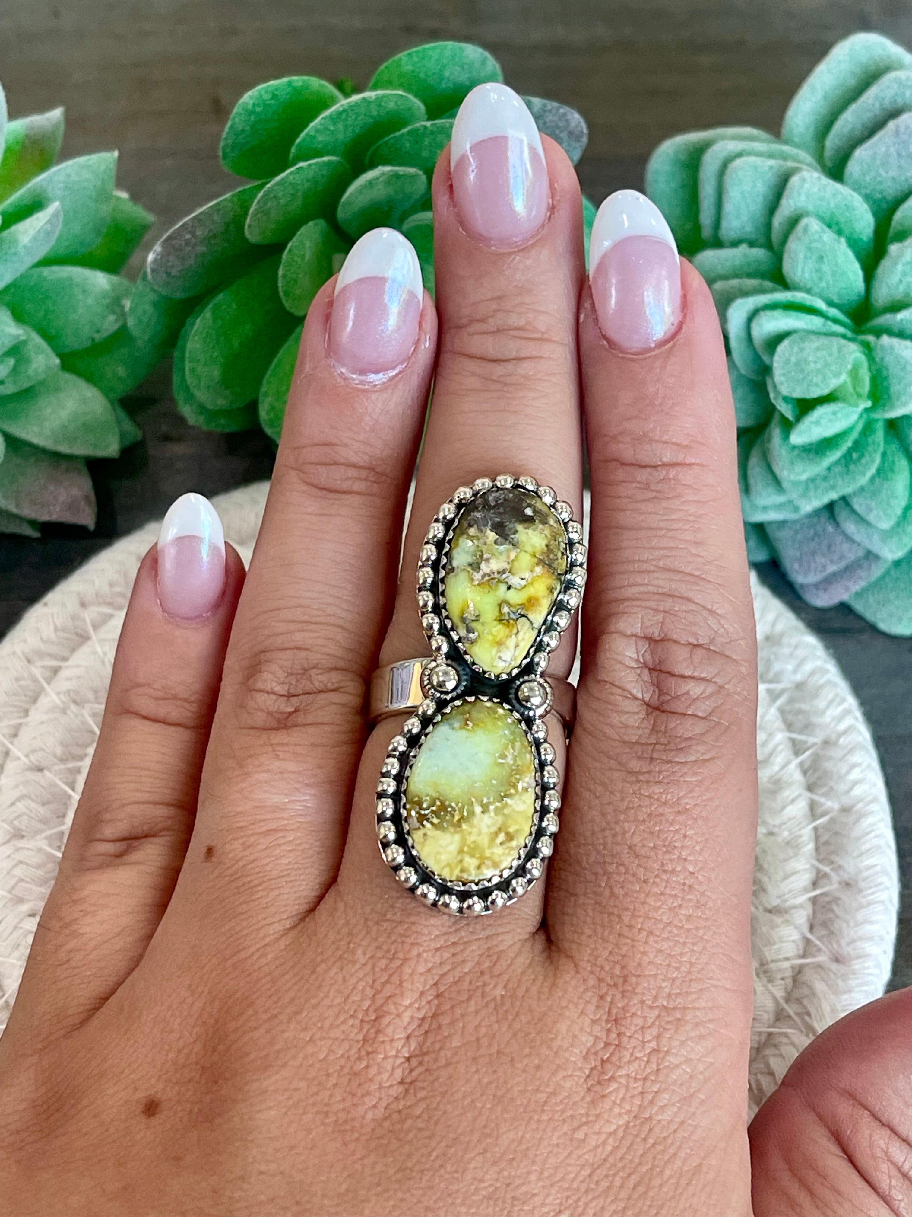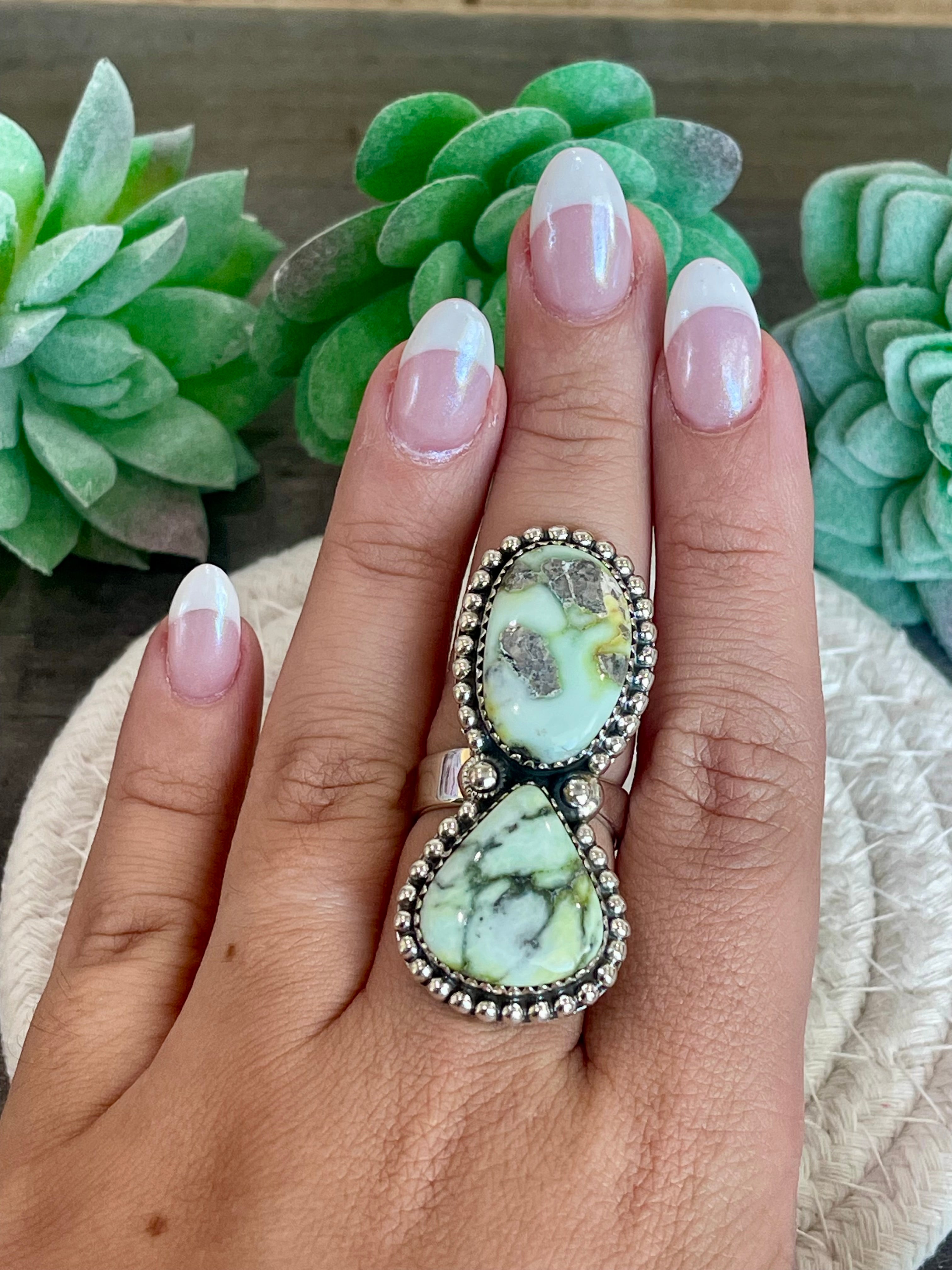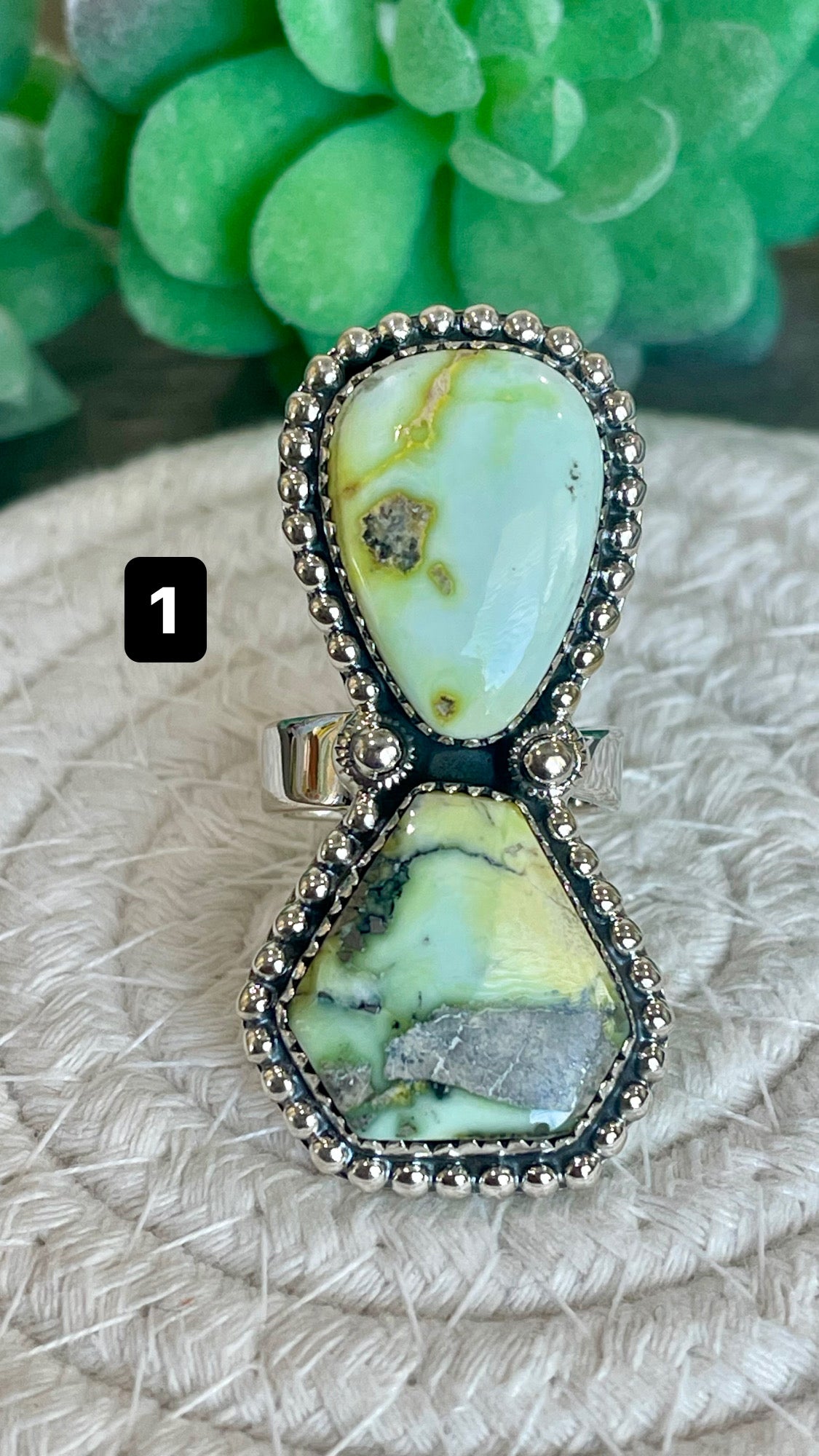 Southwest Handmade Palomino Variscite & Sterling Silver Adjustable Ring