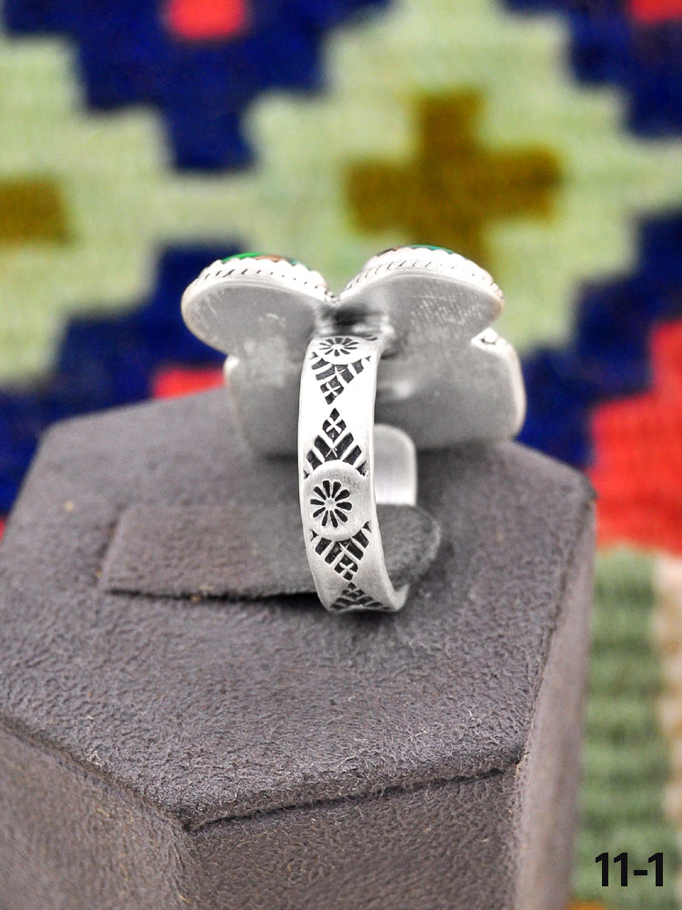 Southwest Handmade Peacock Dahlia & Sterling Silver Adjustable Ring