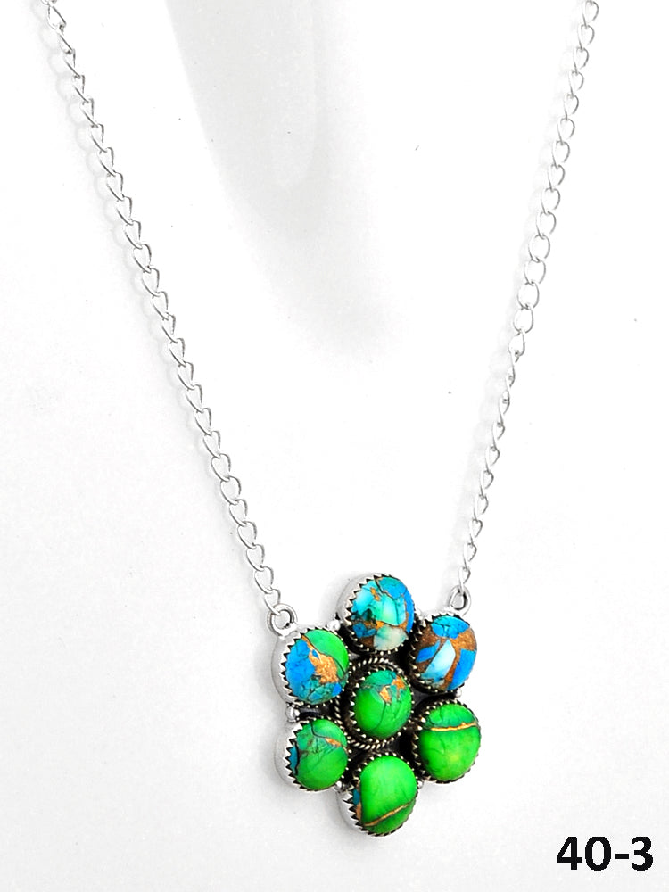 Southwest Handmade Peacock Dahlia & Sterling Silver Necklace