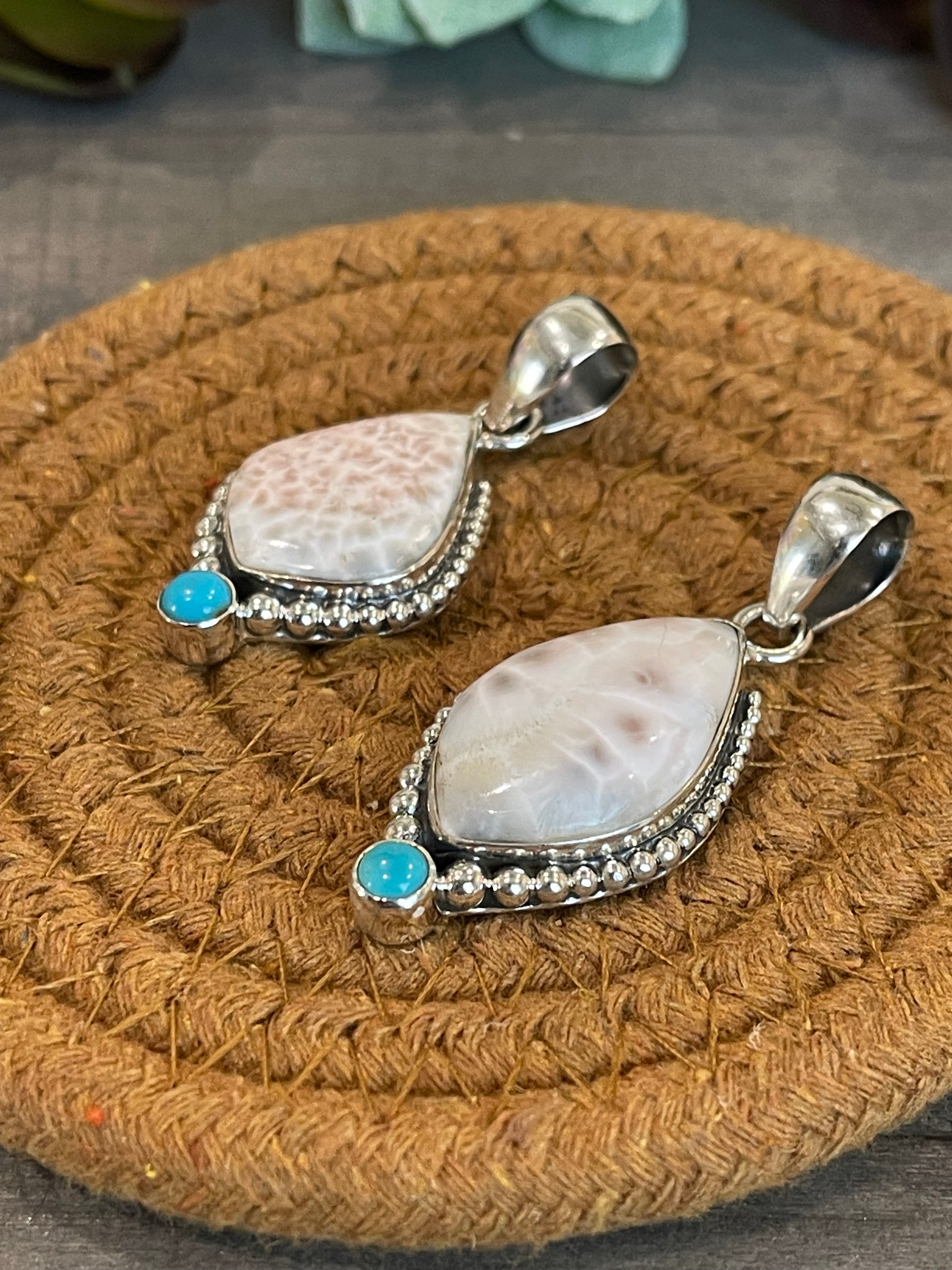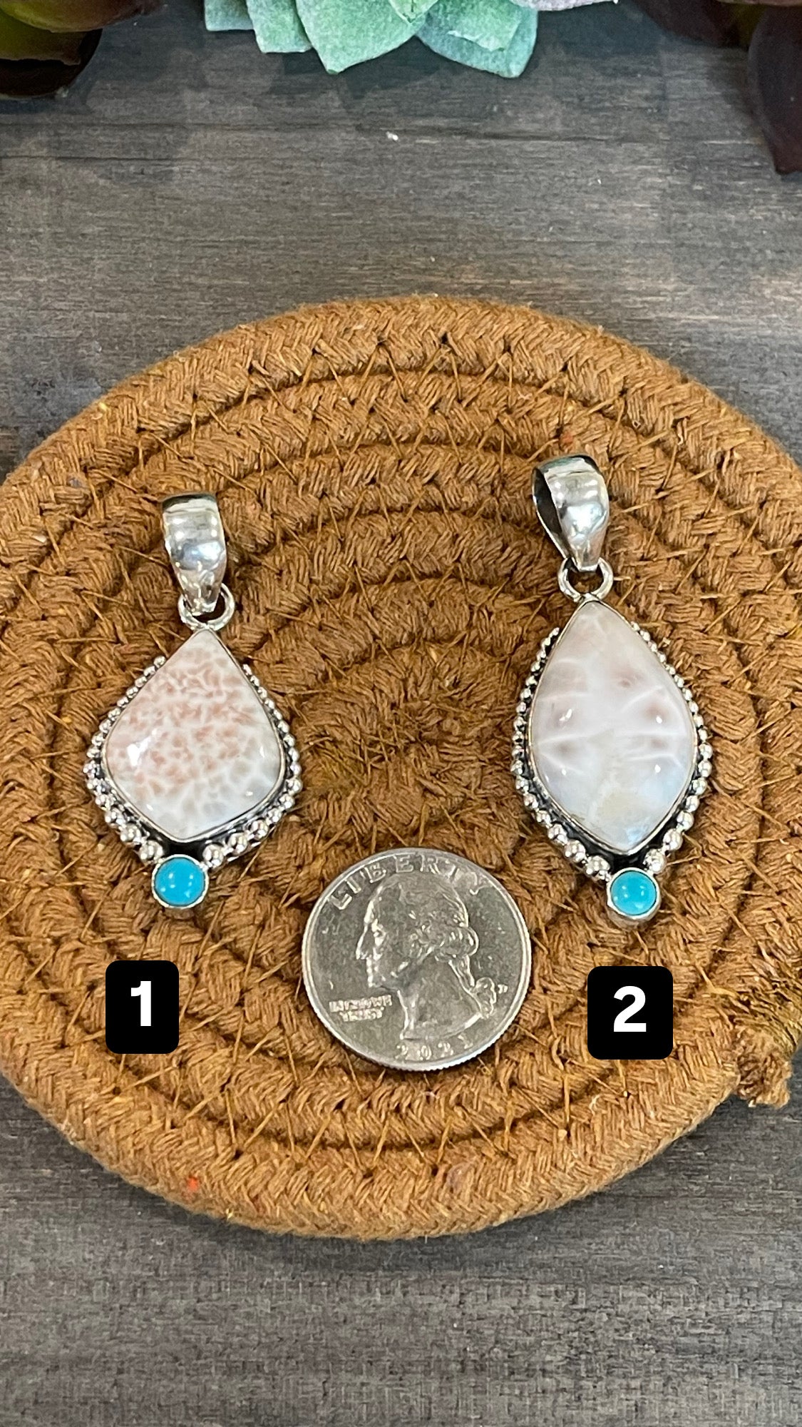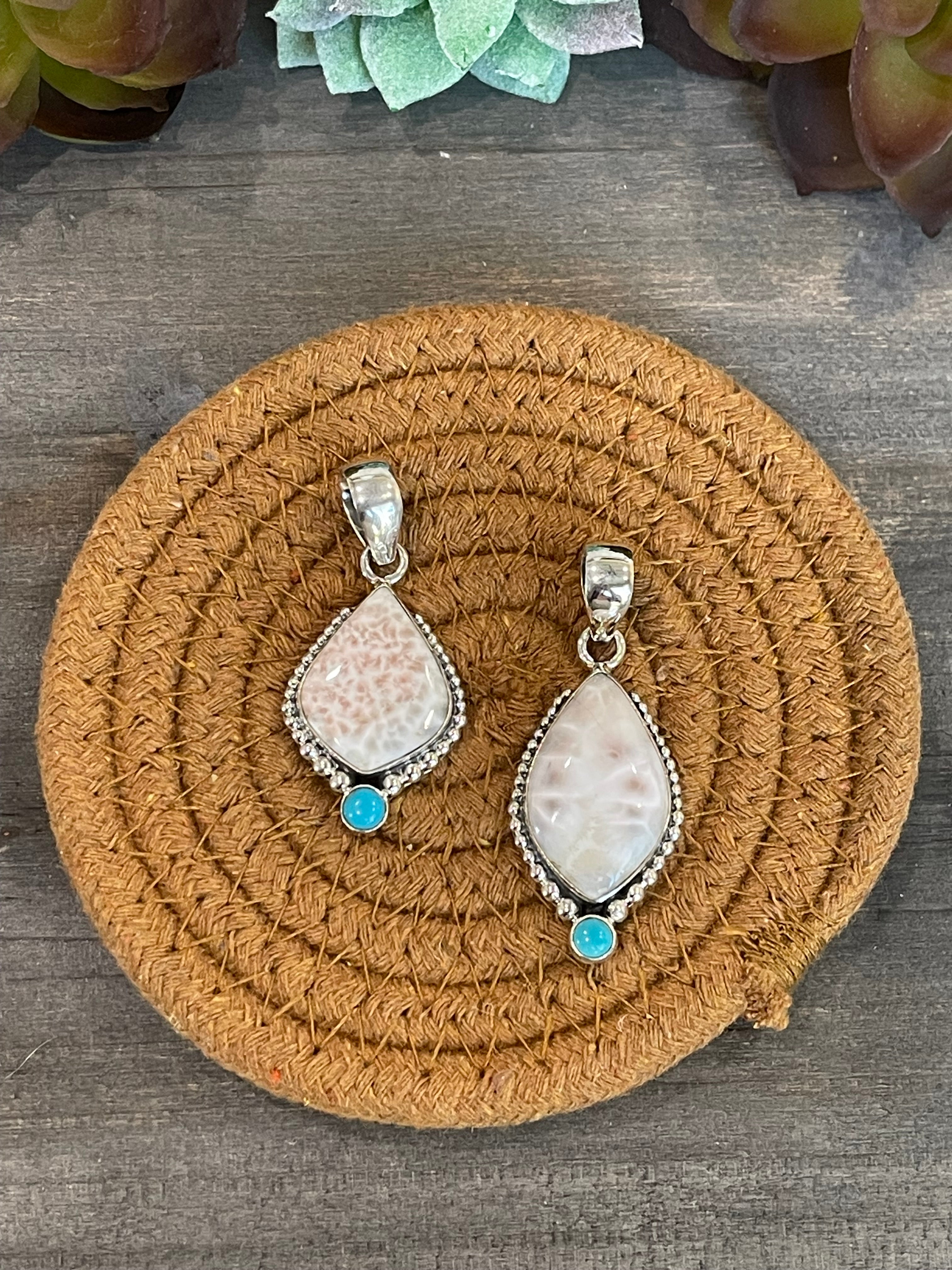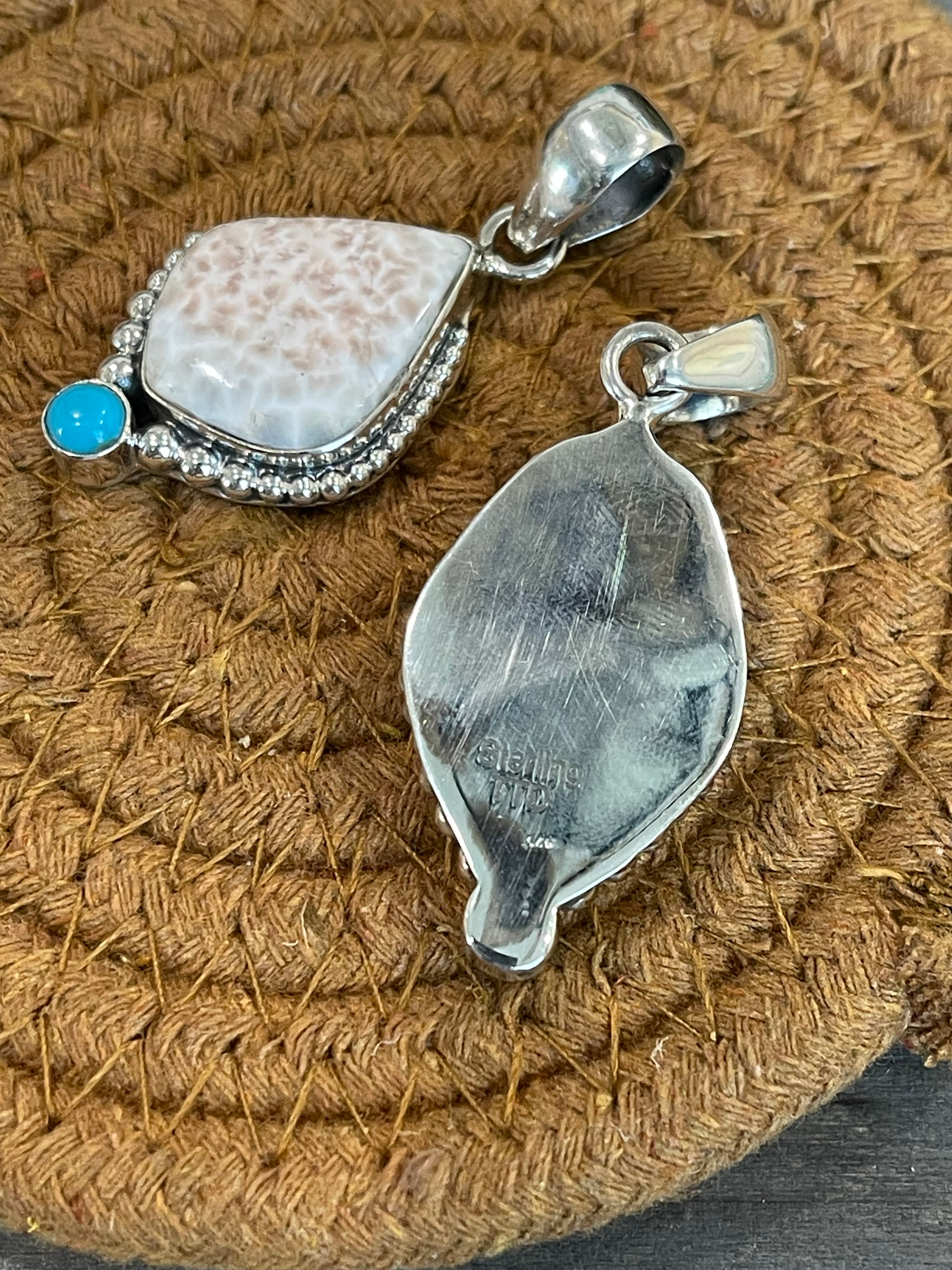 Southwest Handmade Pink Larimar And Kingman Turquoise & Sterling Silver Pendant