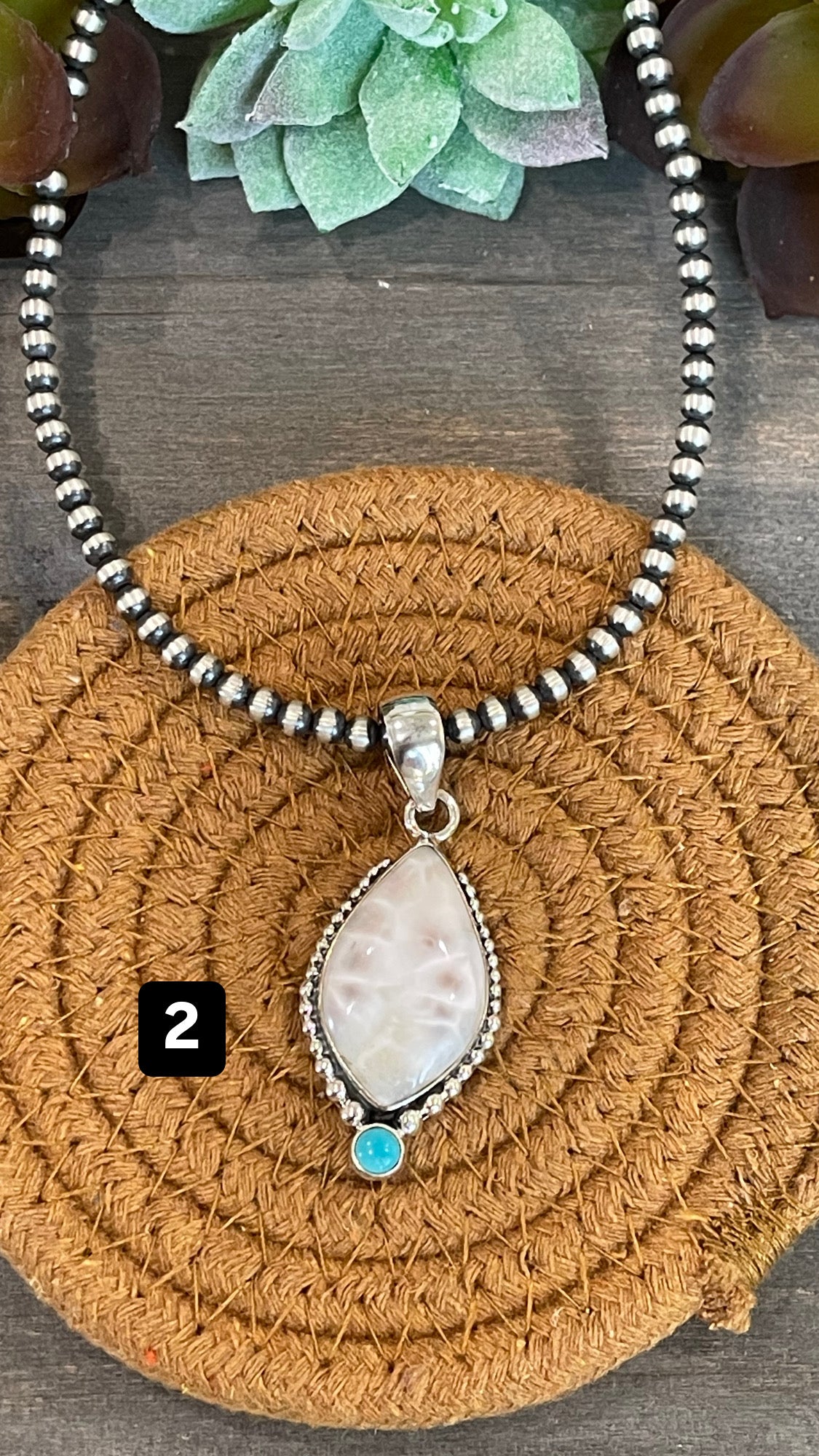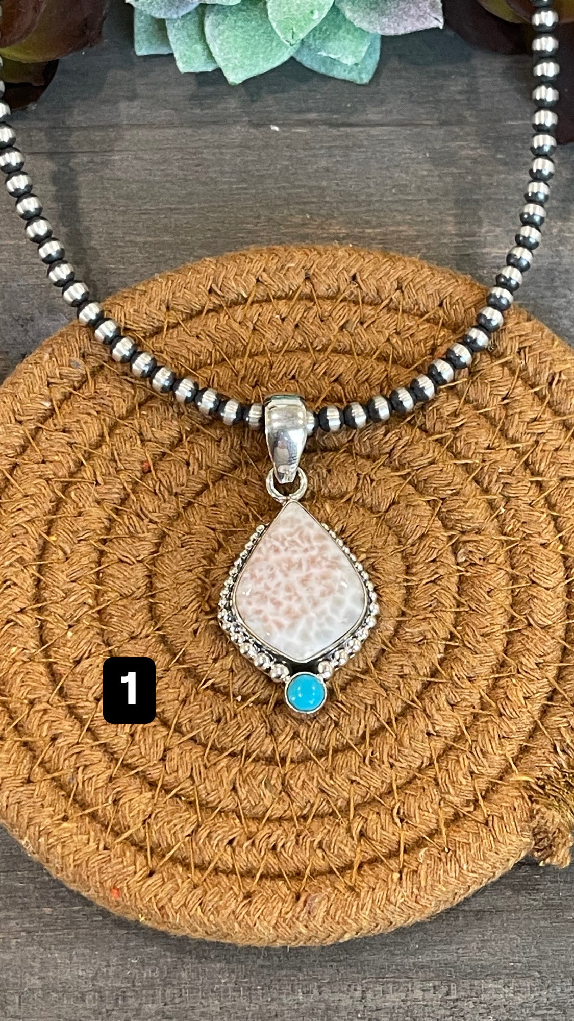 - MAIN STONE/S : Pink Larimar And Kingman Turquoise