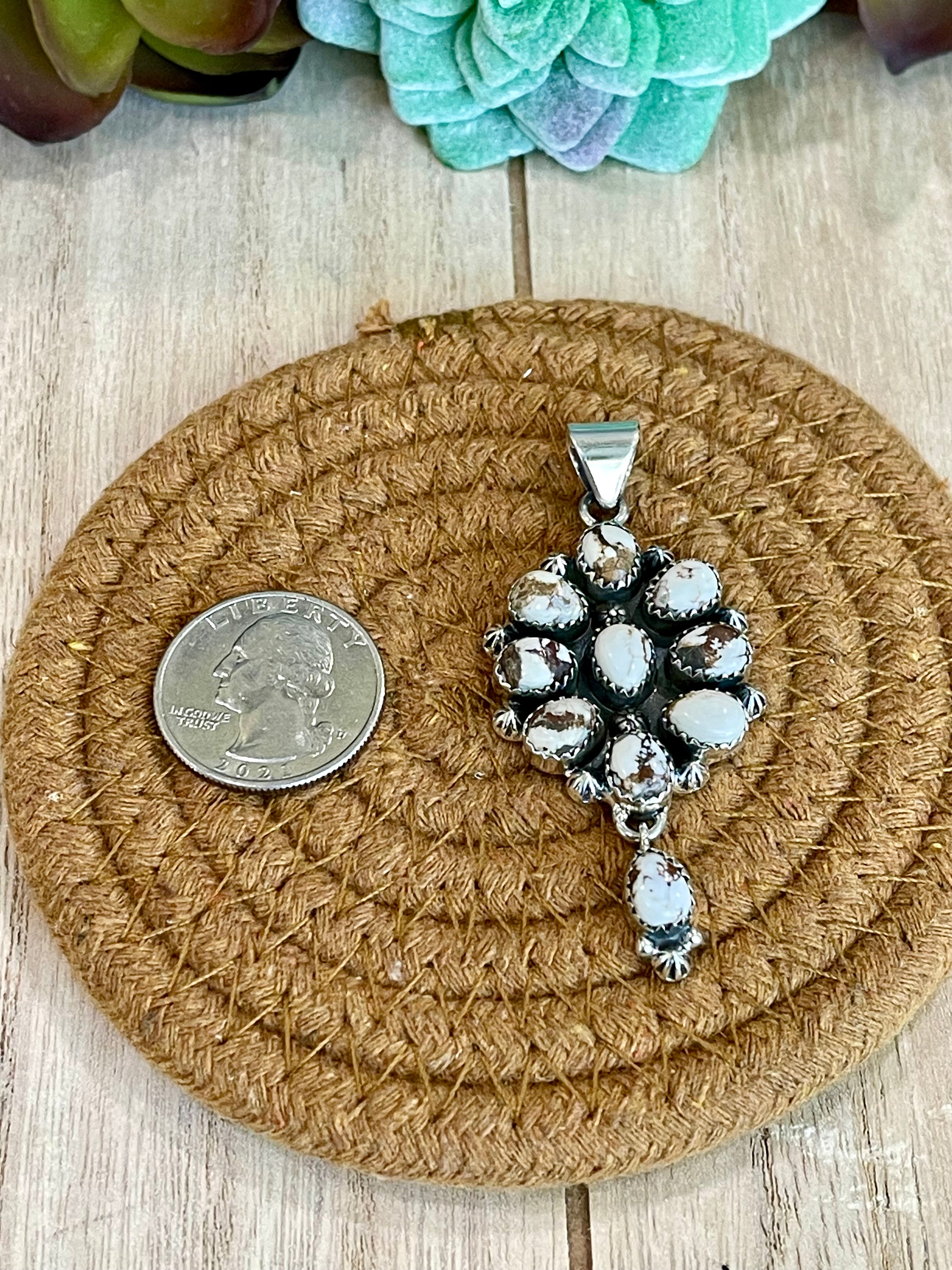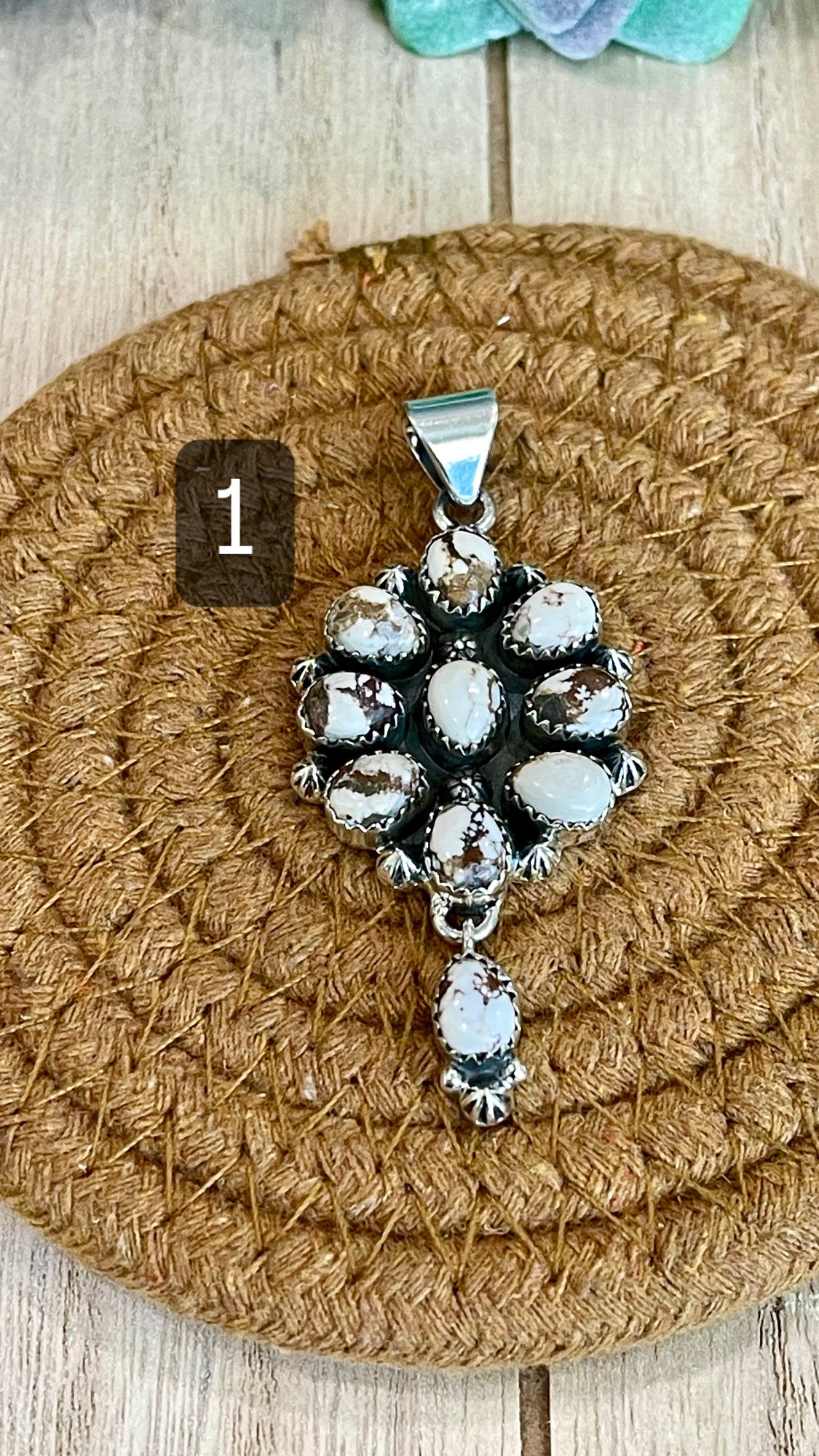 Southwest Handmade Wild Horse & Sterling Silver Cluster Dangle Pendant