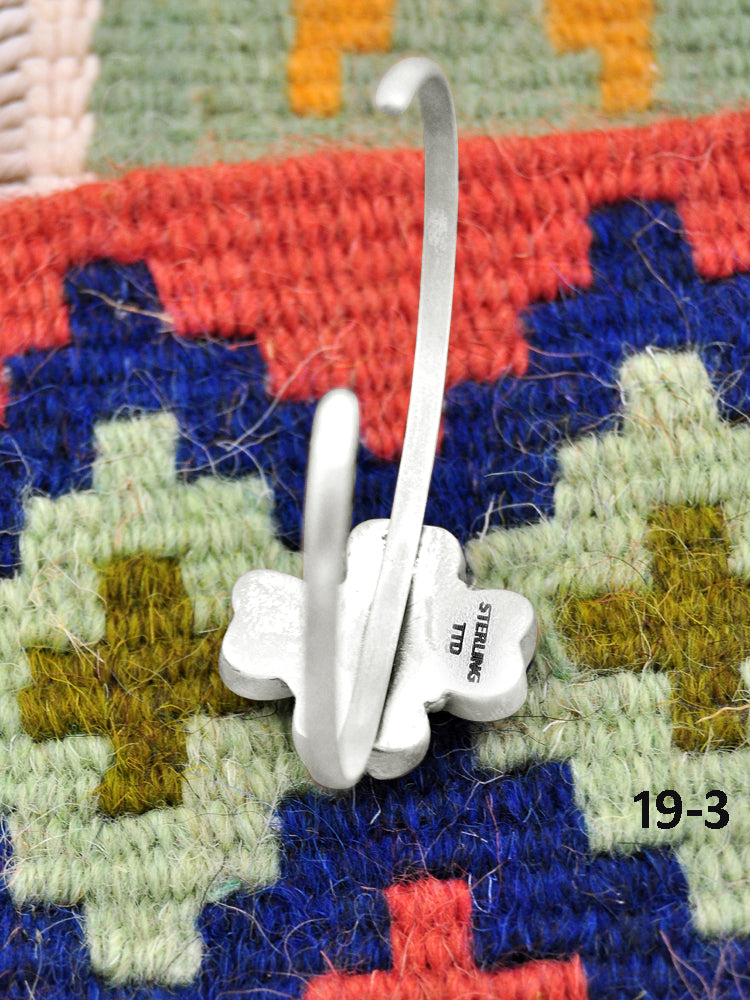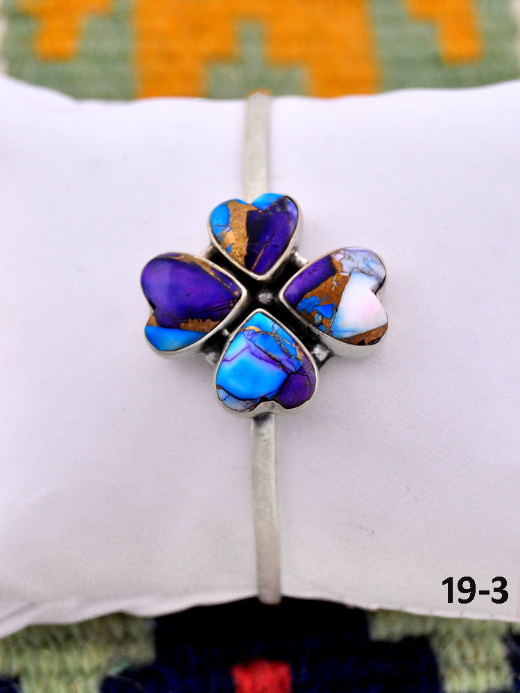 Southwest Handmade Purple Dahlia & Sterling Silver Bangle Bracelet. It measures 1 1/8 inches wide with an inside circumference of 5 7/8 inches and a gap of 7/8 of an inch. Signed by artist and stamped sterling silver.