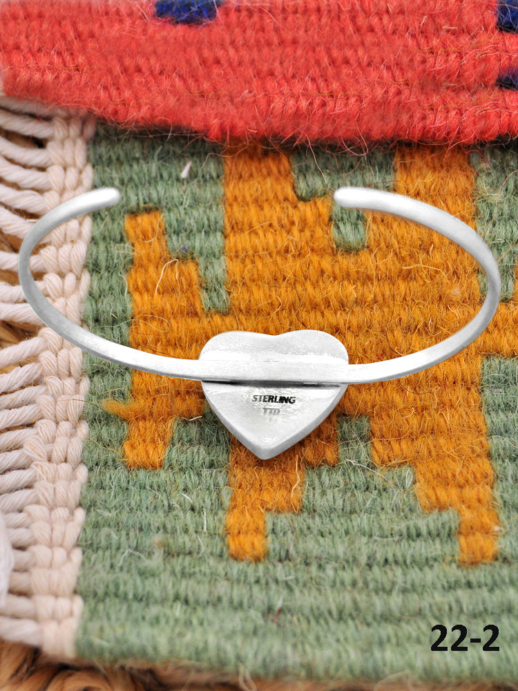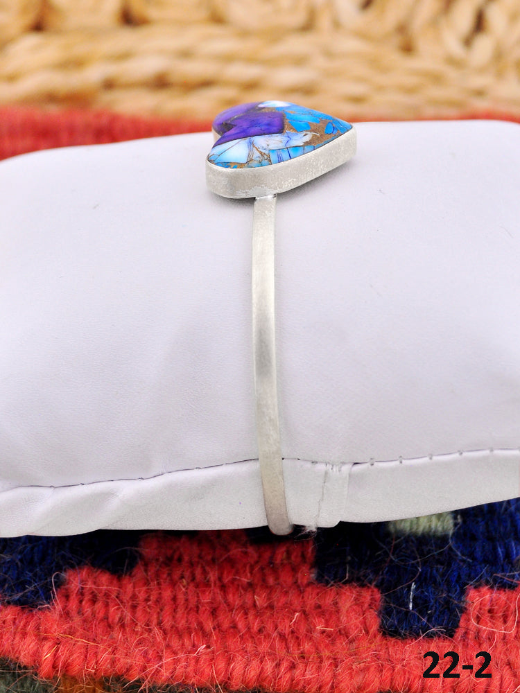 Southwest Handmade Purple Dahlia & Sterling Silver Bangle Bracelet. It measures 7/8 of an inch wide with an inside circumference of 6 inches and a gap of 1 inch. Signed by the artist and stamped sterling silver.