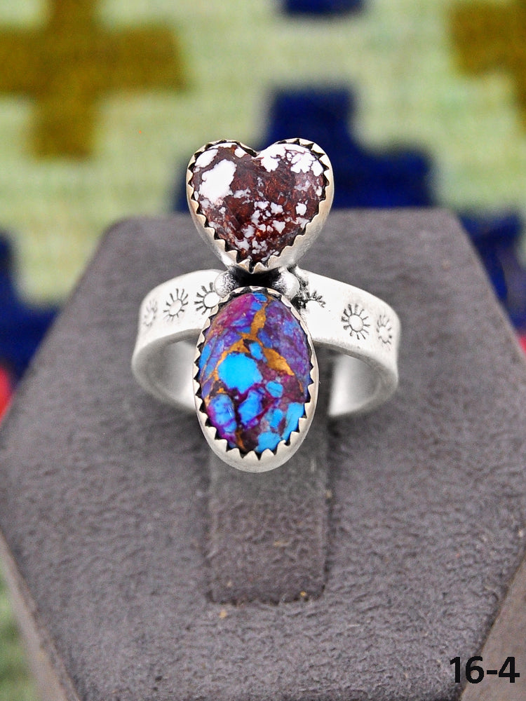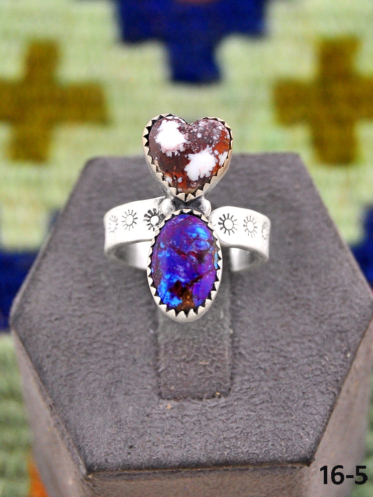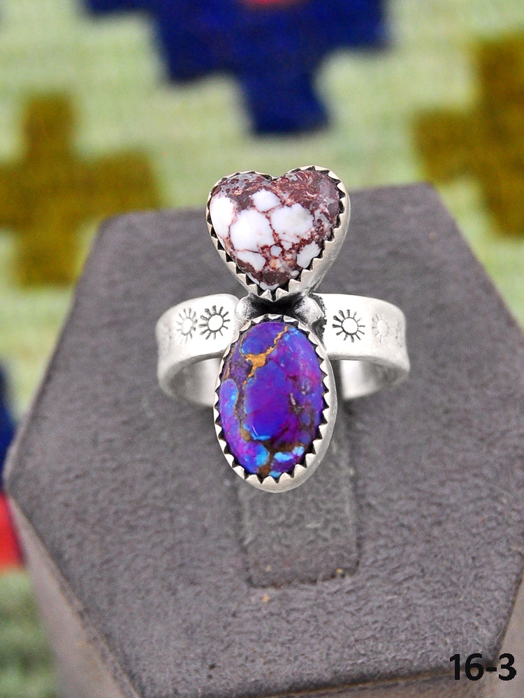 Beautiful rings! Southwest Handmade Purple Dahlia with Wild Horse Magnesite & Sterling Silver Adjustable Ring. Signed by the artist and stamped sterling silver.