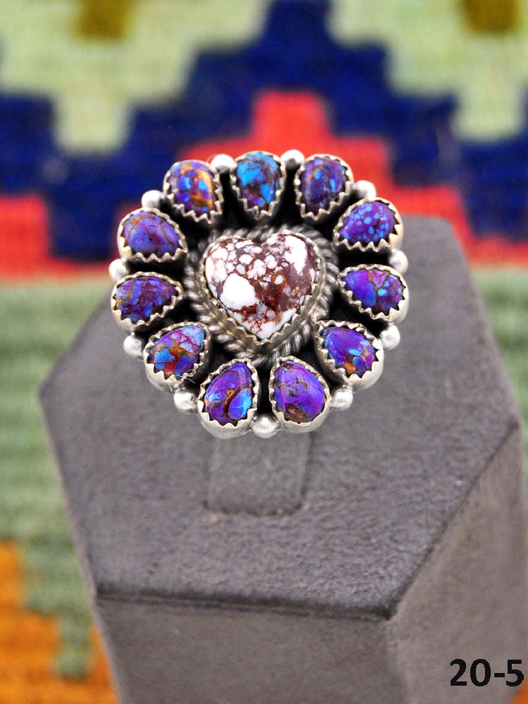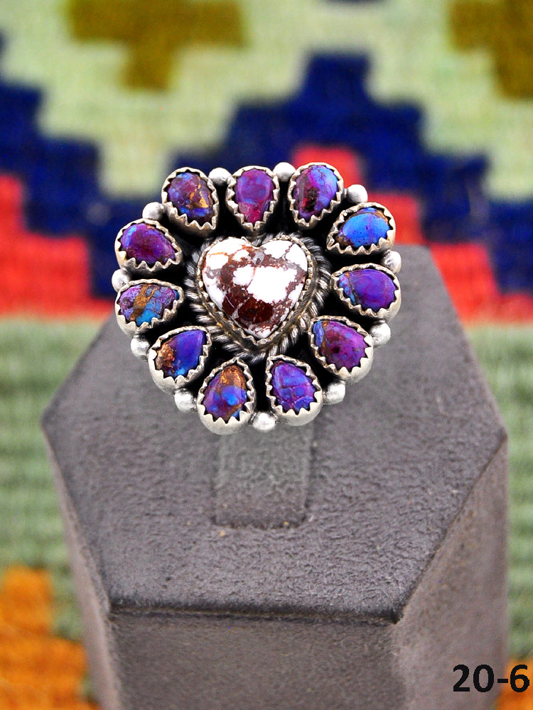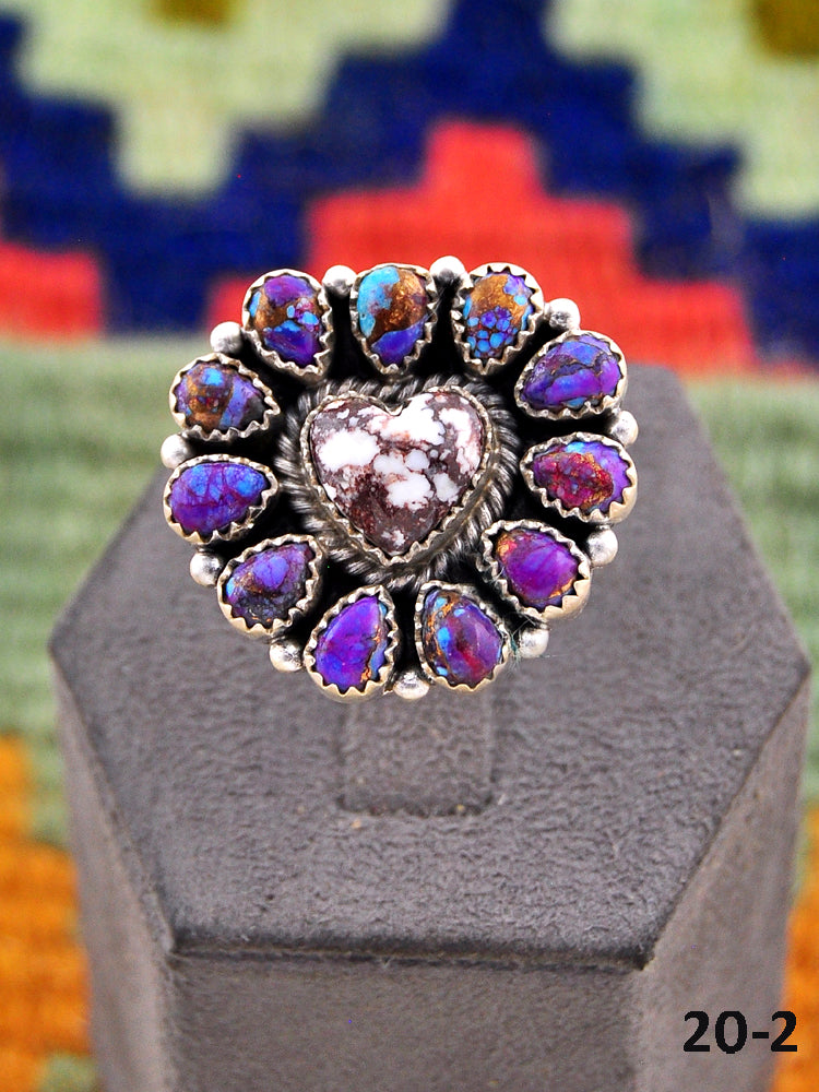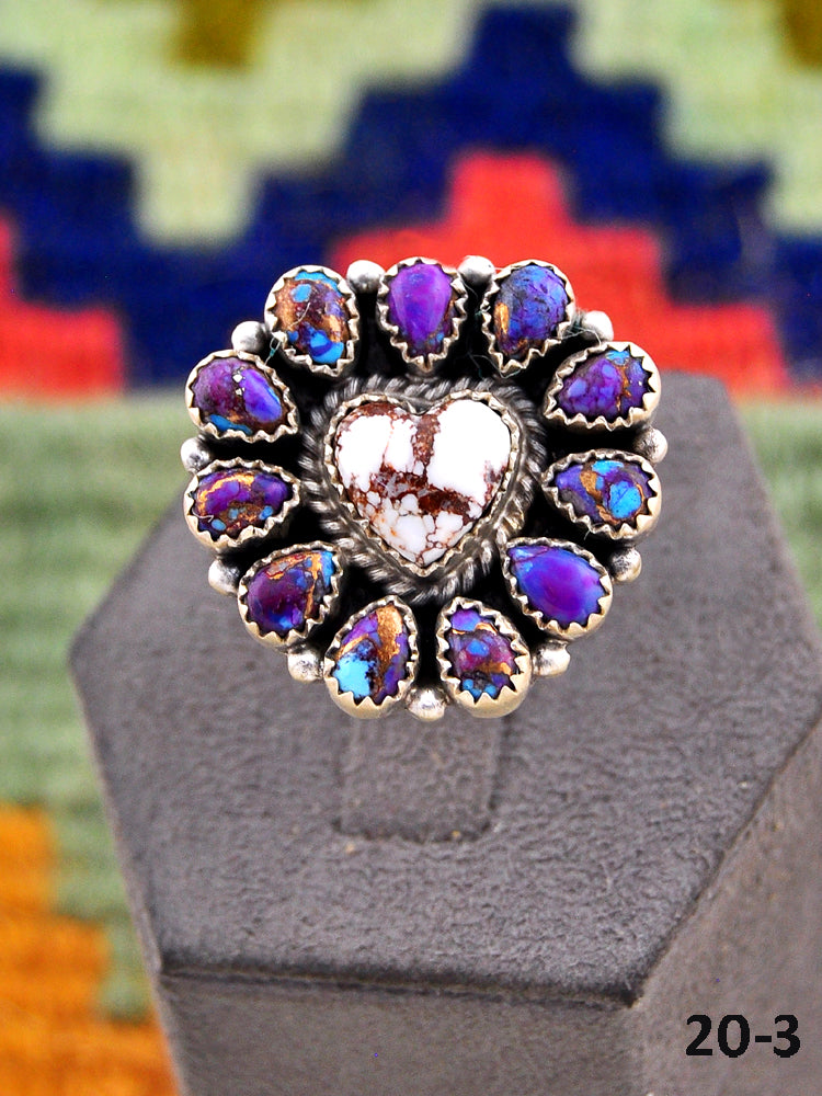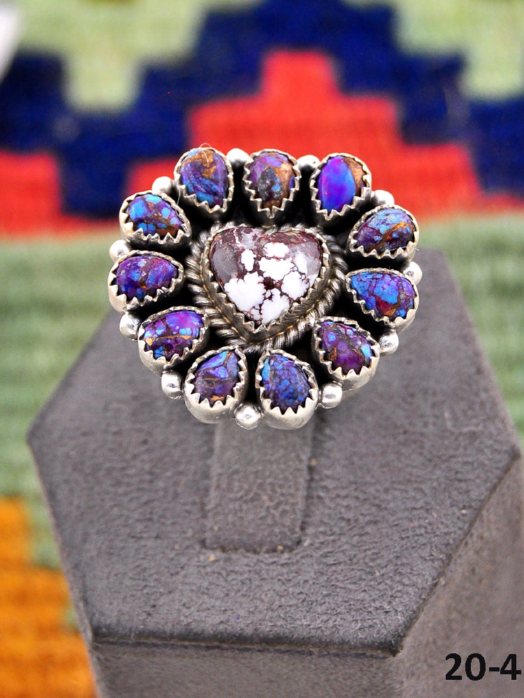 Beautiful rings! Southwest Handmade Purple Dahlia with Wild Horse Magnesite & Sterling Silver Adjustable Ring. Signed by the artist and stamped sterling silver.