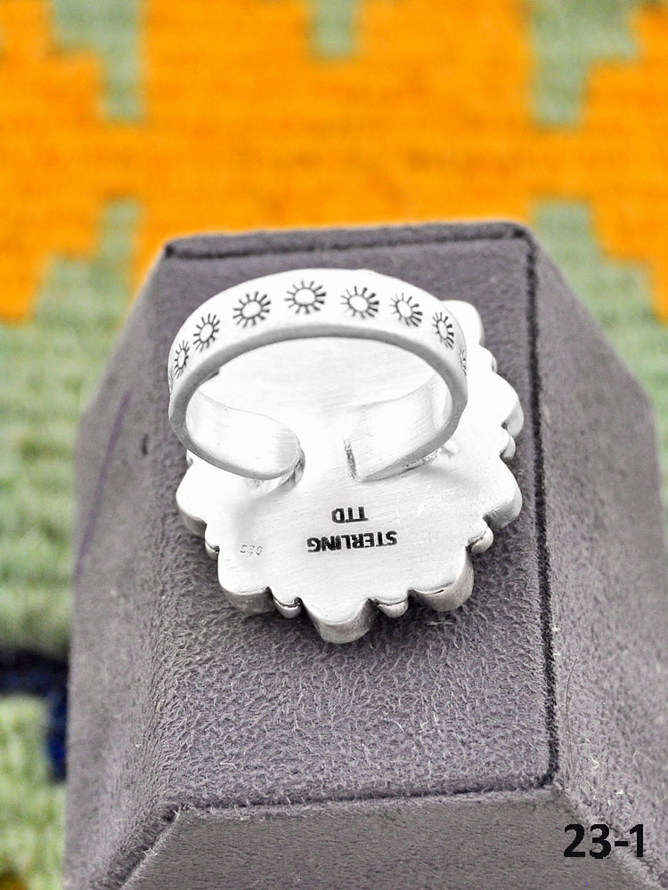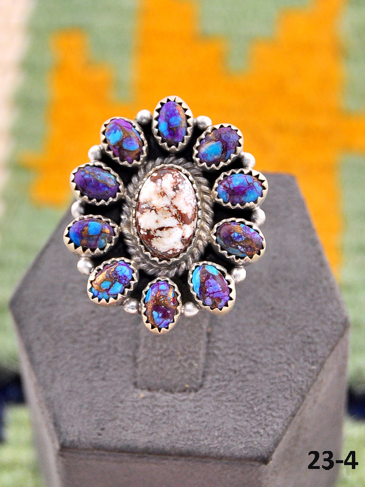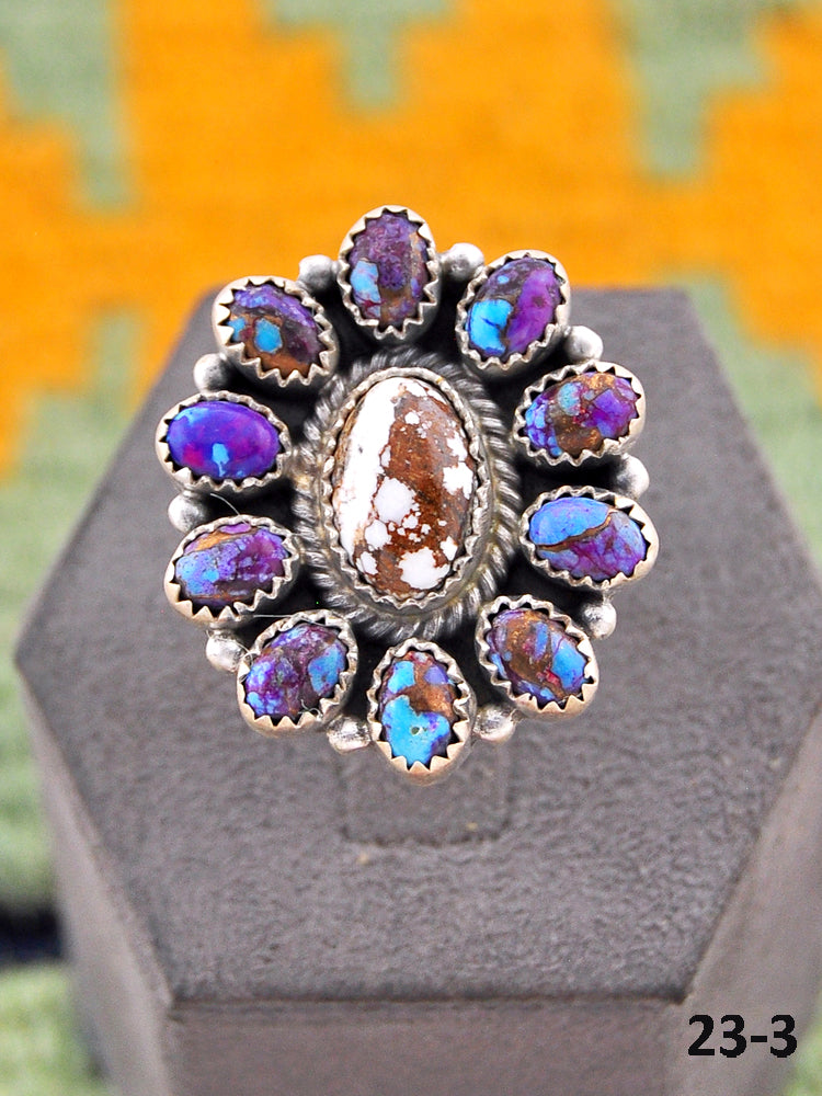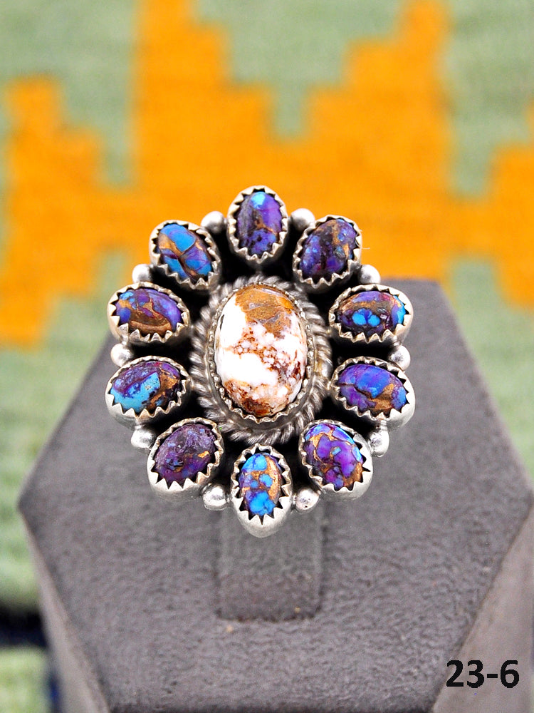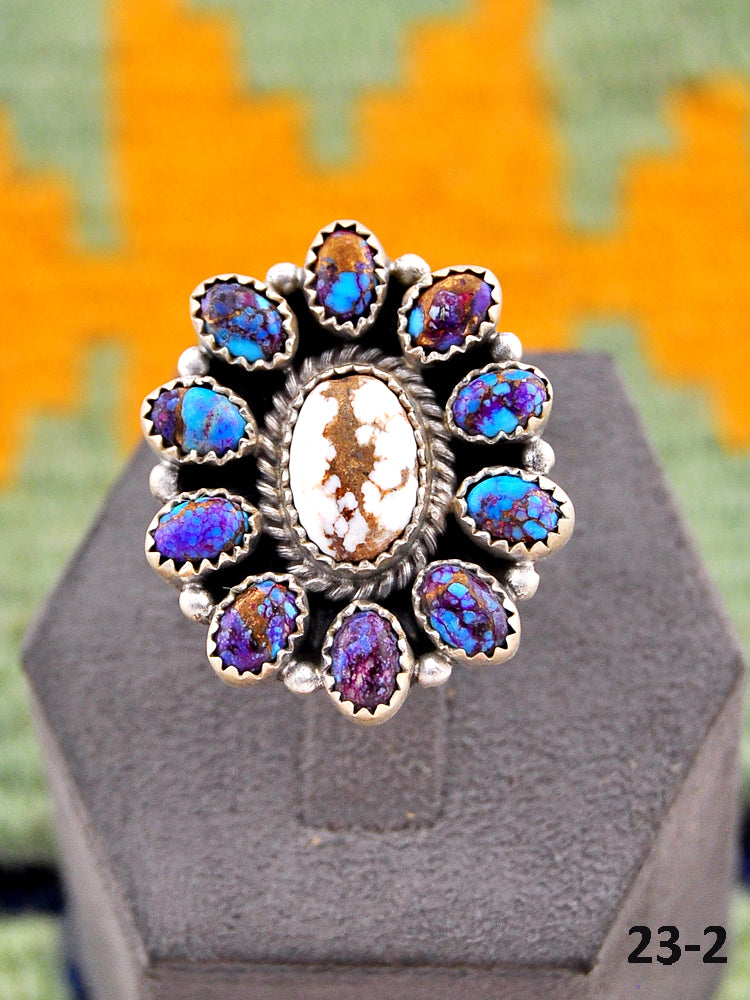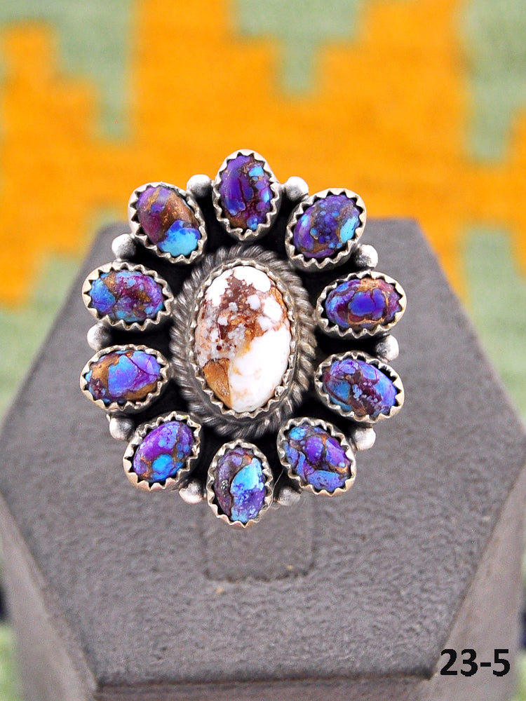 Beautiful rings! Southwest Handmade Purple Dahlia with Wild Horse Magnesite & Sterling Silver Adjustable Ring. Signed by the artist and stamped sterling silver.