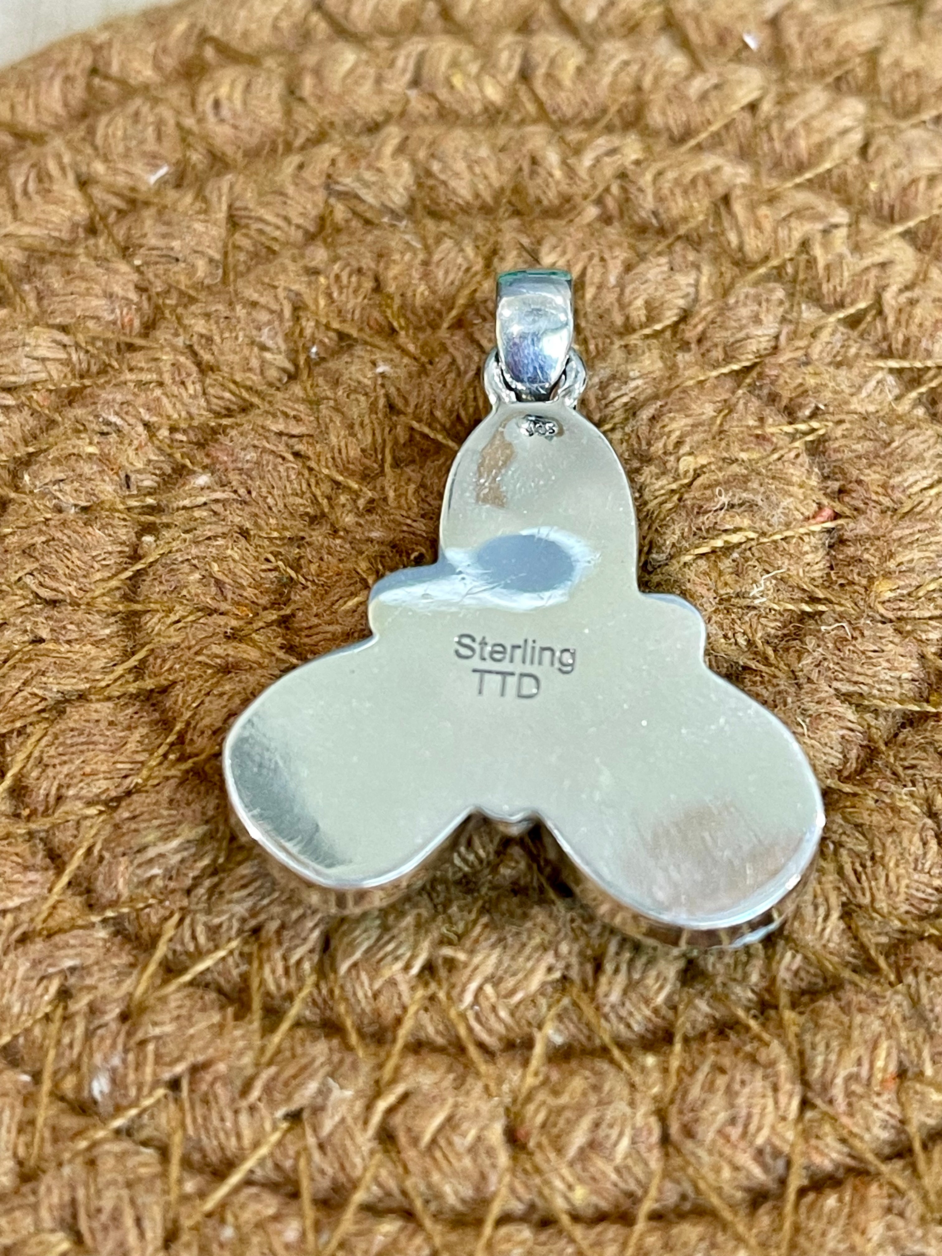 Beautiful craftsmanship. Southwest Handmade Sonoran Mountain Turquoise & Sterling Silver 3 Stone Pendant. It measures 1 1/2 inches long and 1 1/8 inches wide. Pendant Only. Signed by the artist and stamped sterling silver.