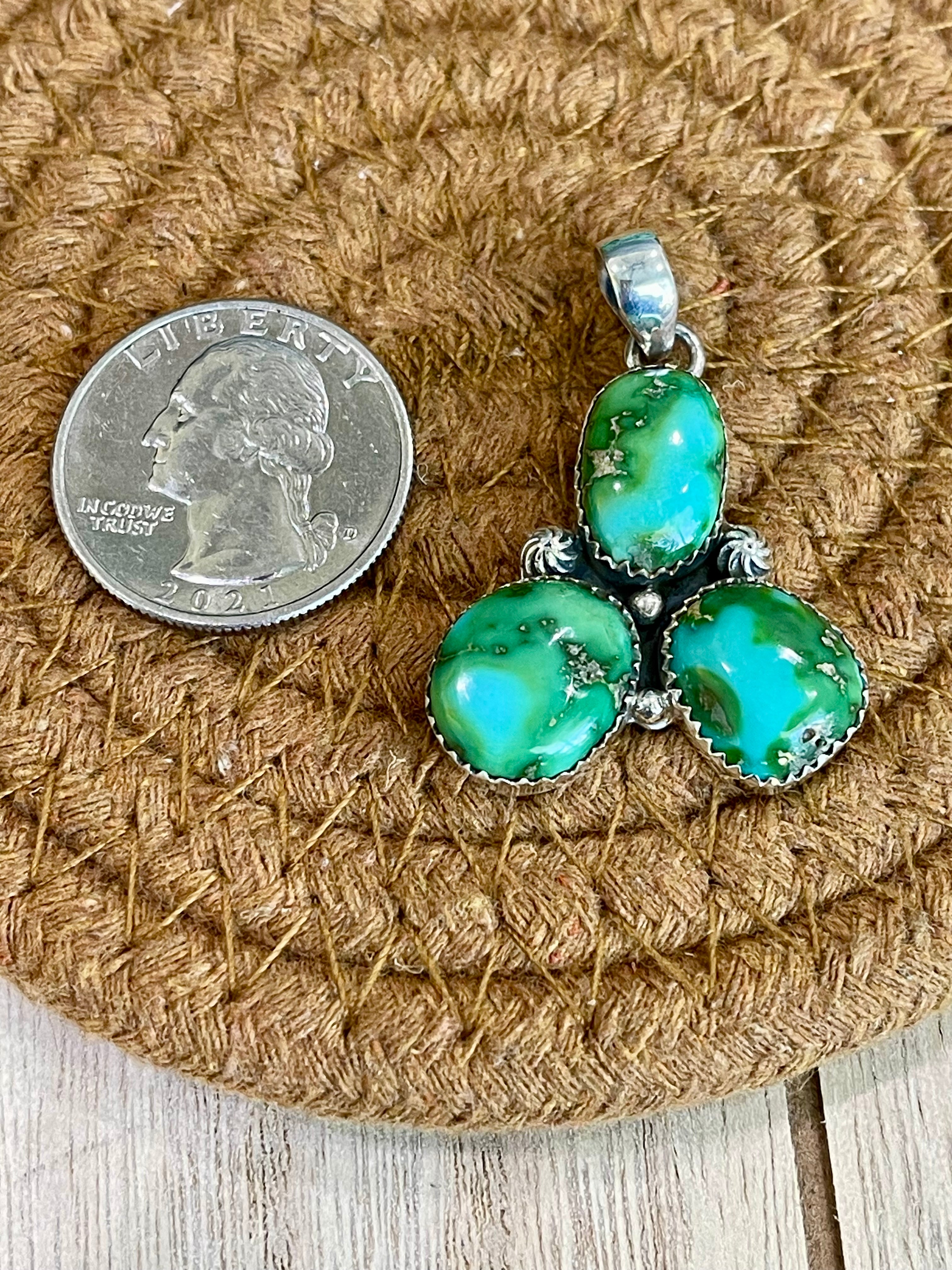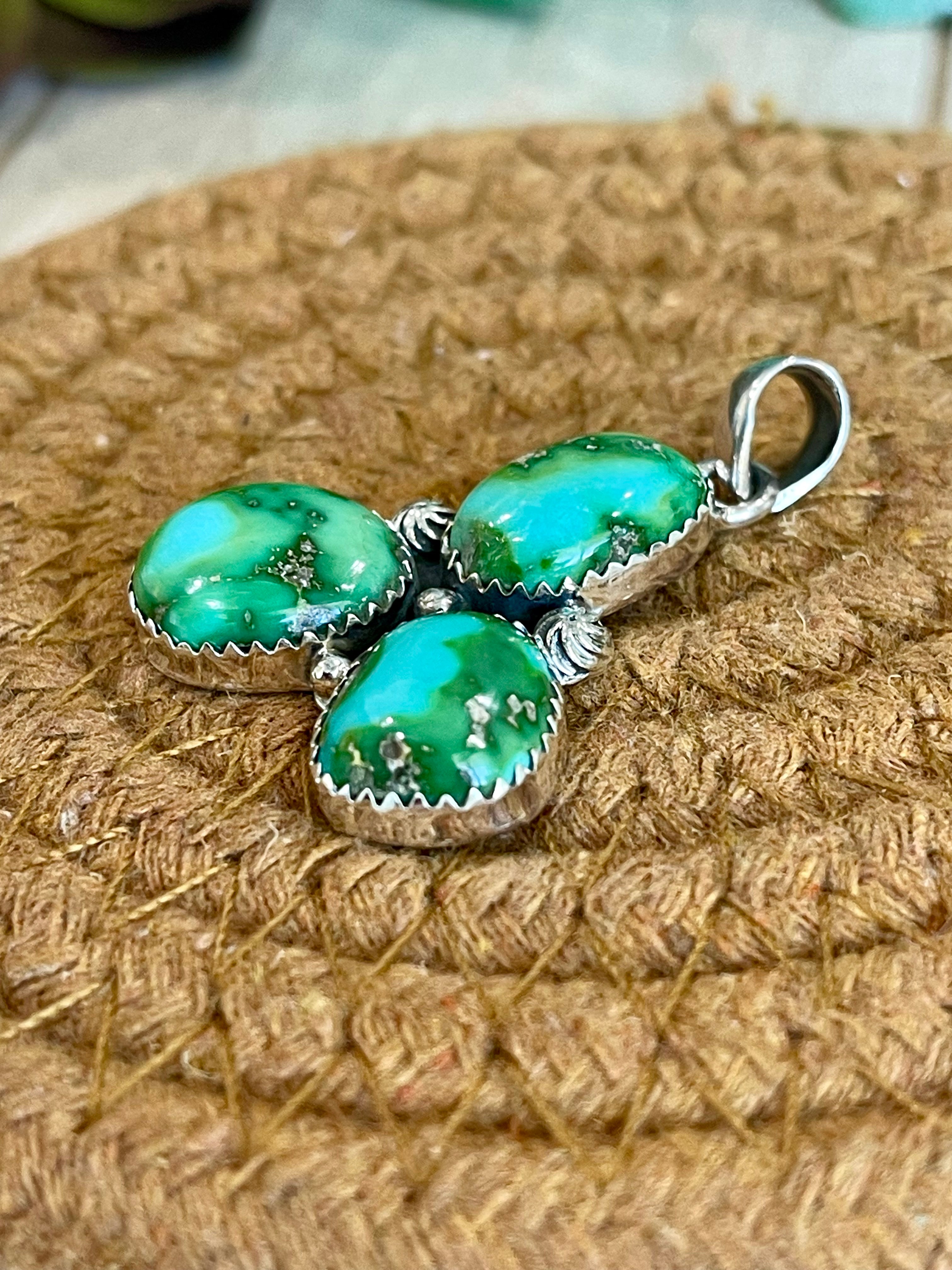 Southwest Handmade Sonoran Mountain Turquoise & Sterling Silver 3 Stone Pendant