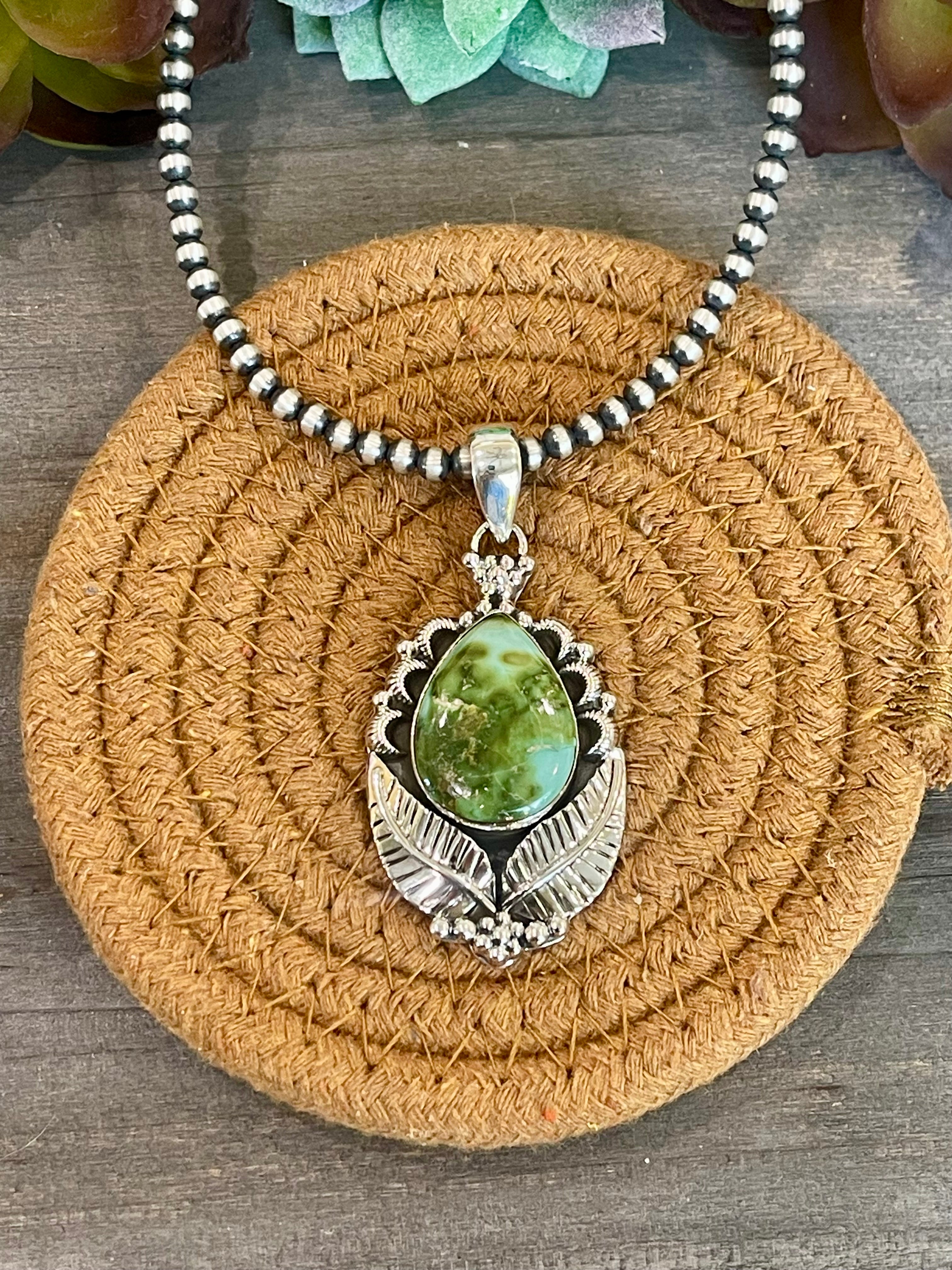 Southwest Handmade Sonoran Mountain Turquoise & Sterling Silver Pendant