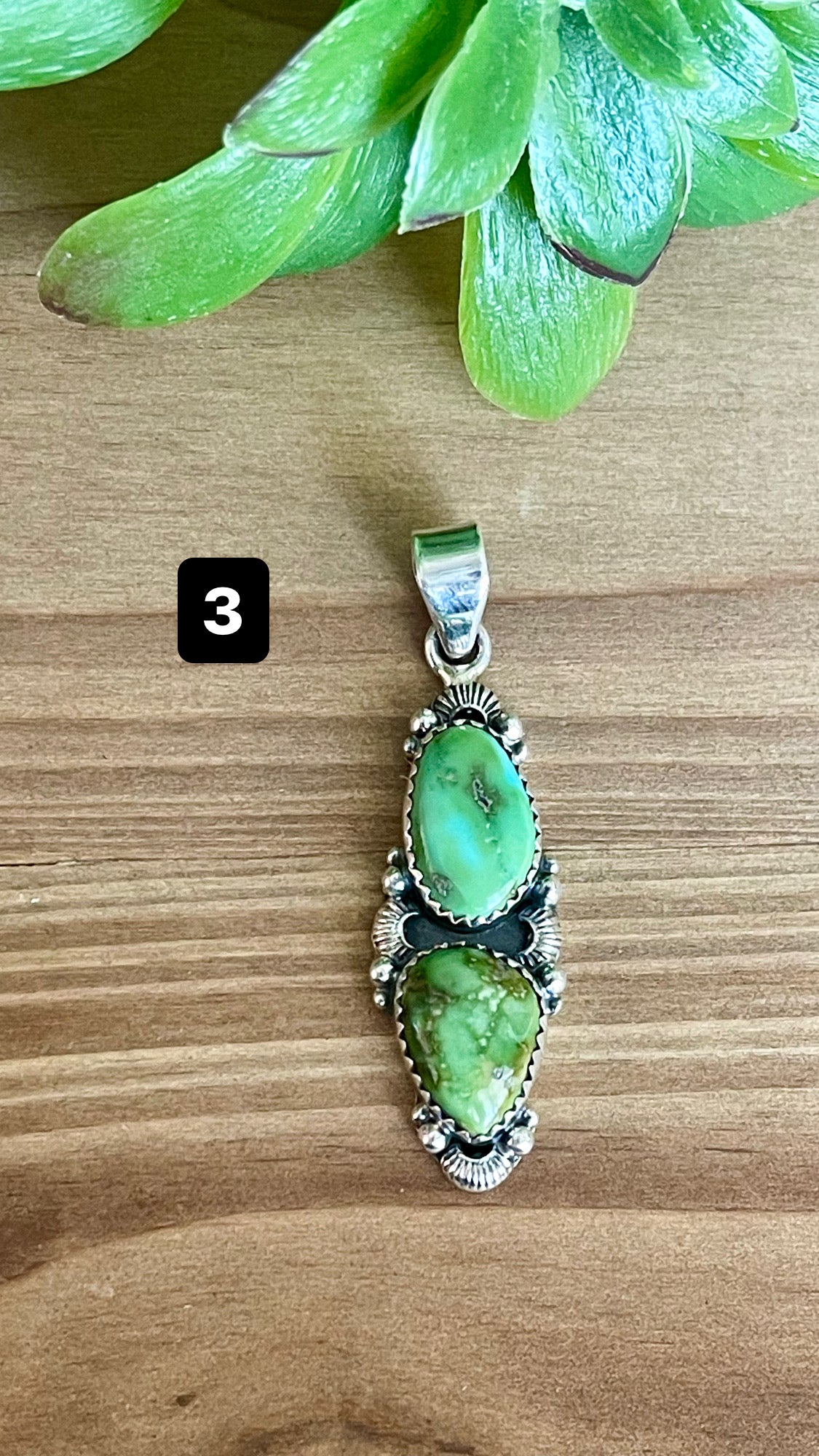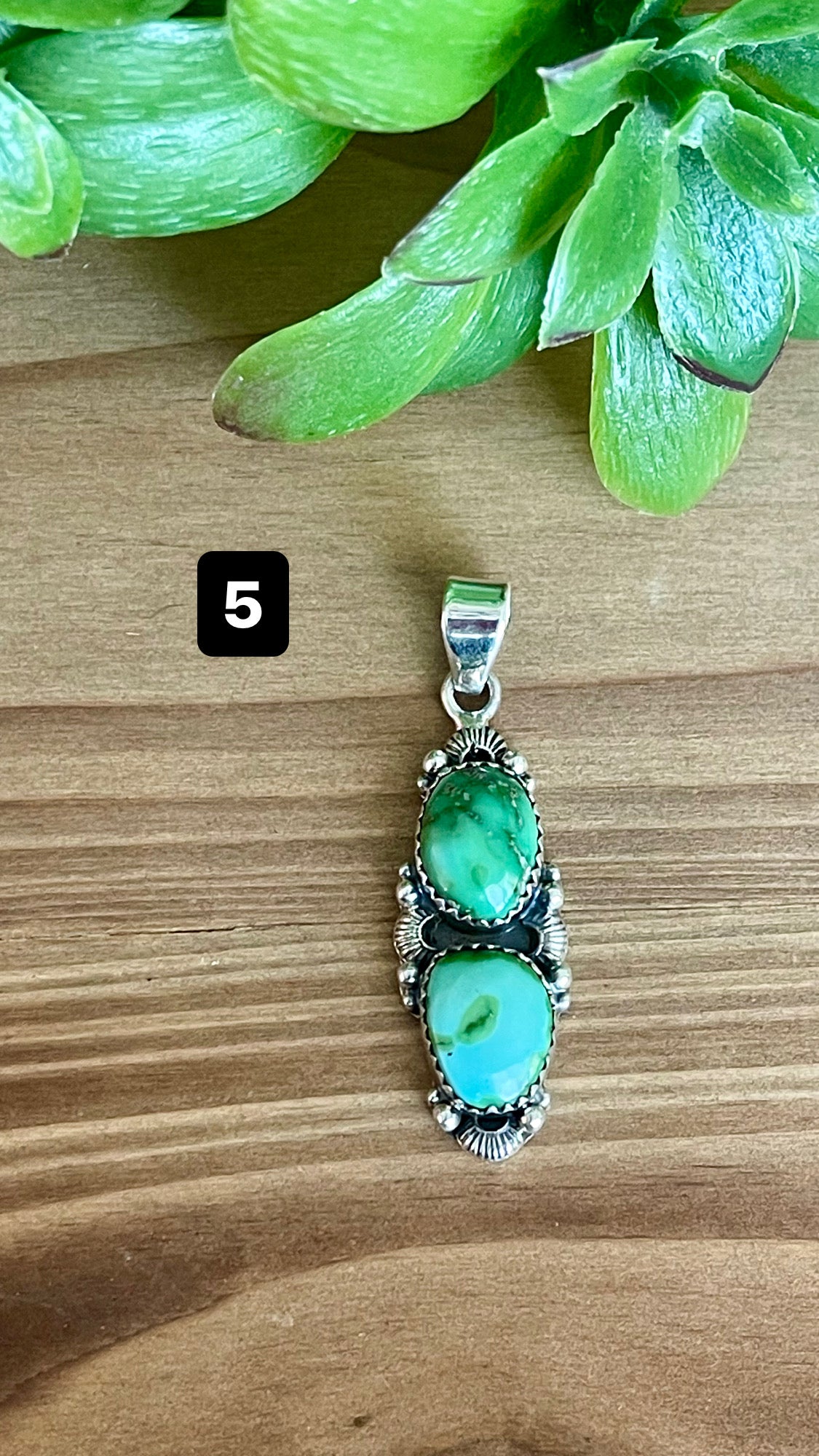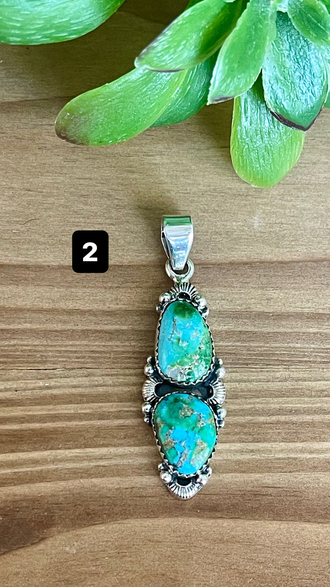 Beautiful craftsmanship. Southwest Handmade Sonoran Mountain Turquoise & Sterling Silver Cluster Pendant. It measures 1 3/4 inches long and 1/2 of an inch wide. Pendant Only. Signed by the artist and stamped sterling silver.