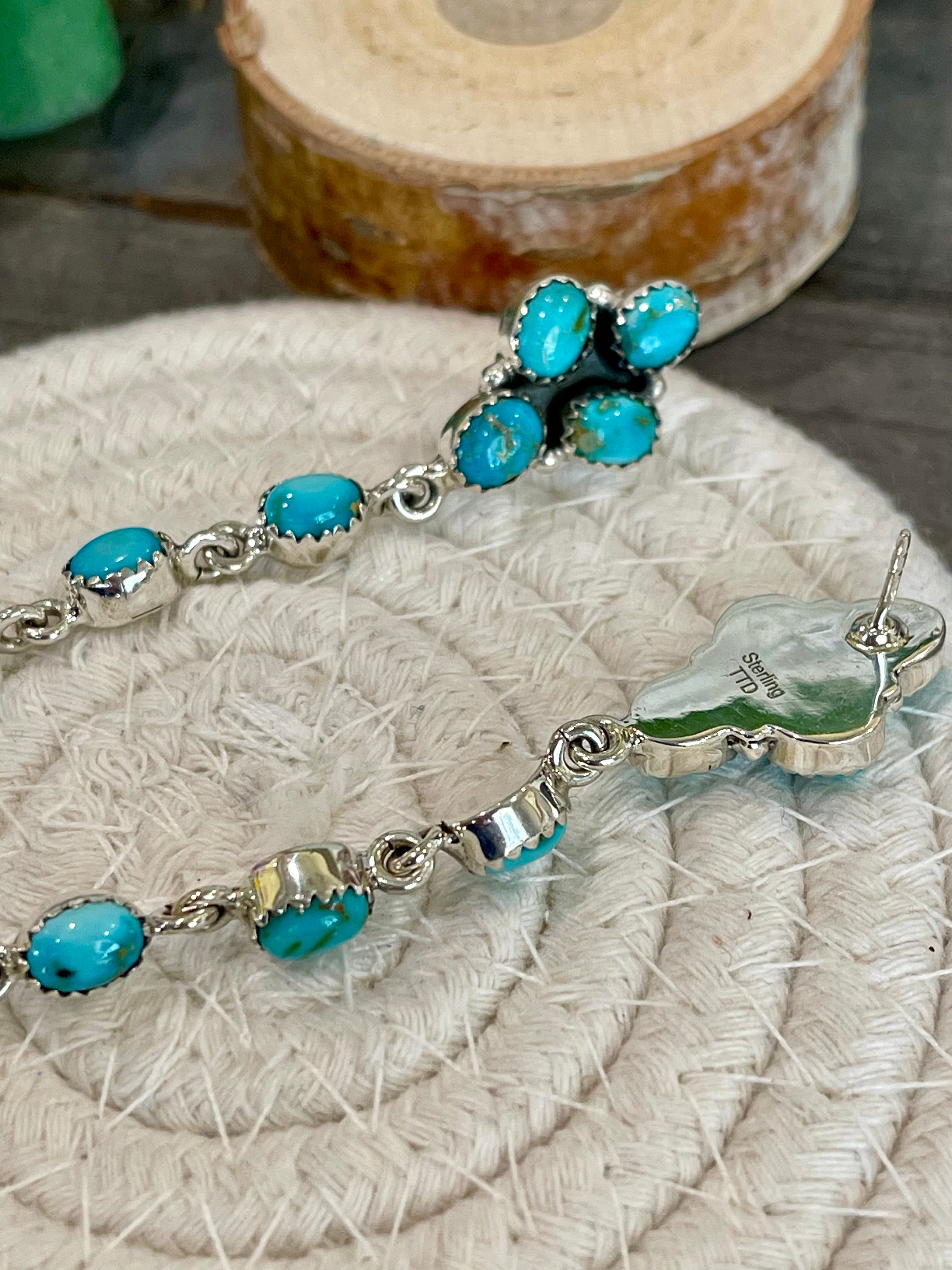 Southwest Handmade Sonoran Mountain Turquoise & Sterling Silver Post Dangle Earrings
