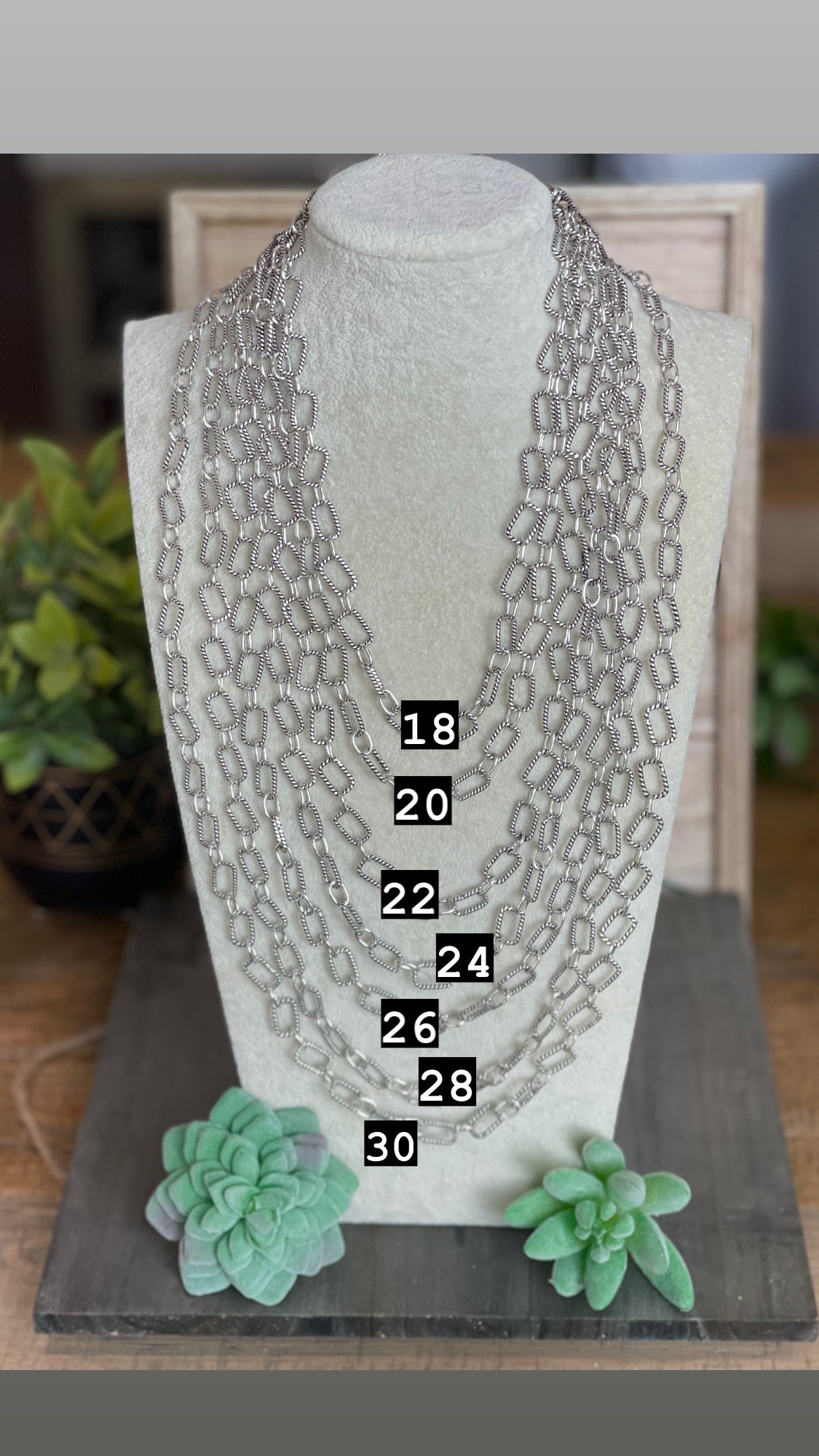 - Beautiful chain necklace. Southwest Handmade Sterling Silver 26 Inch Chain Necklace. It measures 26 inches long. Signed by the artist and stamped sterling silver.