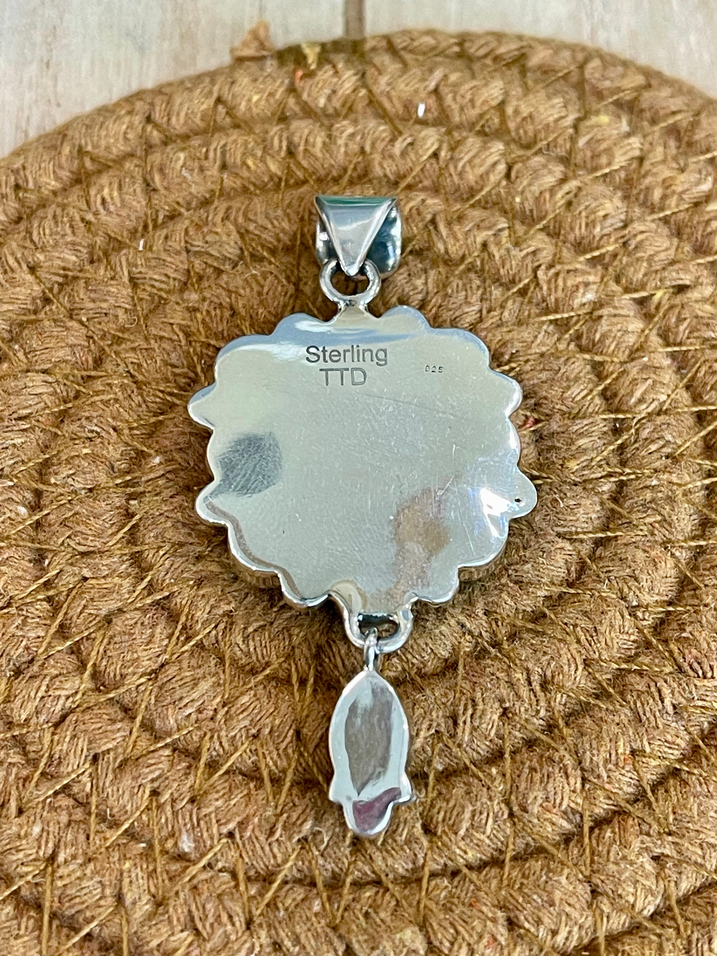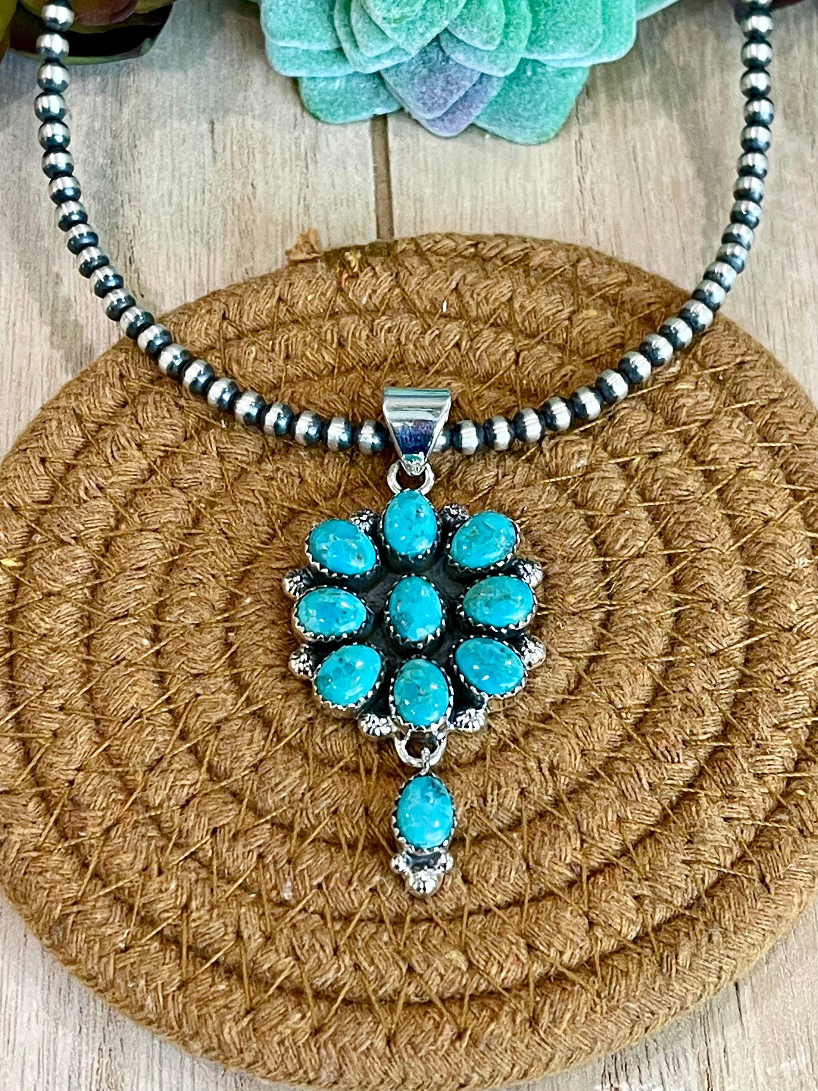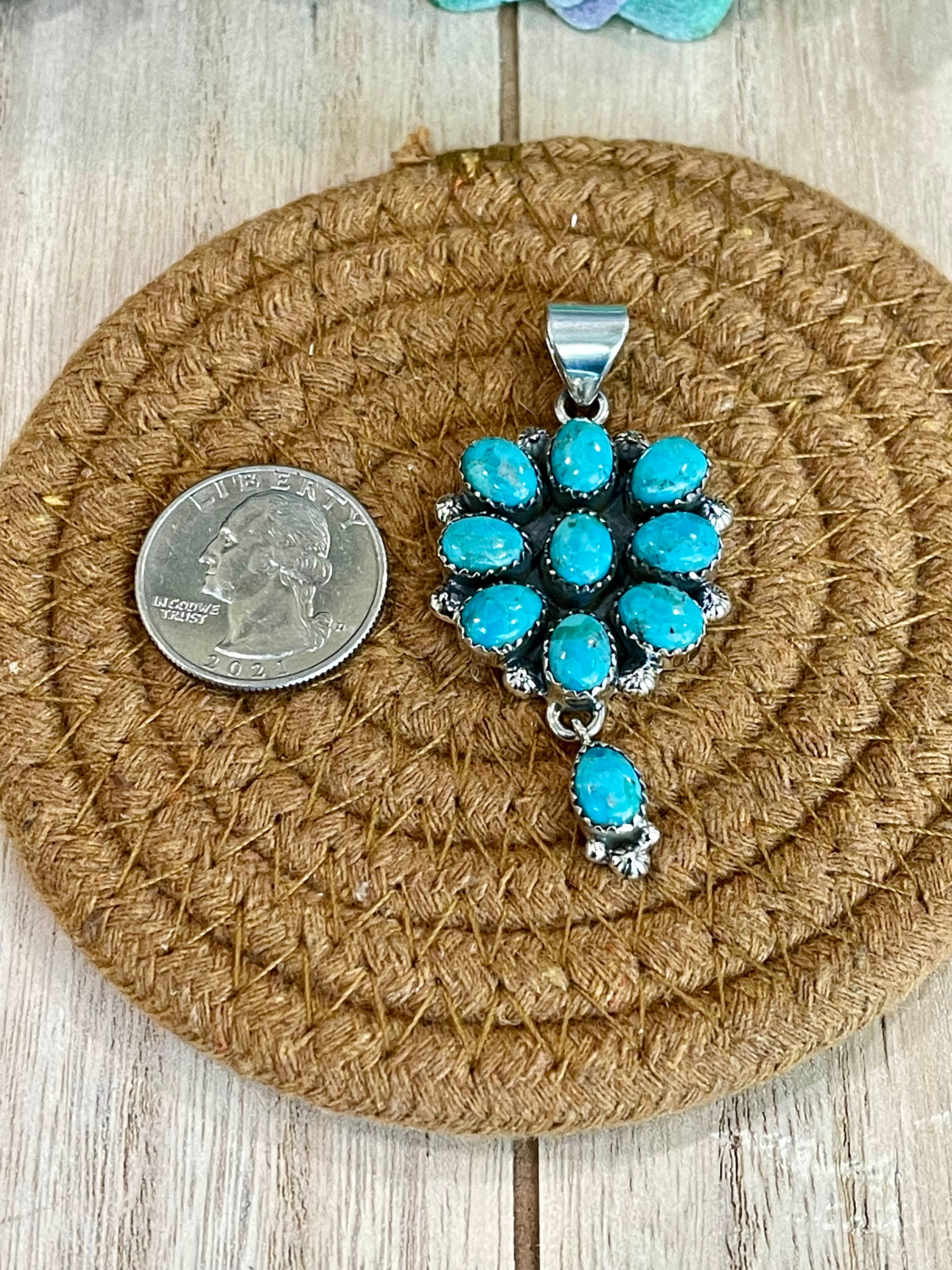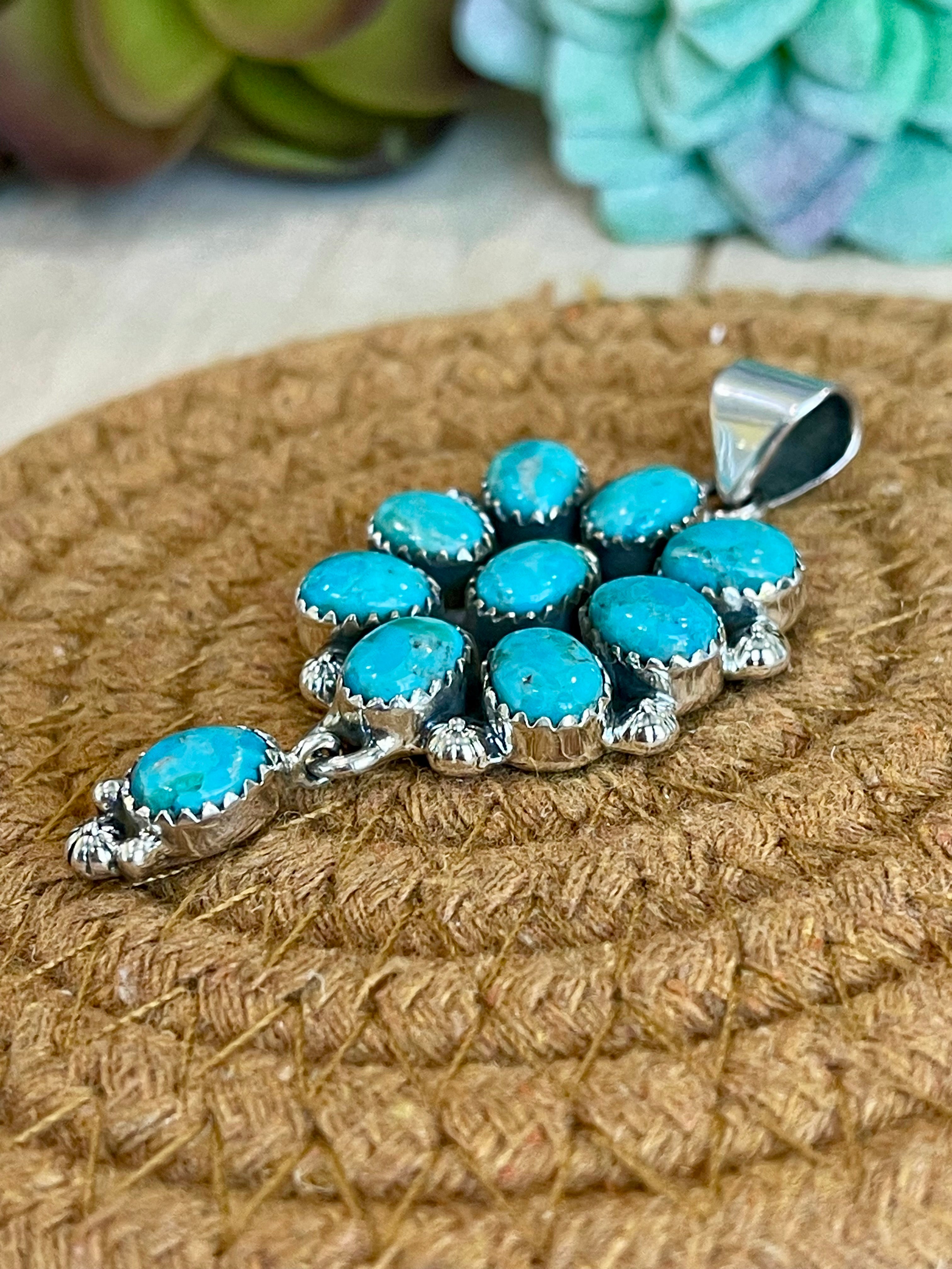 Southwest Handmade Kingman Turquoise & Sterling Silver Cluster Dangle Pendant