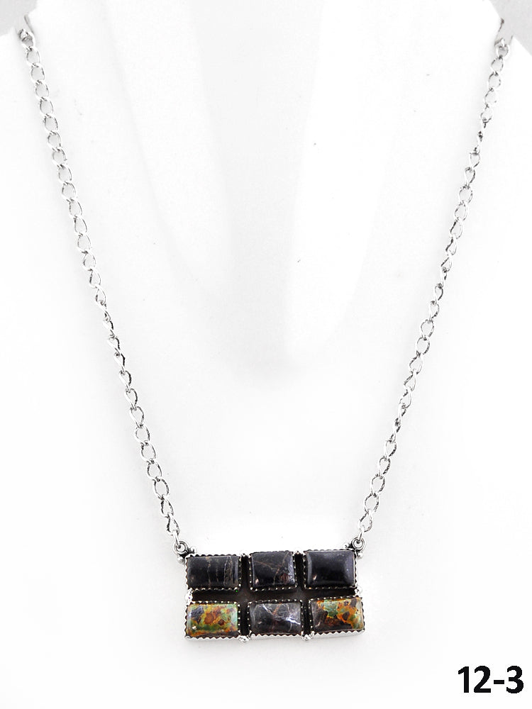 Southwest Made Black Jack Turquoise & Sterling Silver Necklace
