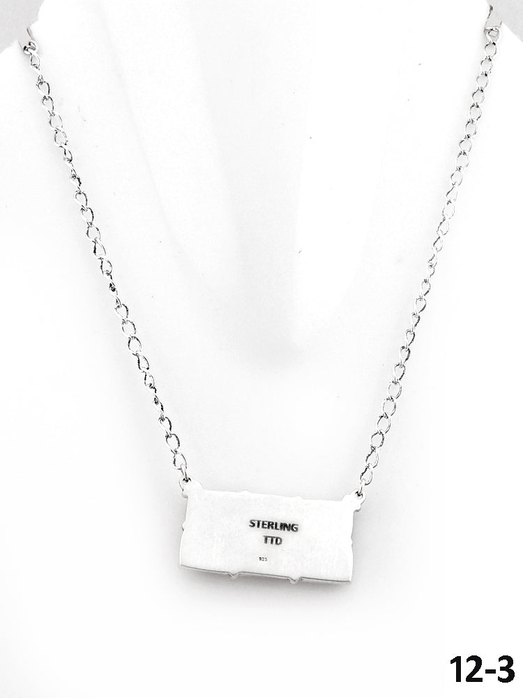 Southwest Made Black Jack Turquoise & Sterling Silver Necklace. It measures 20 inches long with hang while the chain measures 18 inches long. Signed by the artist and stamped sterling silver.