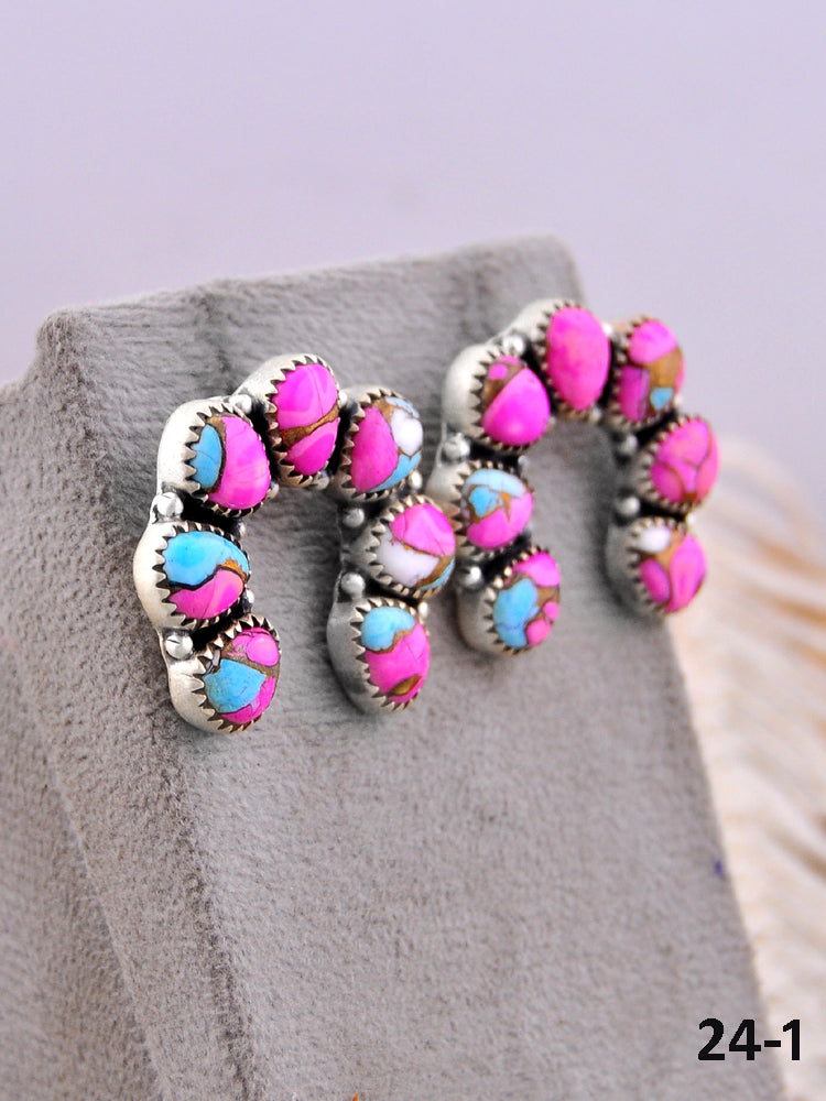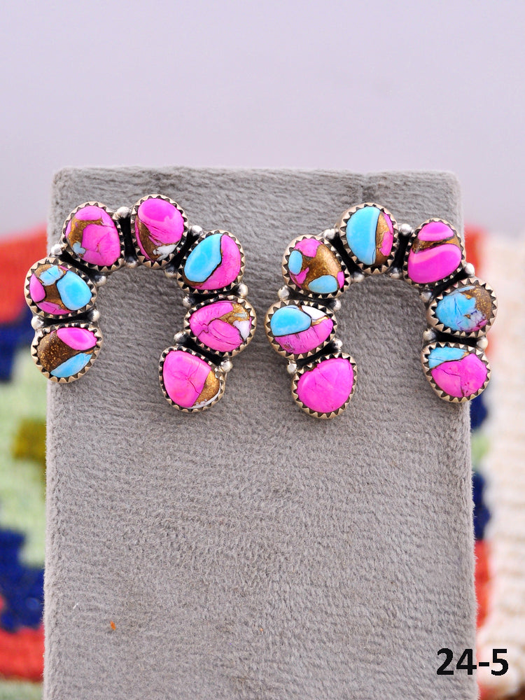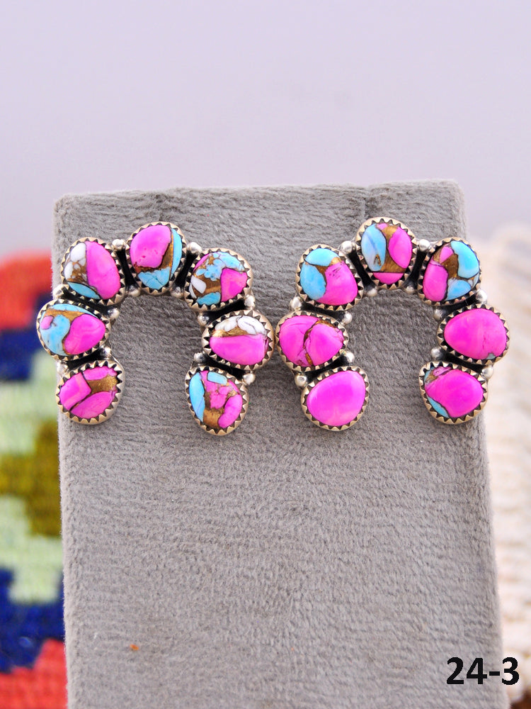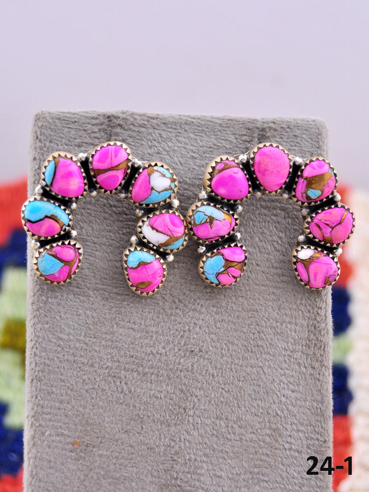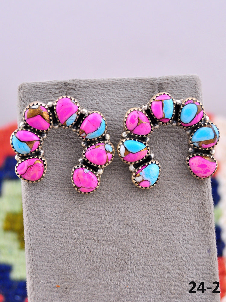 Southwest Made Cotton Candy & Sterling Silver Post Naja Earrings