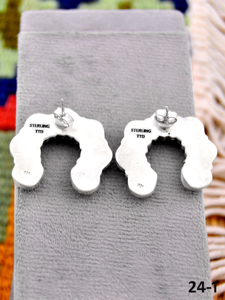 Southwest Made Cotton Candy & Sterling Silver Post Naja Earrings. It measures 1 1/4 inches long and 1 1/4 inches wide. Stamped and signed.