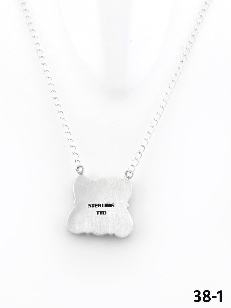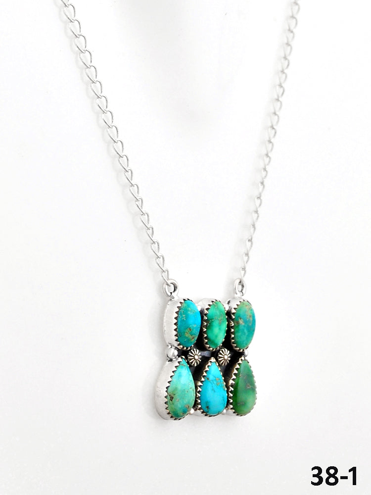 Southwest Made Emerald Valley Turquoise & Sterling Silver Necklace. It measures 19 inches long with hang while the chain measures 18 inches long. Signed by the artist and stamped sterling silver.