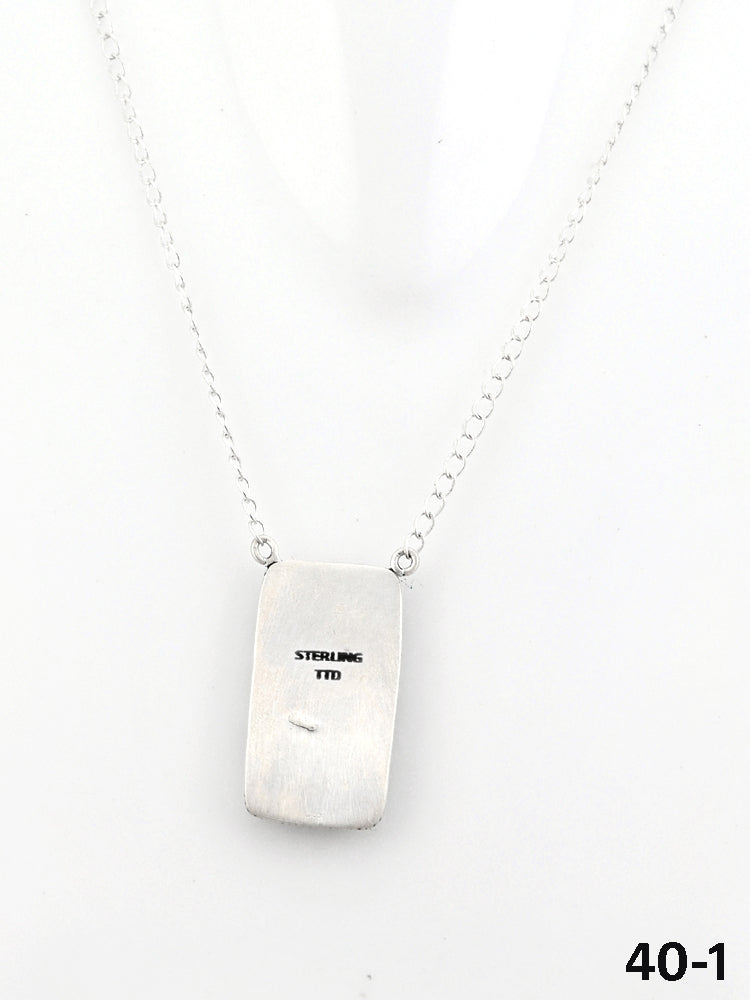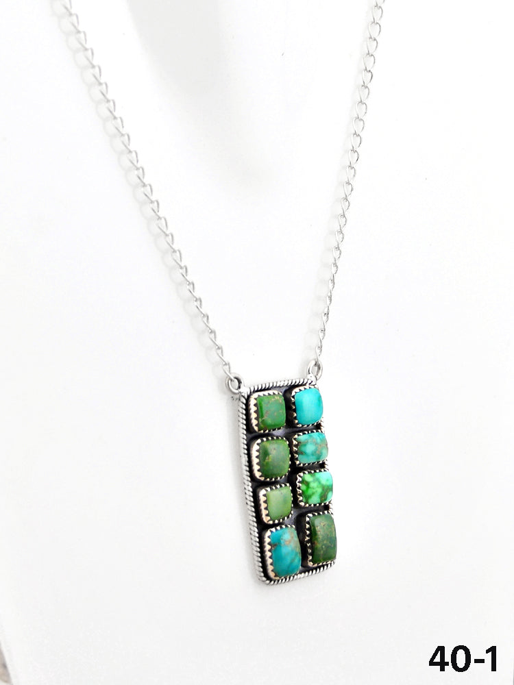 Southwest Made Emerald Valley Turquoise & Sterling Silver Necklace. It measures 19 inches long with hang while the drop measures 18 inches long. Signed by the artist and stamped sterling silver.